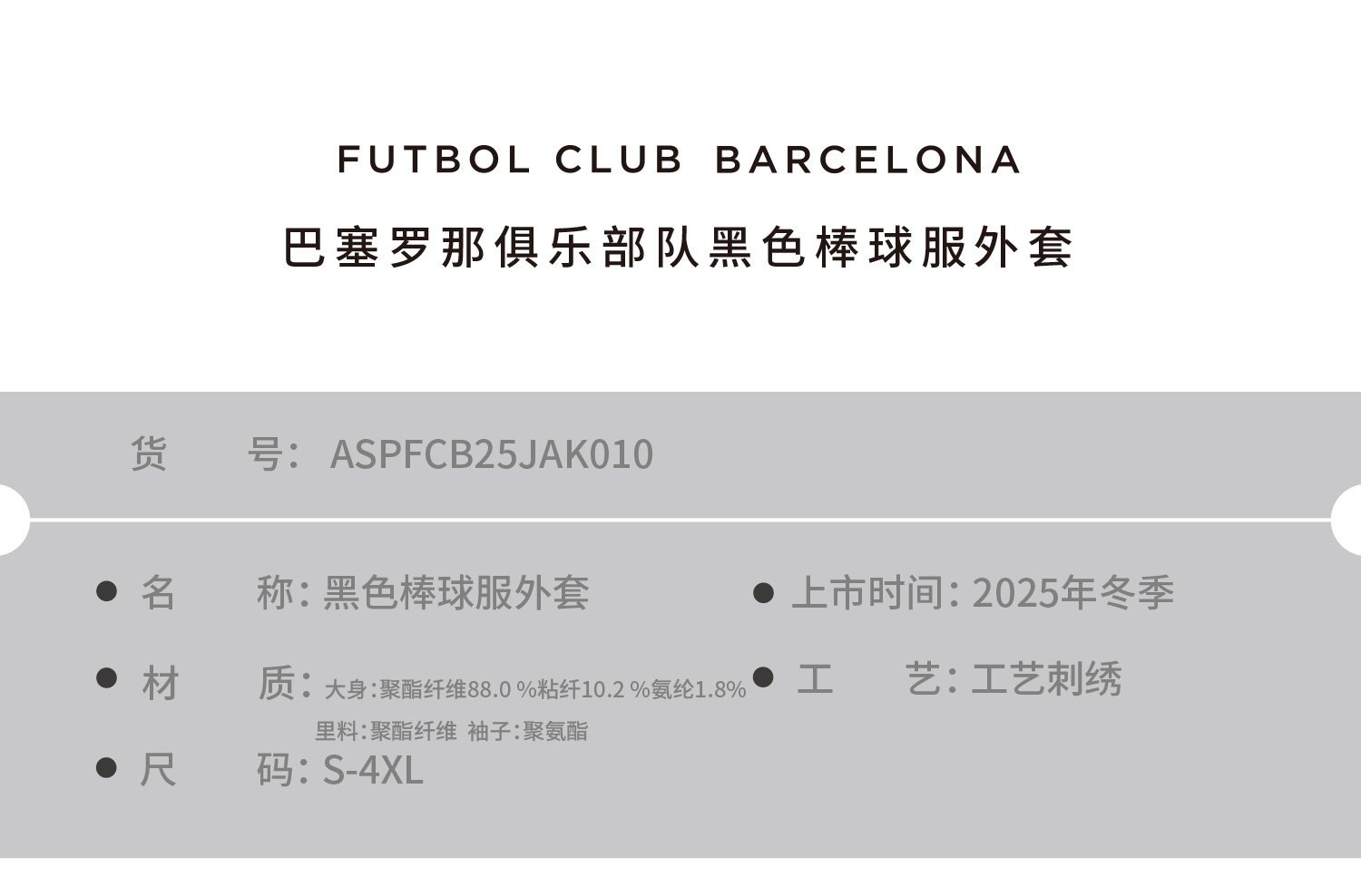 【官方正版】巴塞罗那俱乐部|巴萨黑色棒球服黑白外套百搭