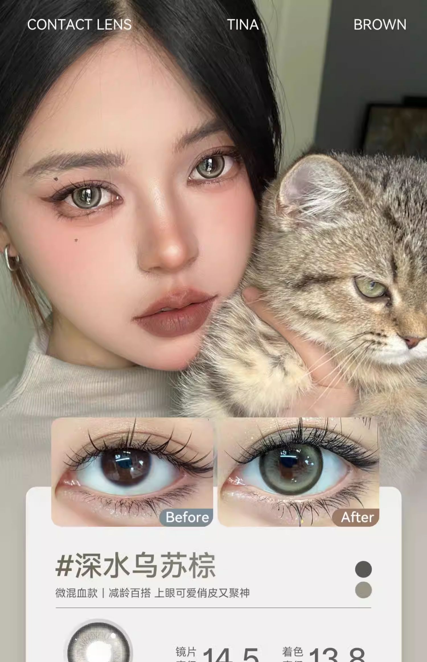 【媞娜日抛】Tina媞娜日抛美瞳女主角系列自然棕色混血感正品官网隐形眼镜10片装