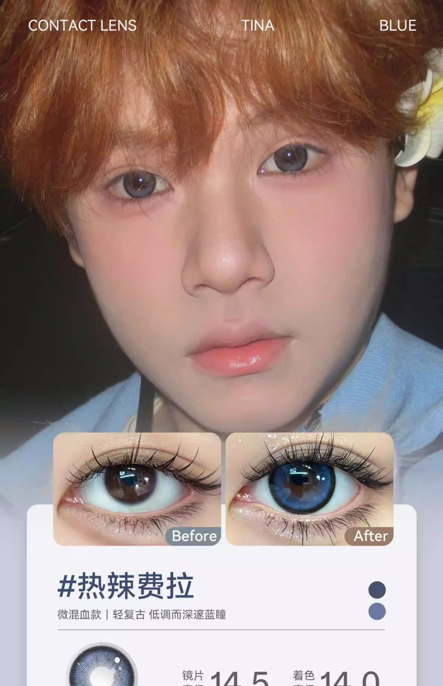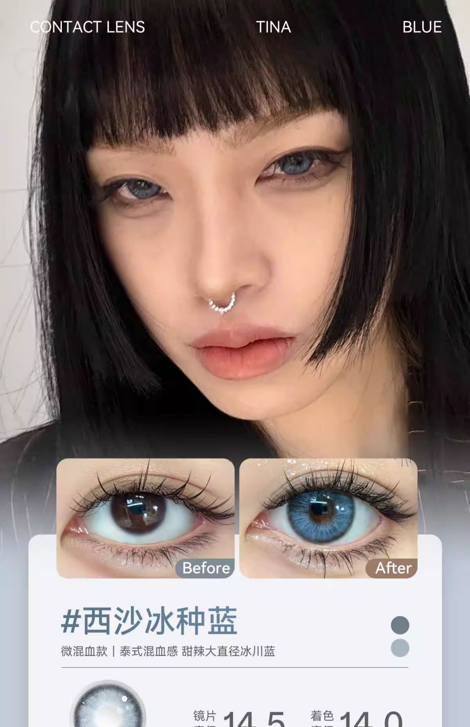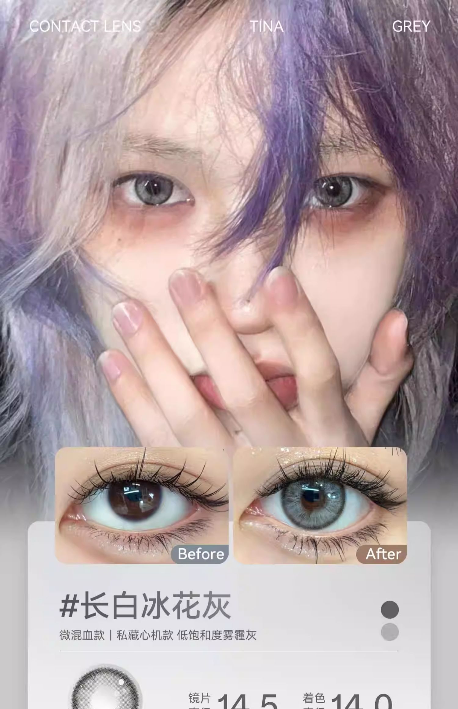 【媞娜日抛】Tina媞娜美瞳日抛灰色大直径14.5欧美混血乐安蓝美瞳隐形眼镜