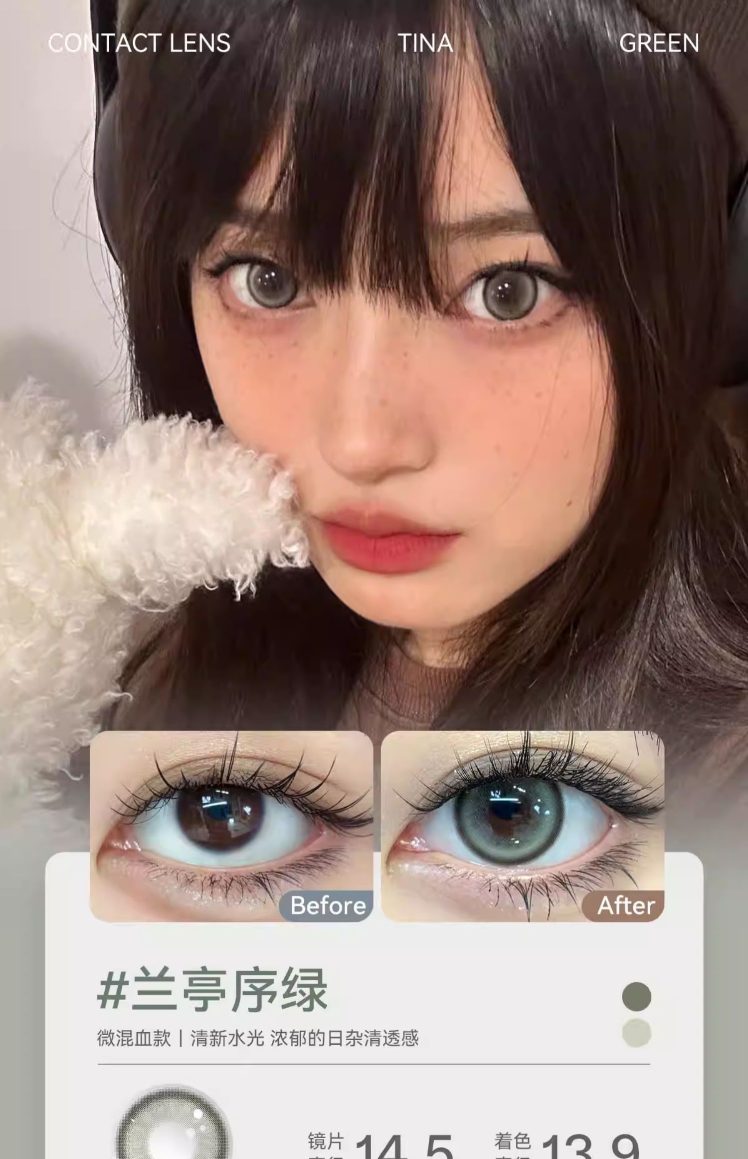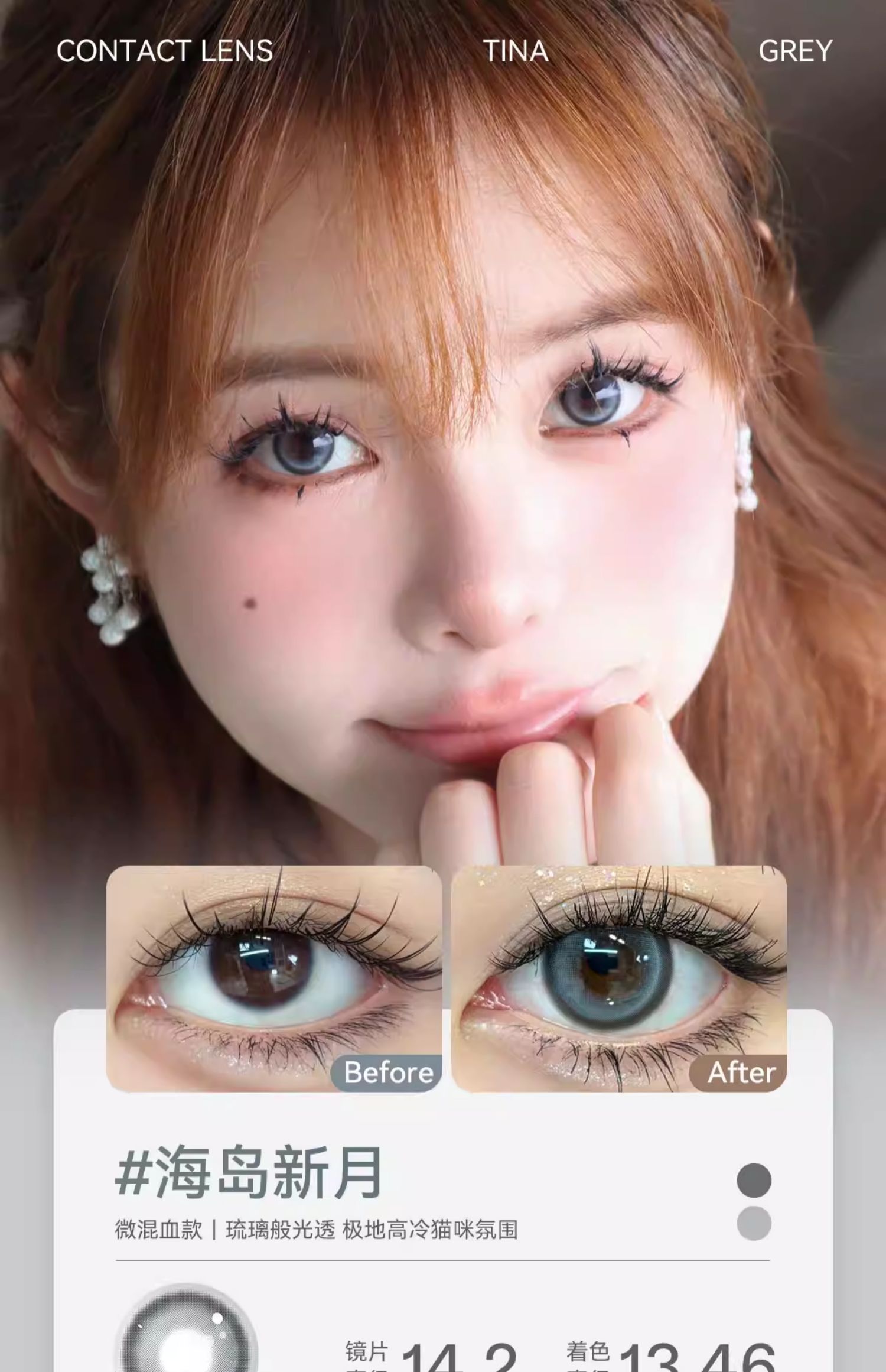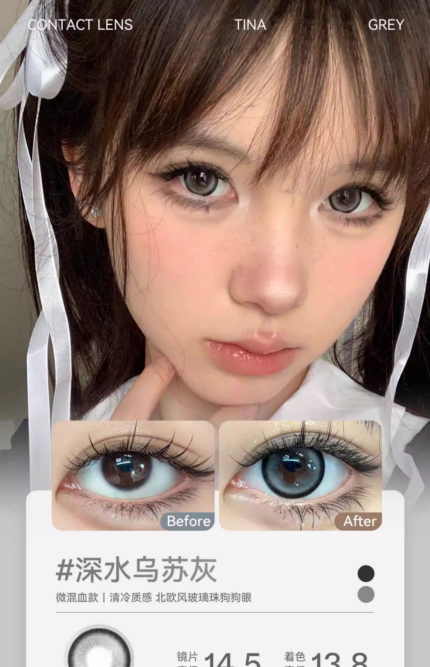 【媞娜半年抛,买4赠1】Tina媞娜泰式混血美瞳半年抛欧美小直径灰色缇娜亚裔混血隐形眼镜