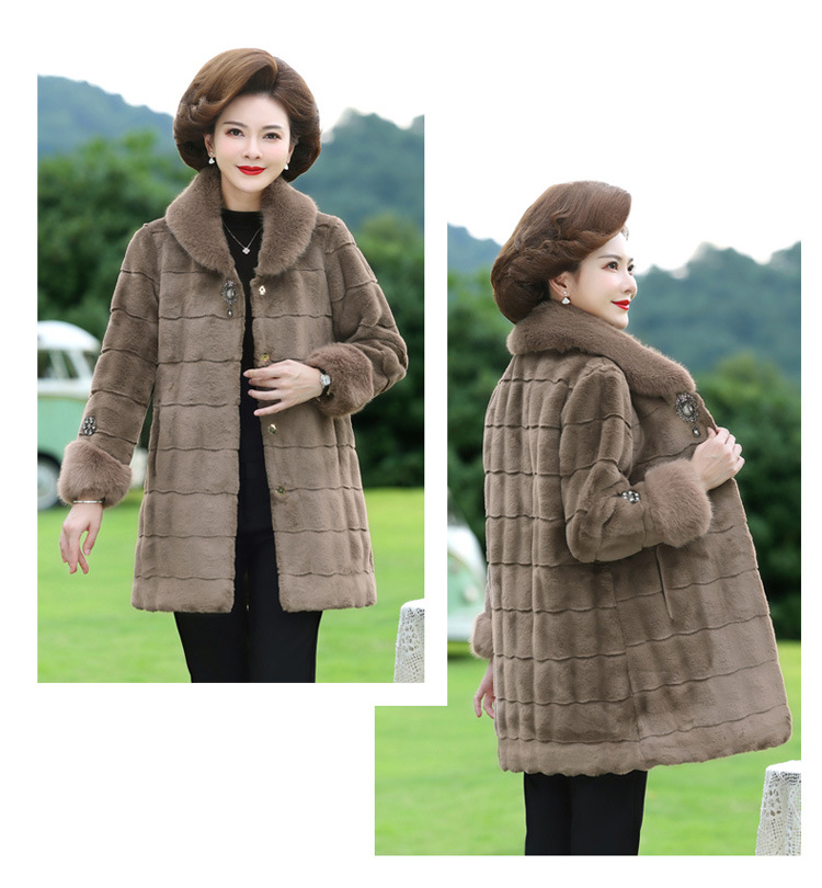 仿貂绒大衣中长款,老太太衣服妈妈冬装洋气毛领外套TYWF-A942EBAA233