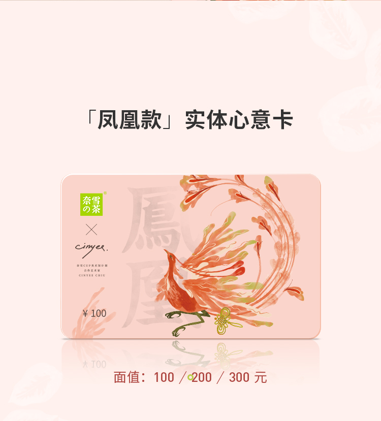 奈雪的茶 瑞兽凤凰实体心意卡电子代金券 礼品卡 100/200