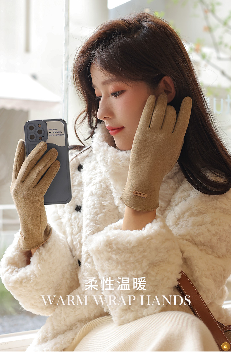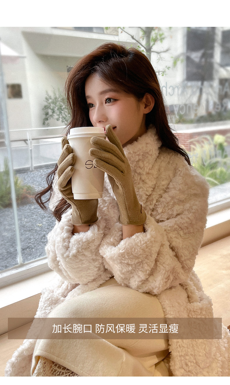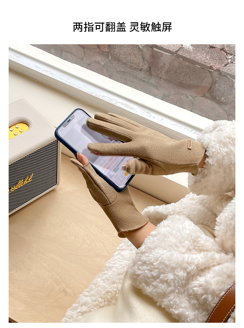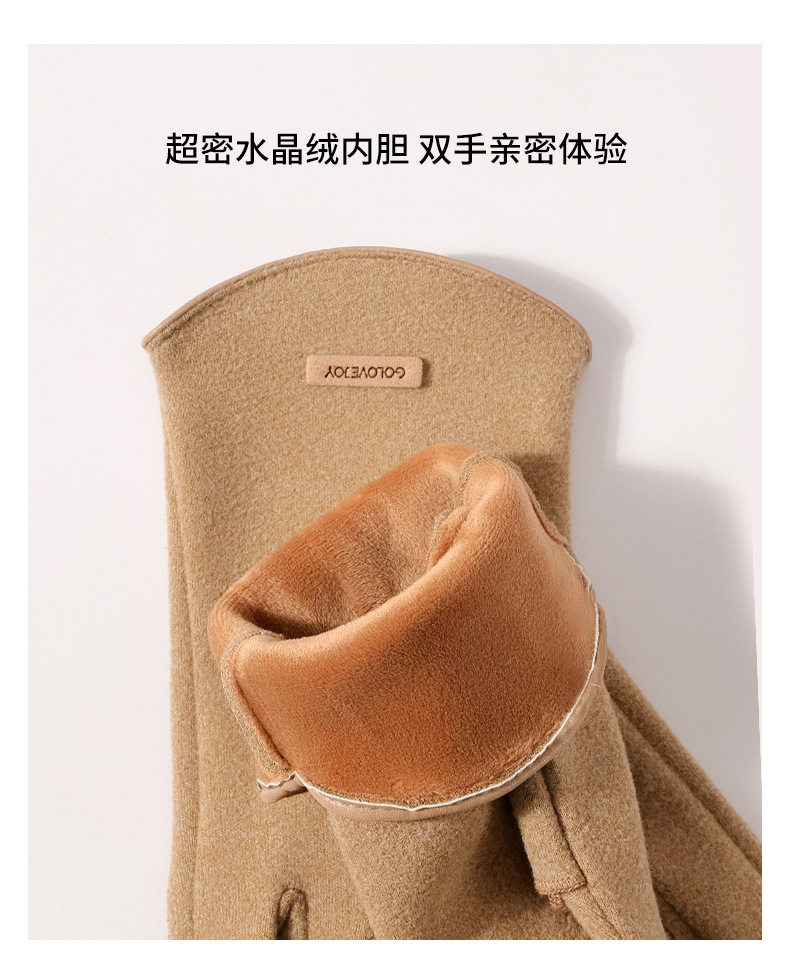 【冬季德绒手套】女士户外骑车加厚加绒 防风翻指触屏保暖手套韩版百搭