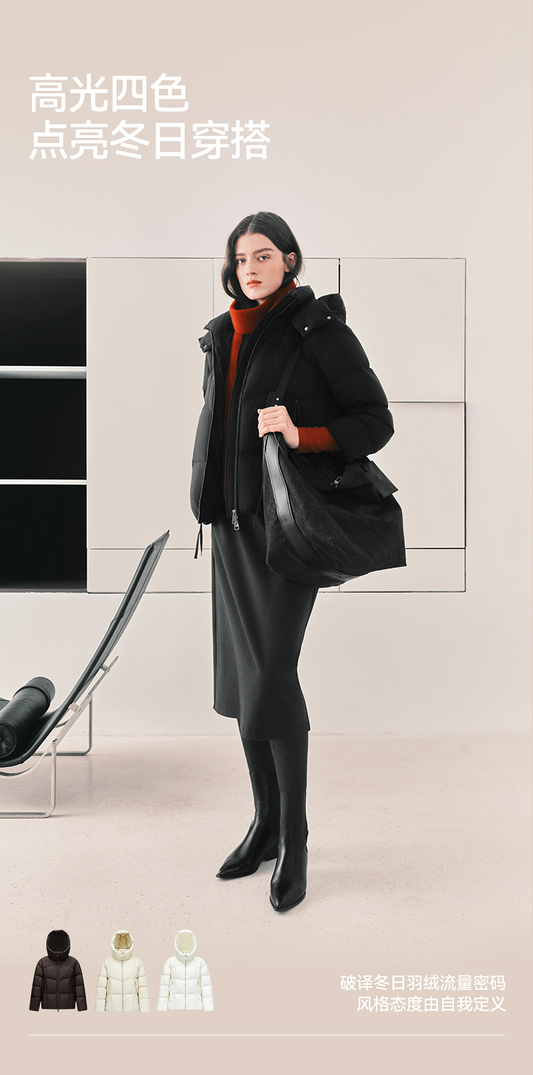 商场同款|轻松森马羽绒服女冬中长款90绒子宽松肌理2025新款外套