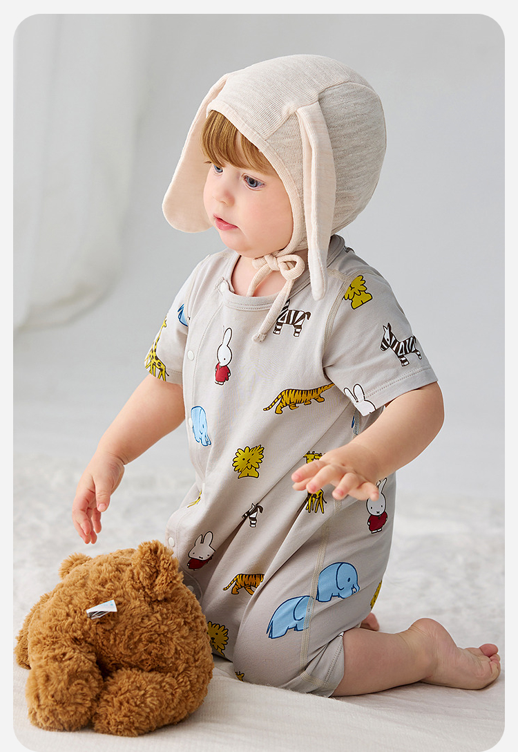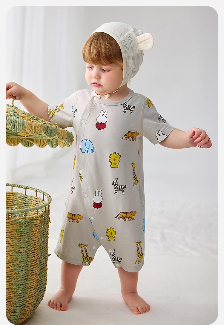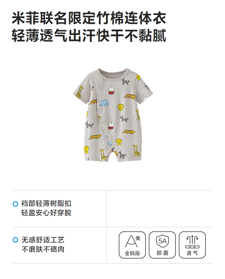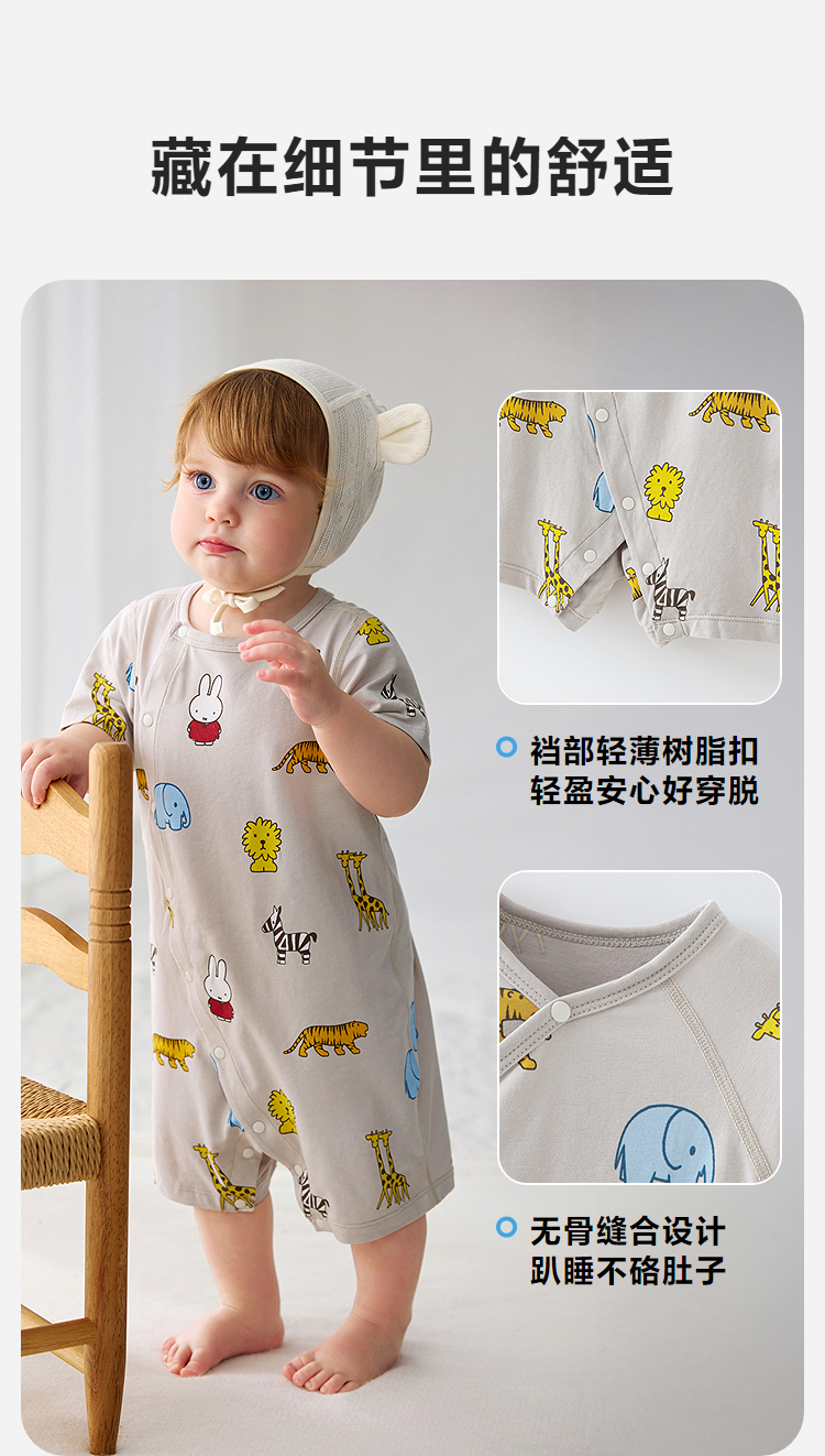 迷你巴拉巴拉婴儿连体衣夏季柔软亲肤竹棉抑菌凉透气宝宝居家爬服