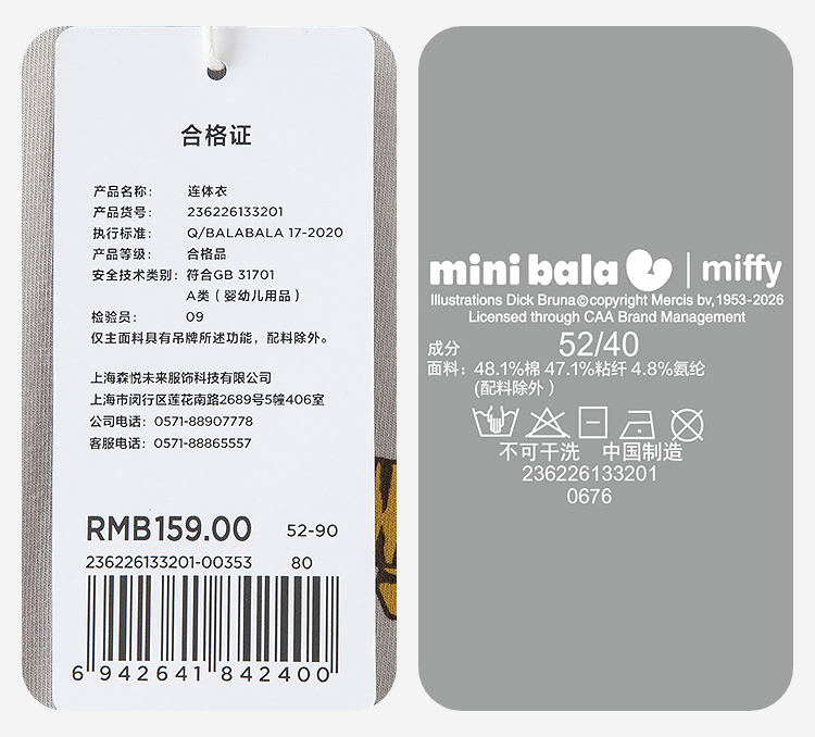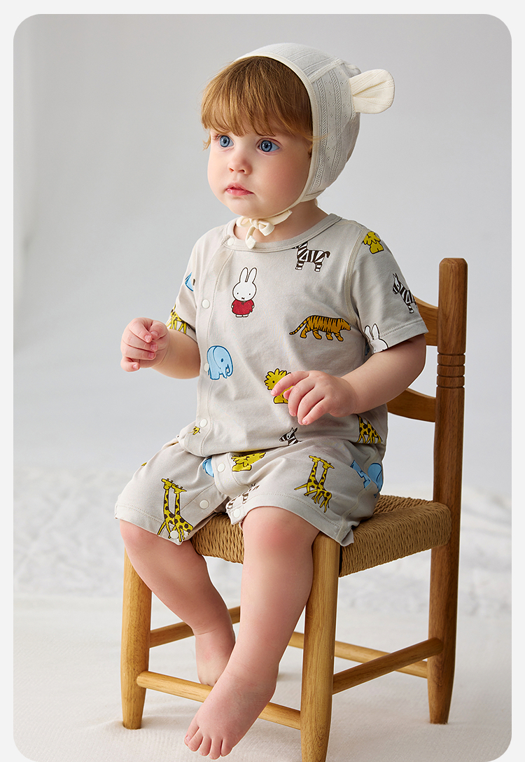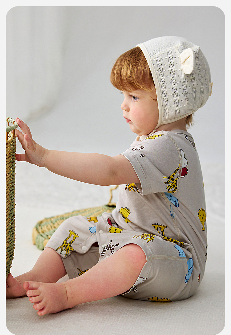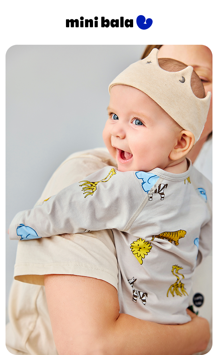 迷你巴拉巴拉婴儿连体衣夏季柔软亲肤竹棉抑菌凉透气宝宝居家爬服