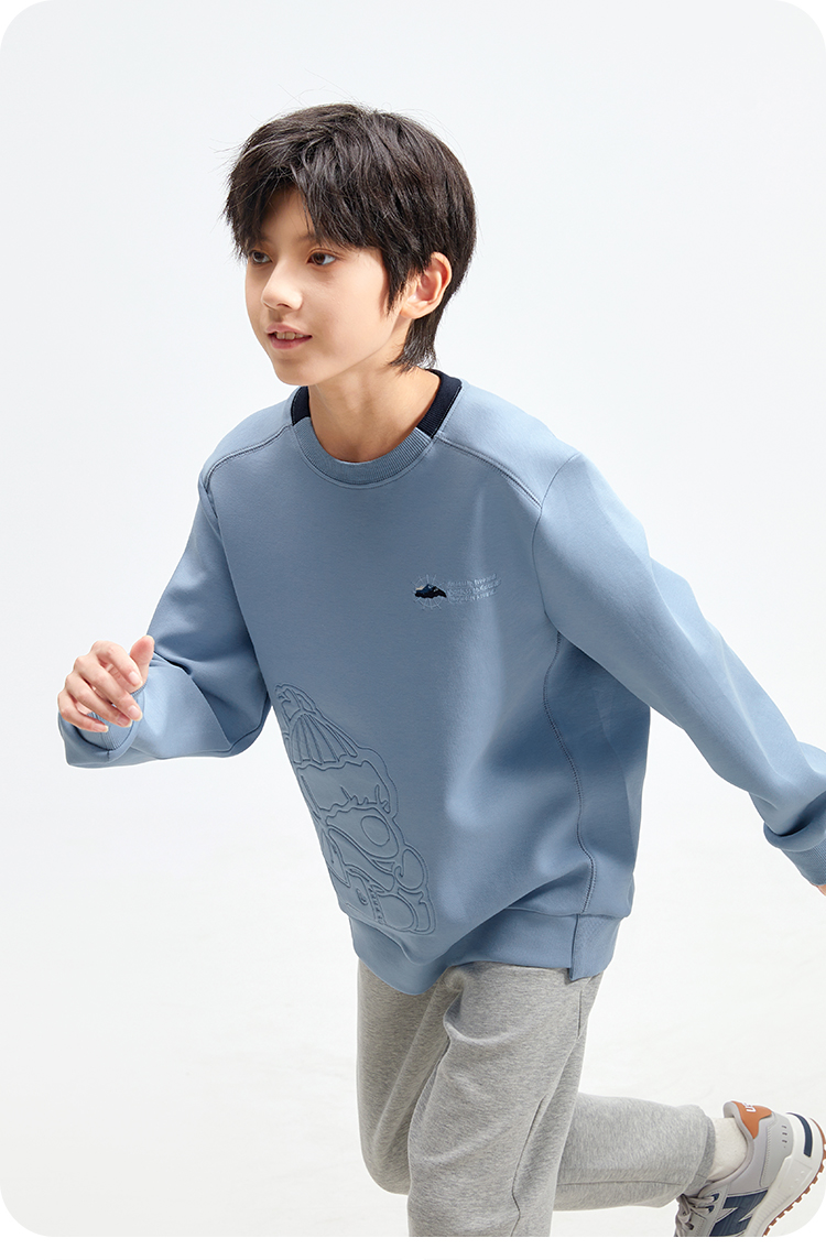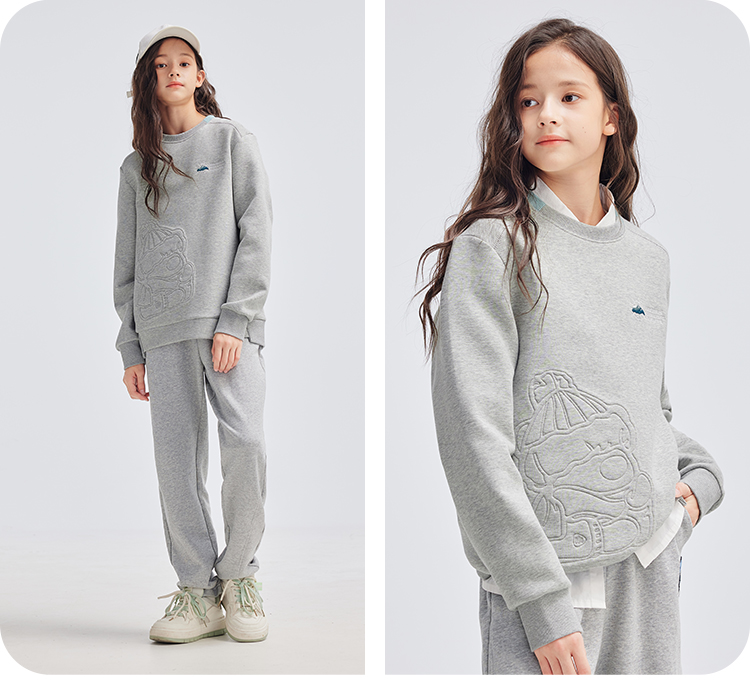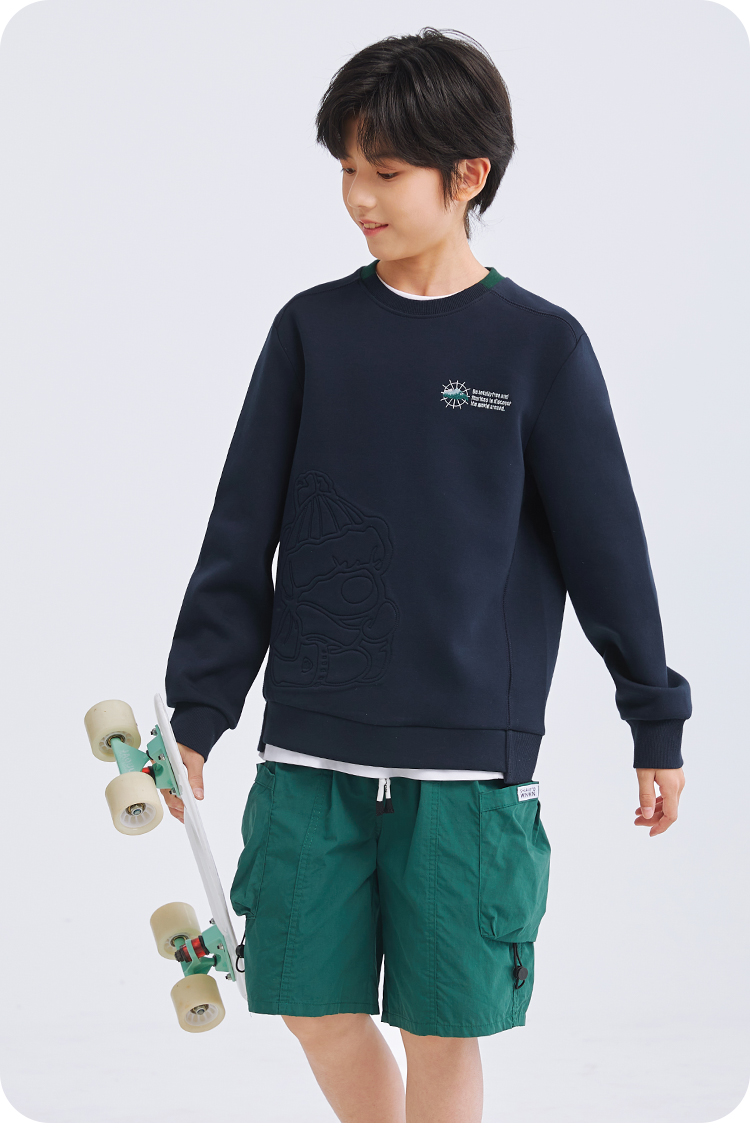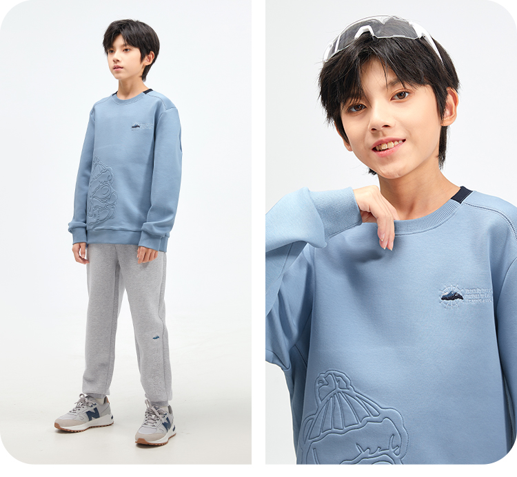 水孩儿童装2024秋冬新款女童卫衣男童宽上衣时尚宽松弹力休闲运动