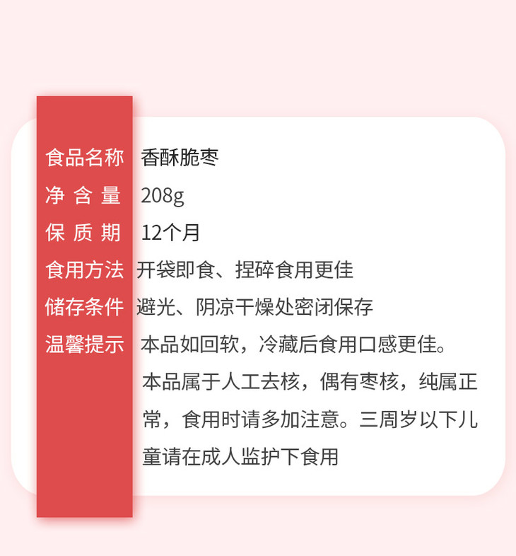 味滋源香甜脆枣208g 红枣干 脆红枣【分销】