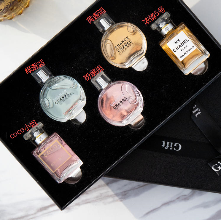 香奈儿香水五件套小样 黄粉绿邂逅7.5ml*3 + 5号经典浓情香水7.5ml + 摩登coco小姐7.5ml 【黑盒赠礼袋】