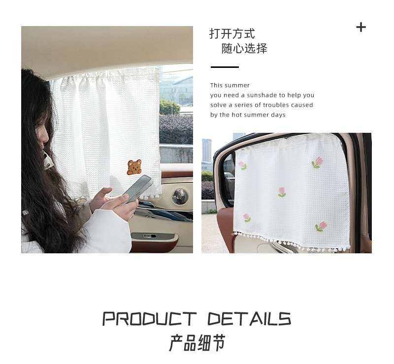 赠送绑带【隔热防晒!保护爱车】汽车遮阳帘华夫格车用吸盘式车载遮光帘卡通儿童防晒隔热汽车窗帘。ry