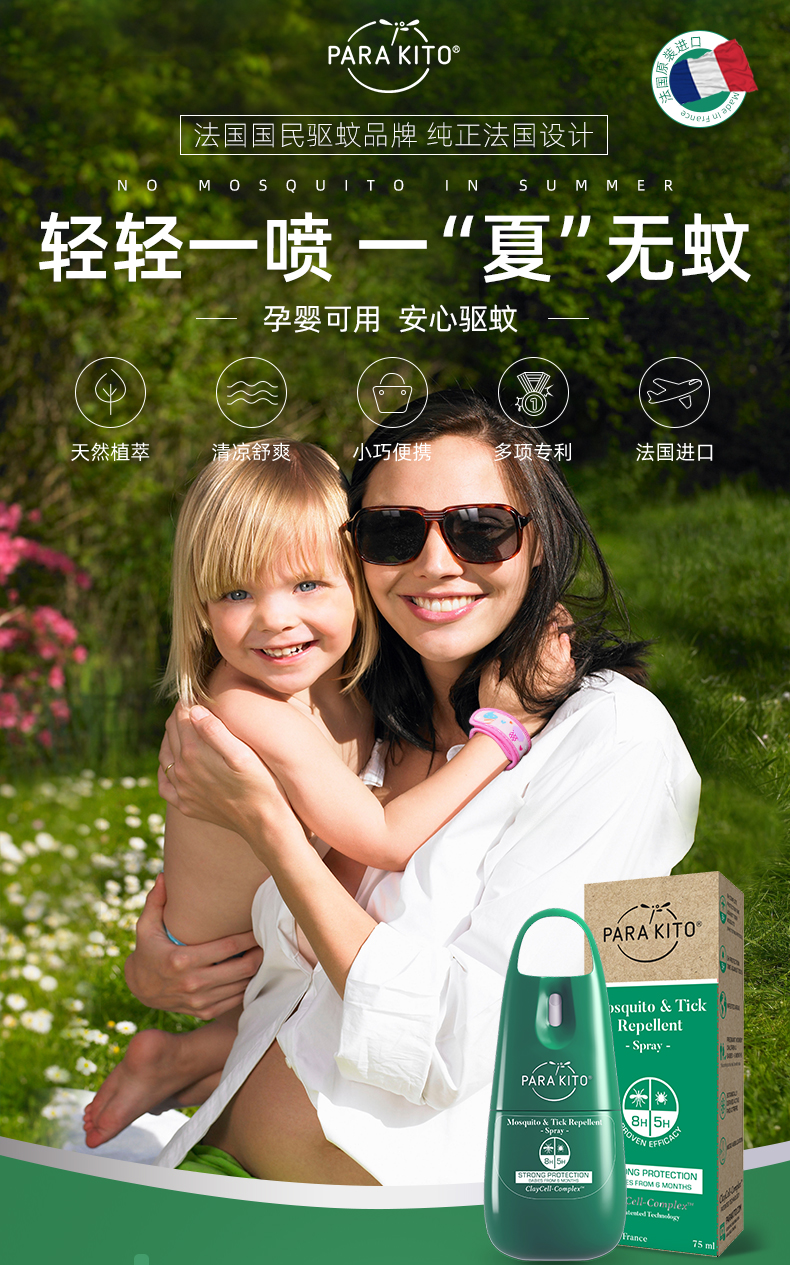 帕洛舒爽喷雾 75ml 长达6小时无蚊忧,植物芳香,防汗防水