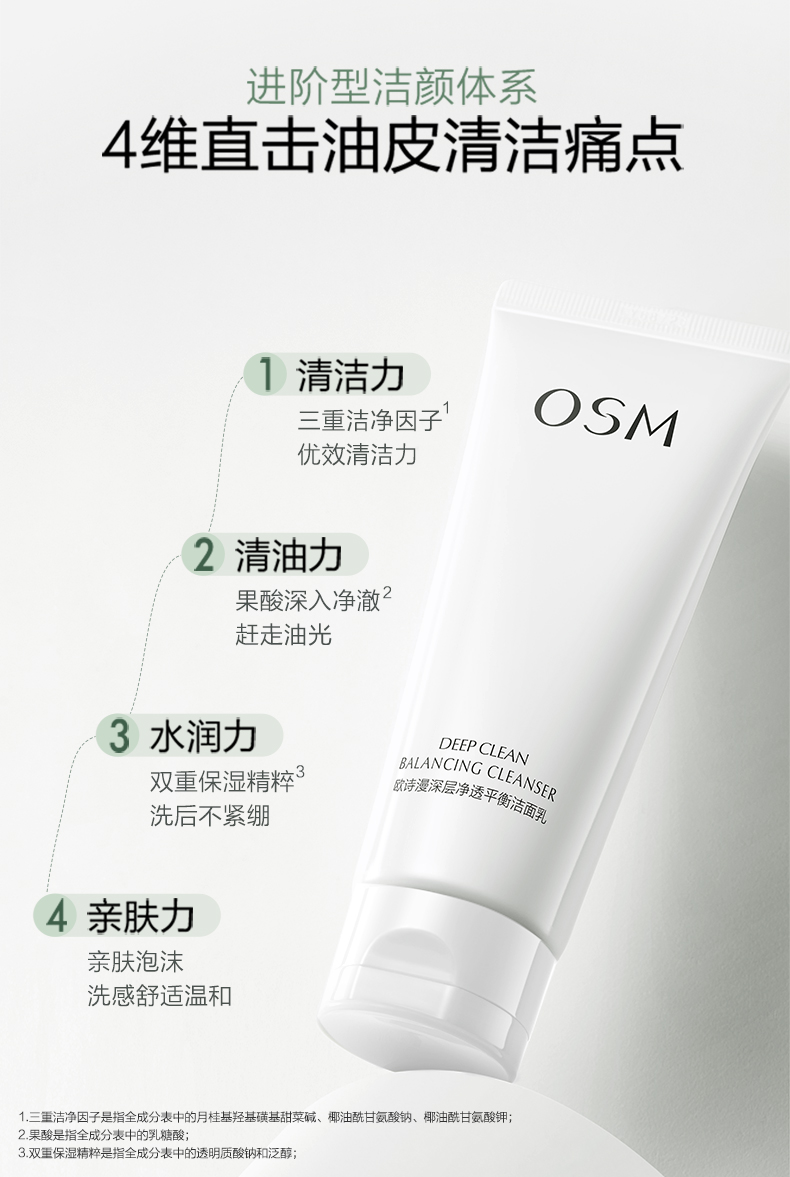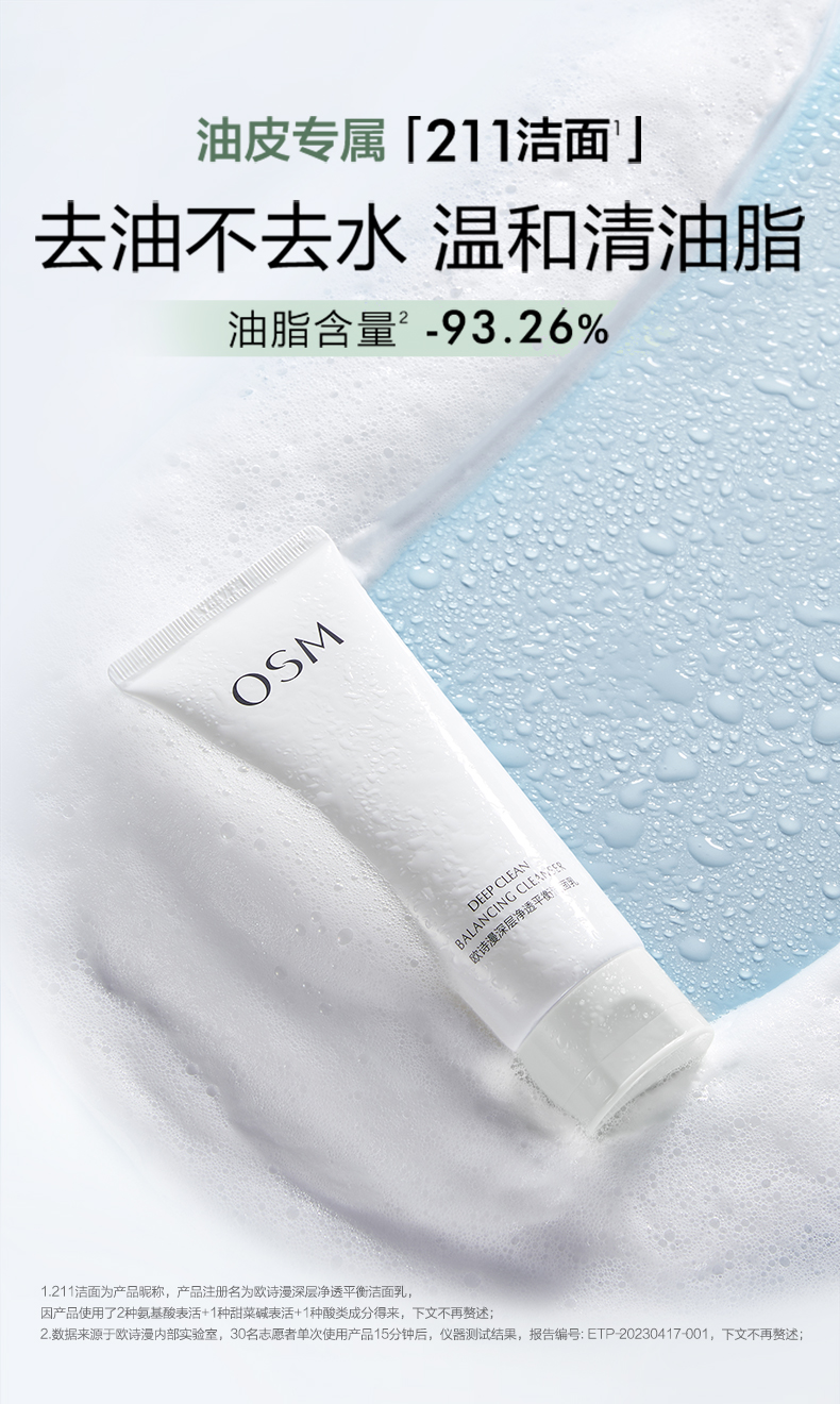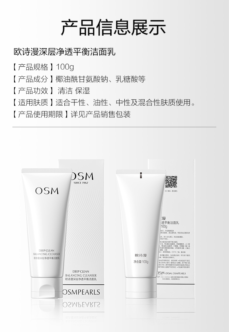 【79元拍一发三】欧诗漫深层净透洁面乳氨基酸温和清洁面奶官方旗舰店正品