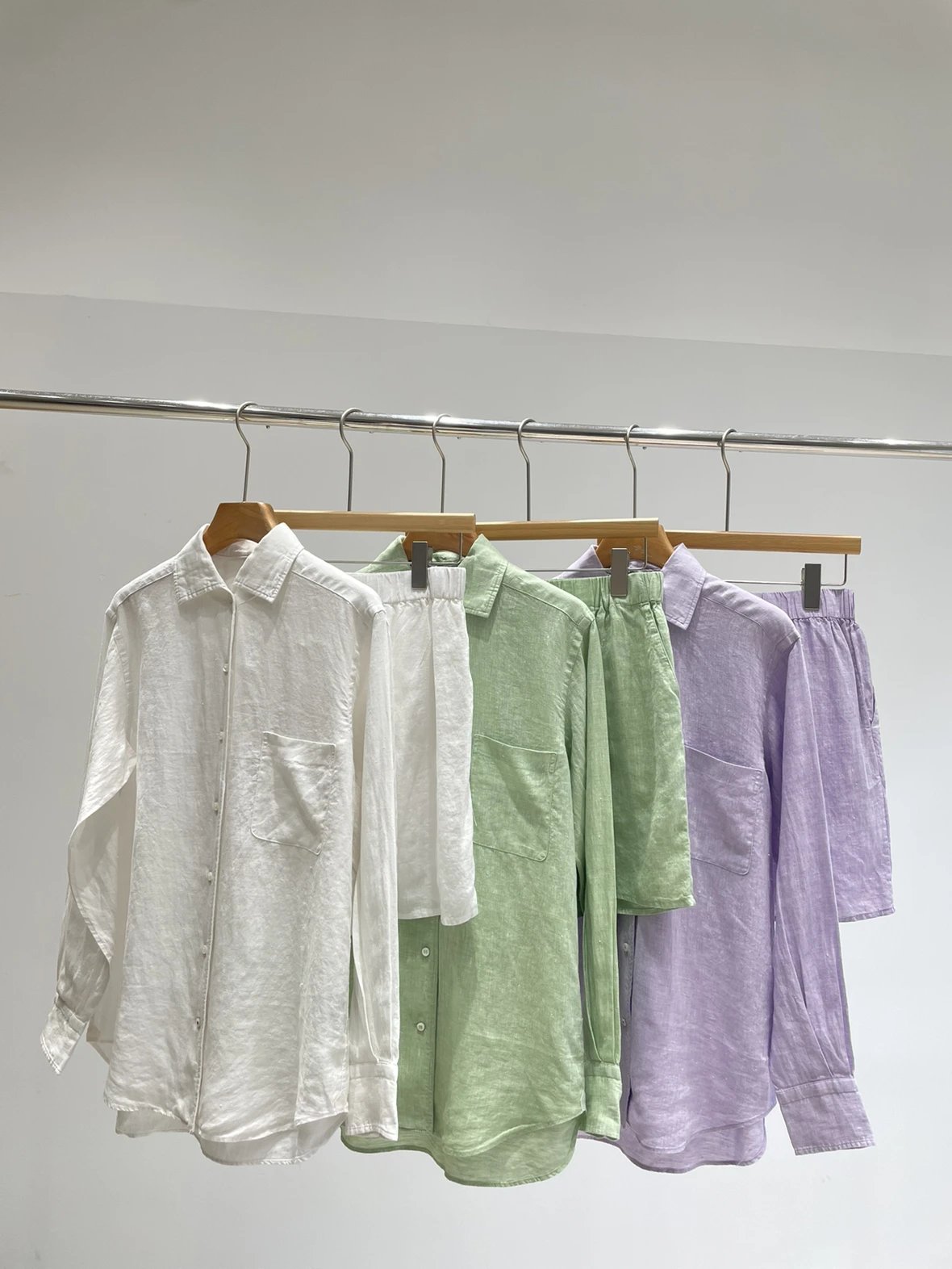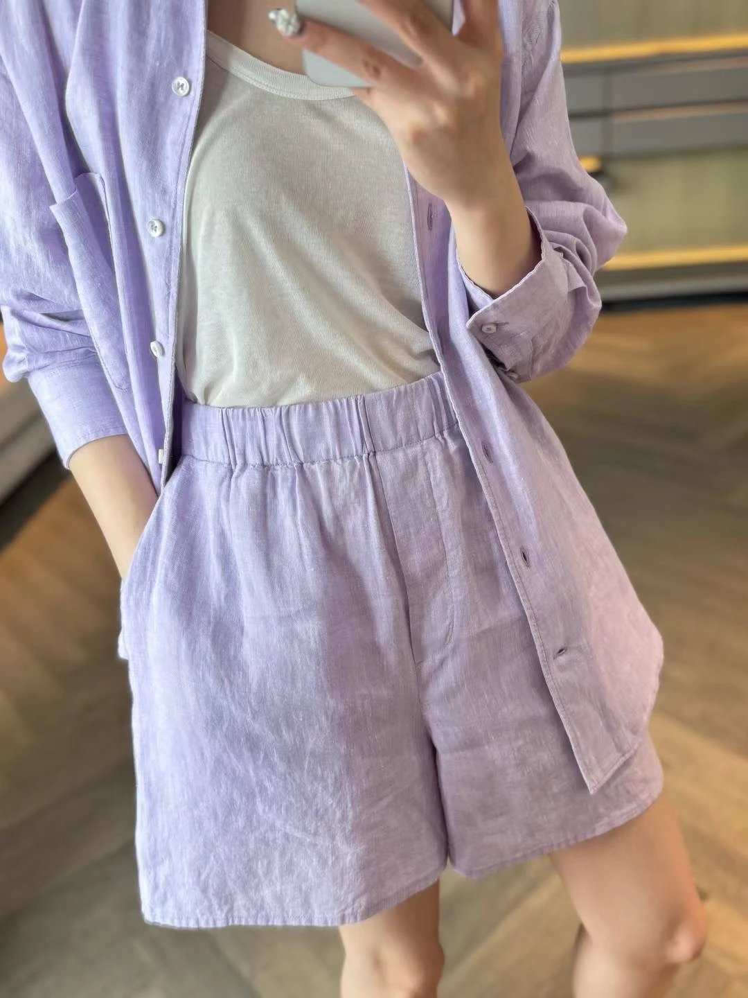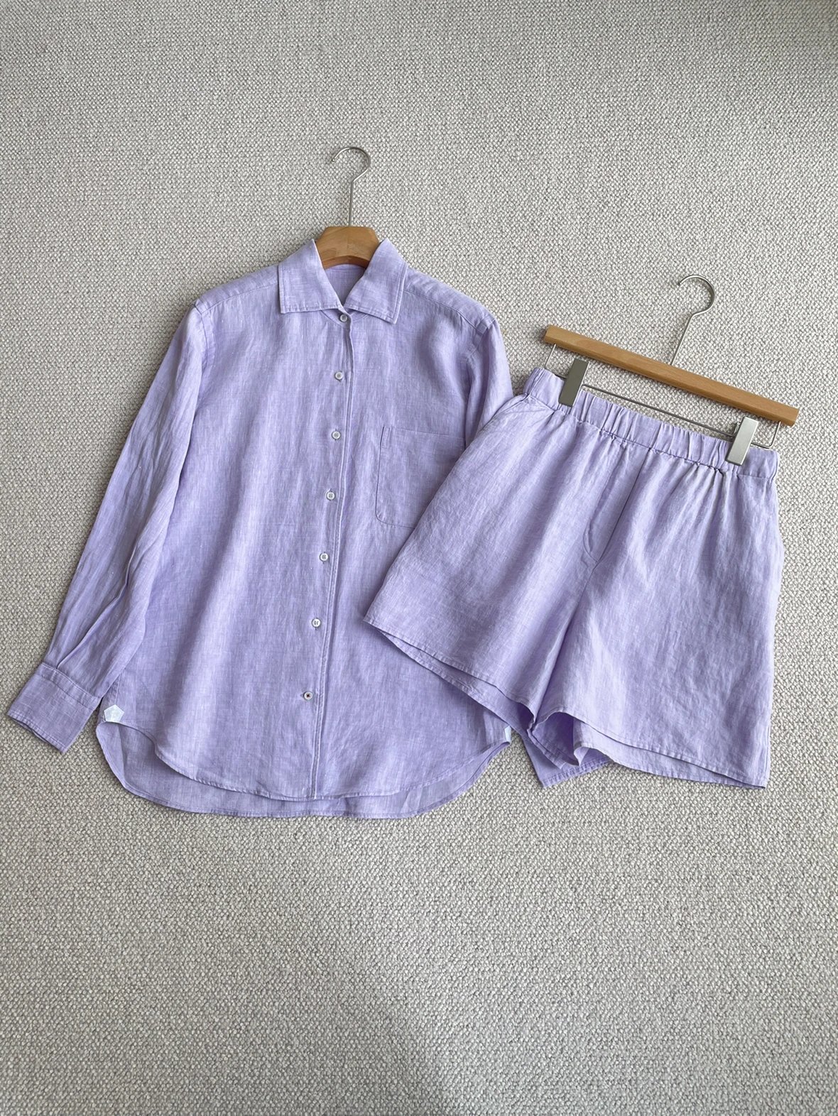 重磅推荐!无补!lp亚麻套装 马卡龙色系 亚麻衬衫/亚麻短裤 进口32支超细亚麻