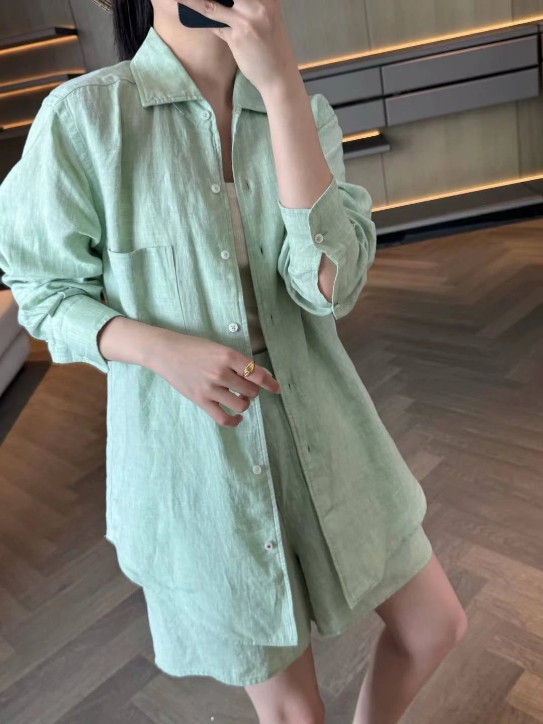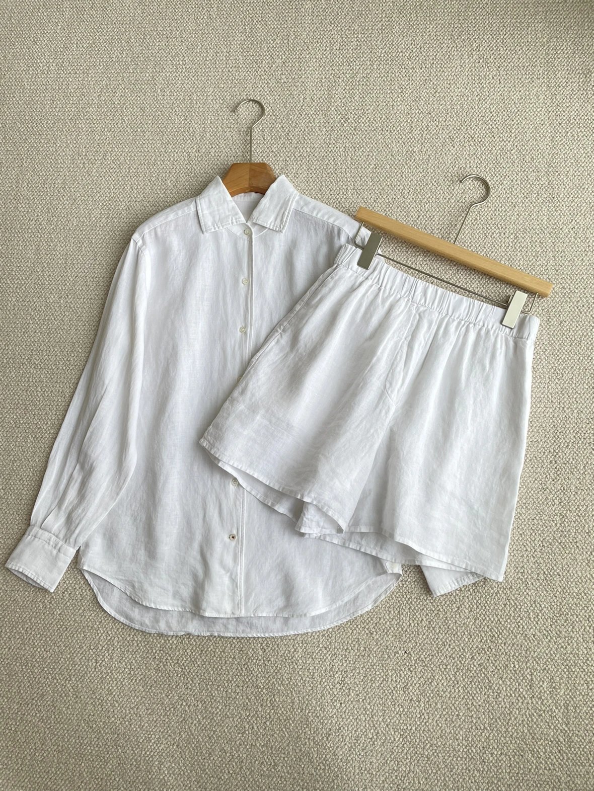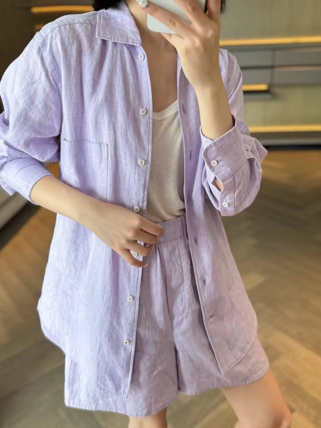 重磅推荐!无补!lp亚麻套装 马卡龙色系 亚麻衬衫/亚麻短裤 进口32支超细亚麻