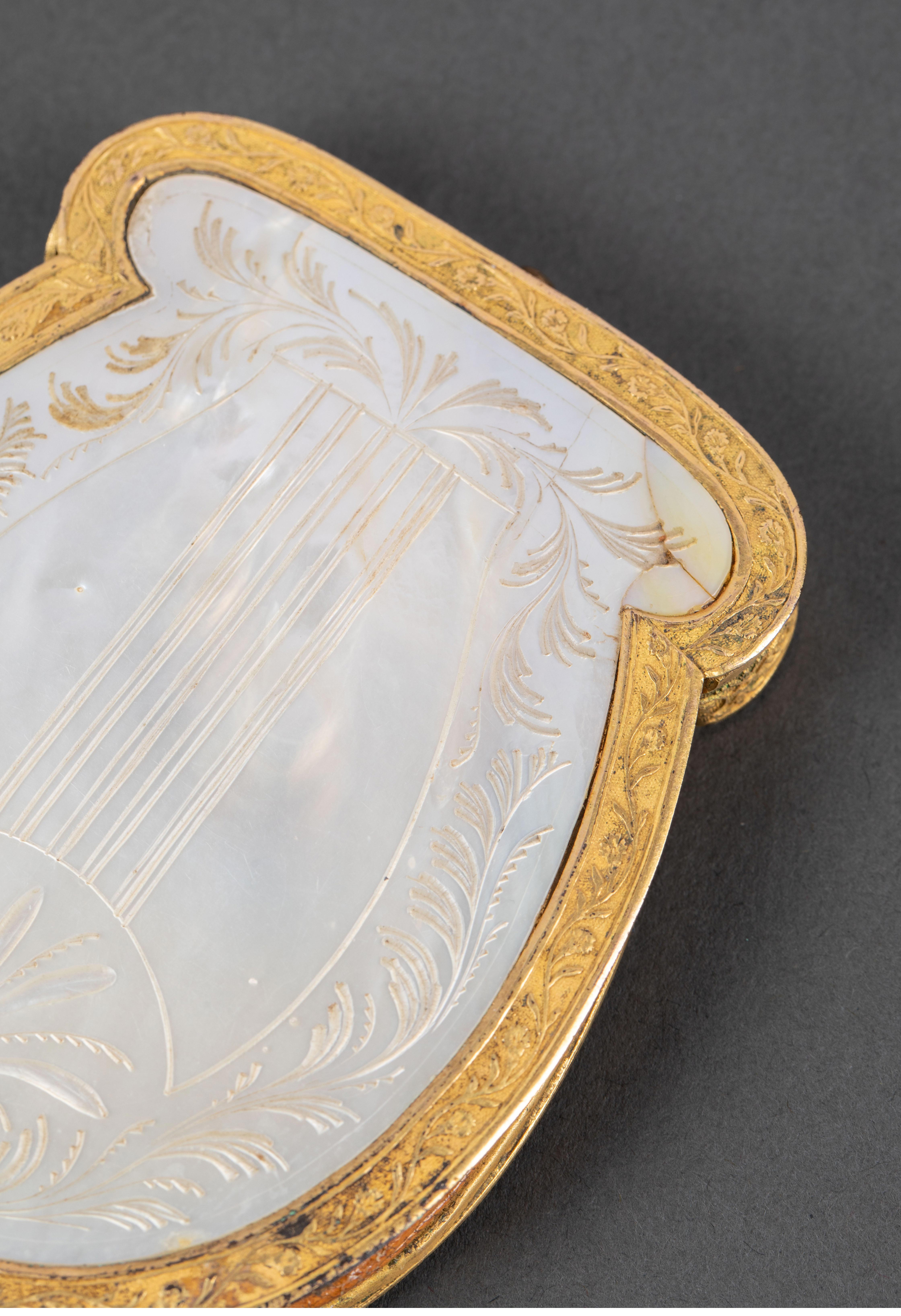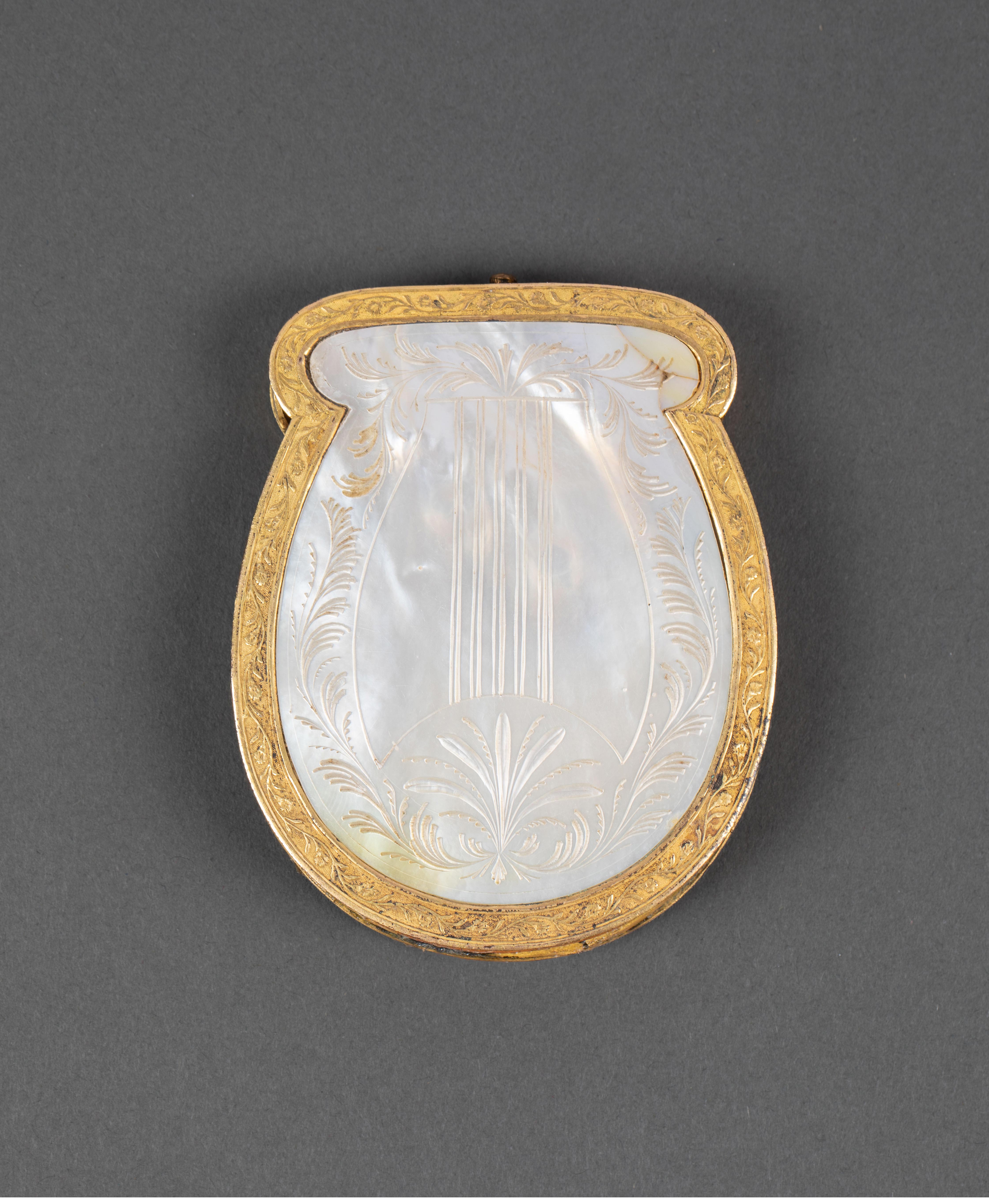 1820年代法国复辟时期出品卷叶纹主题铜鎏金装饰母贝精雕零钱包