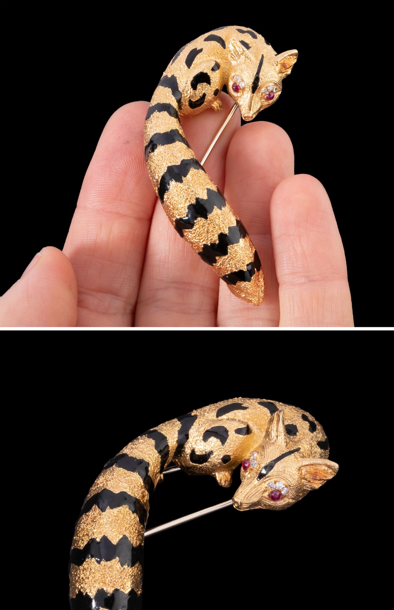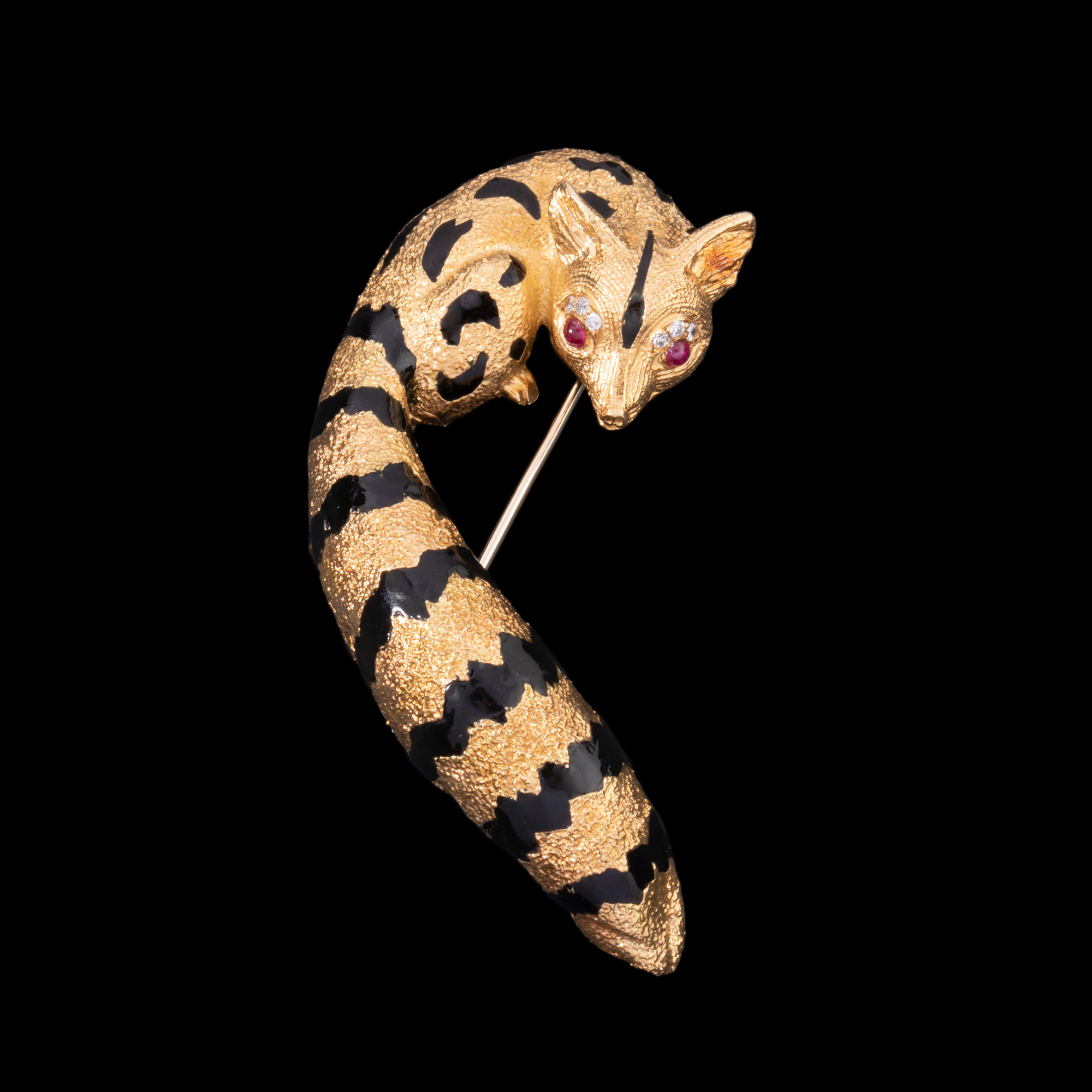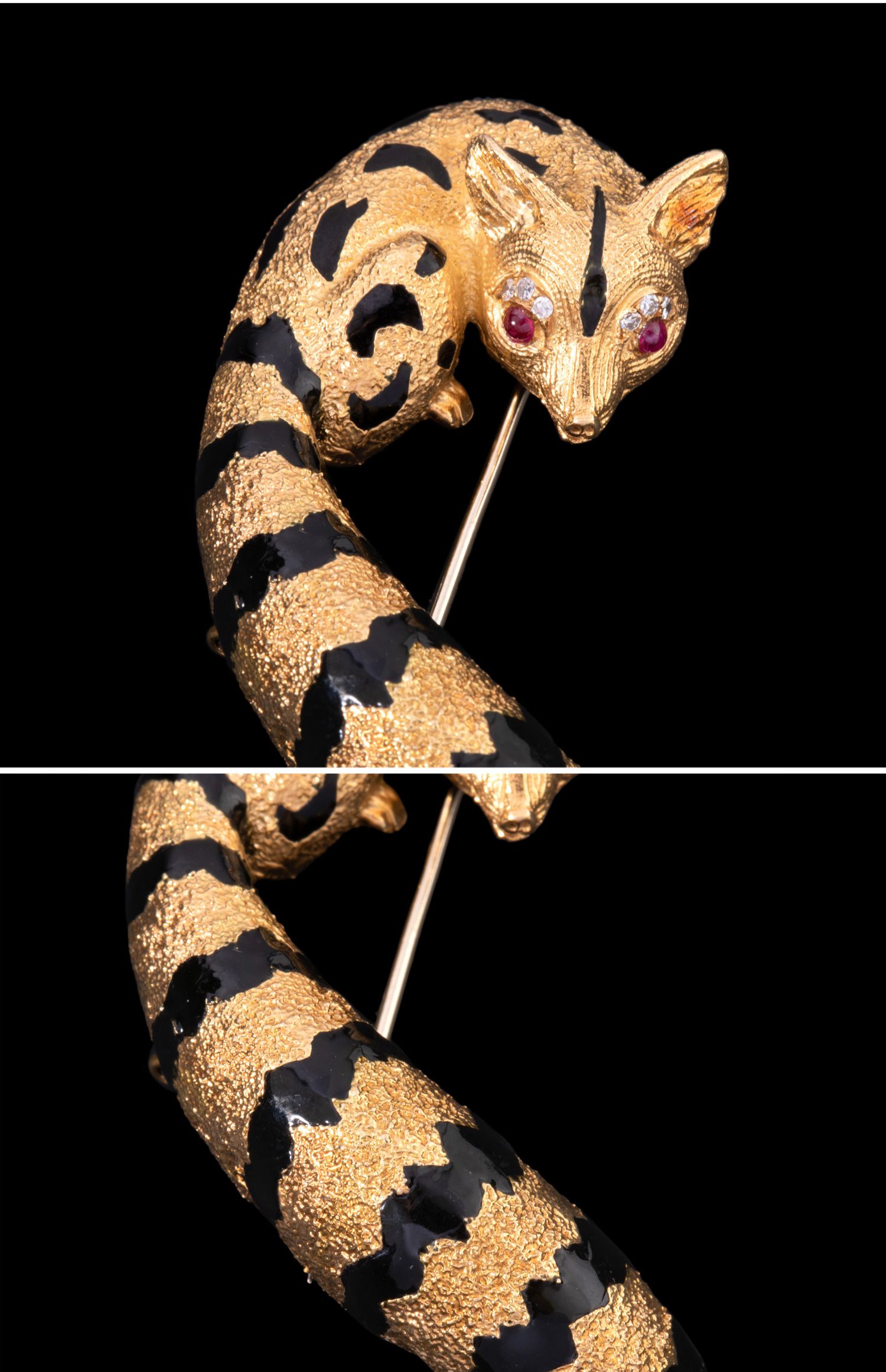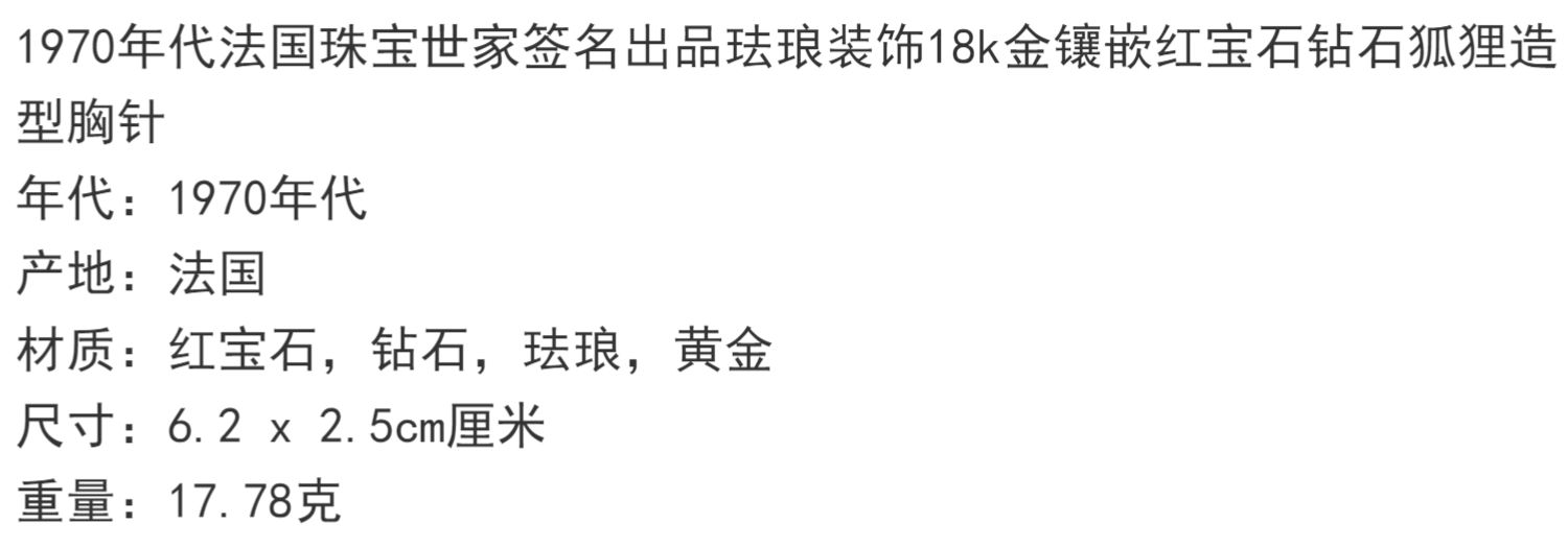 独角鹿西洋古董法国珠宝世家珐琅18K金镶红宝石钻石狐狸造型胸针