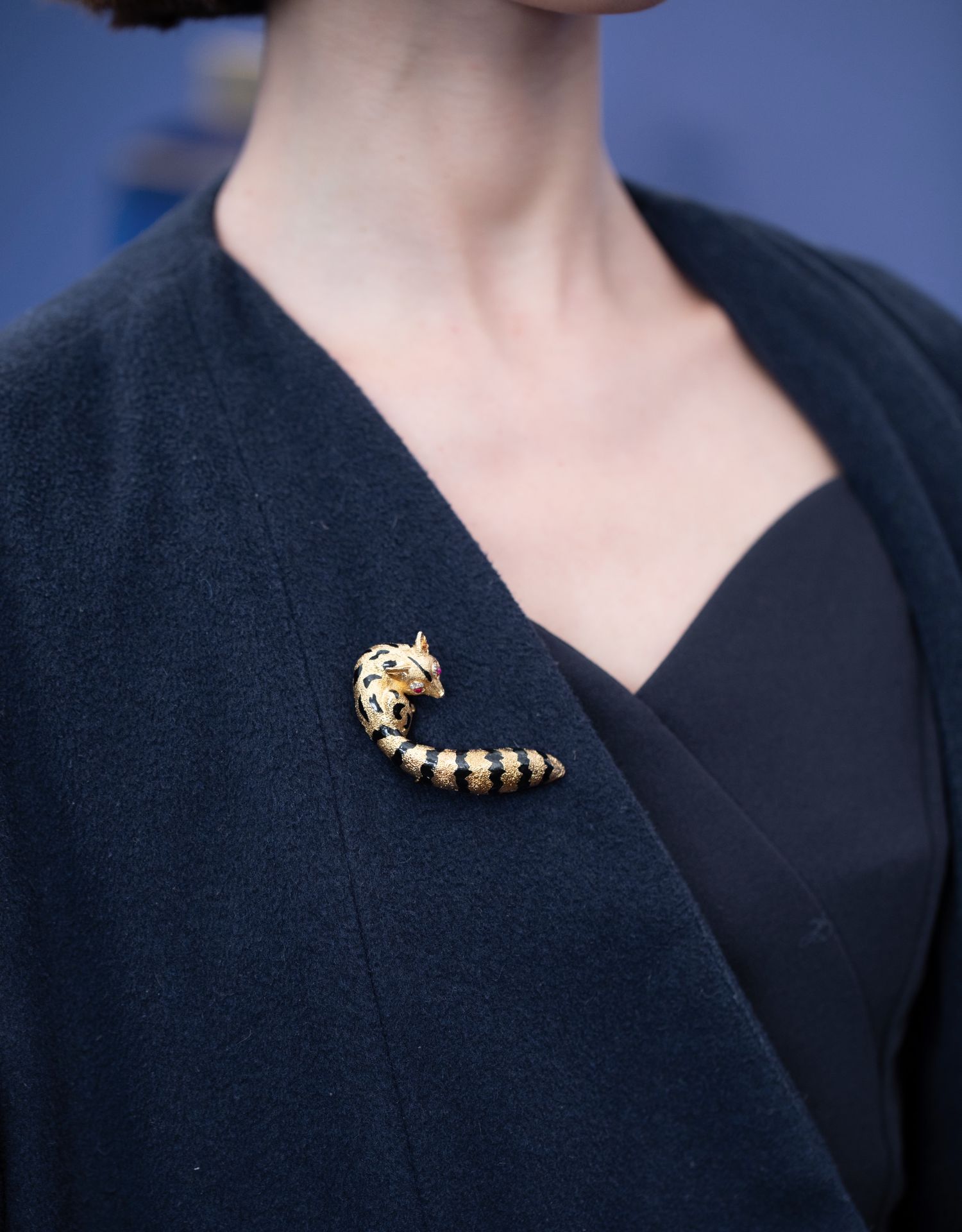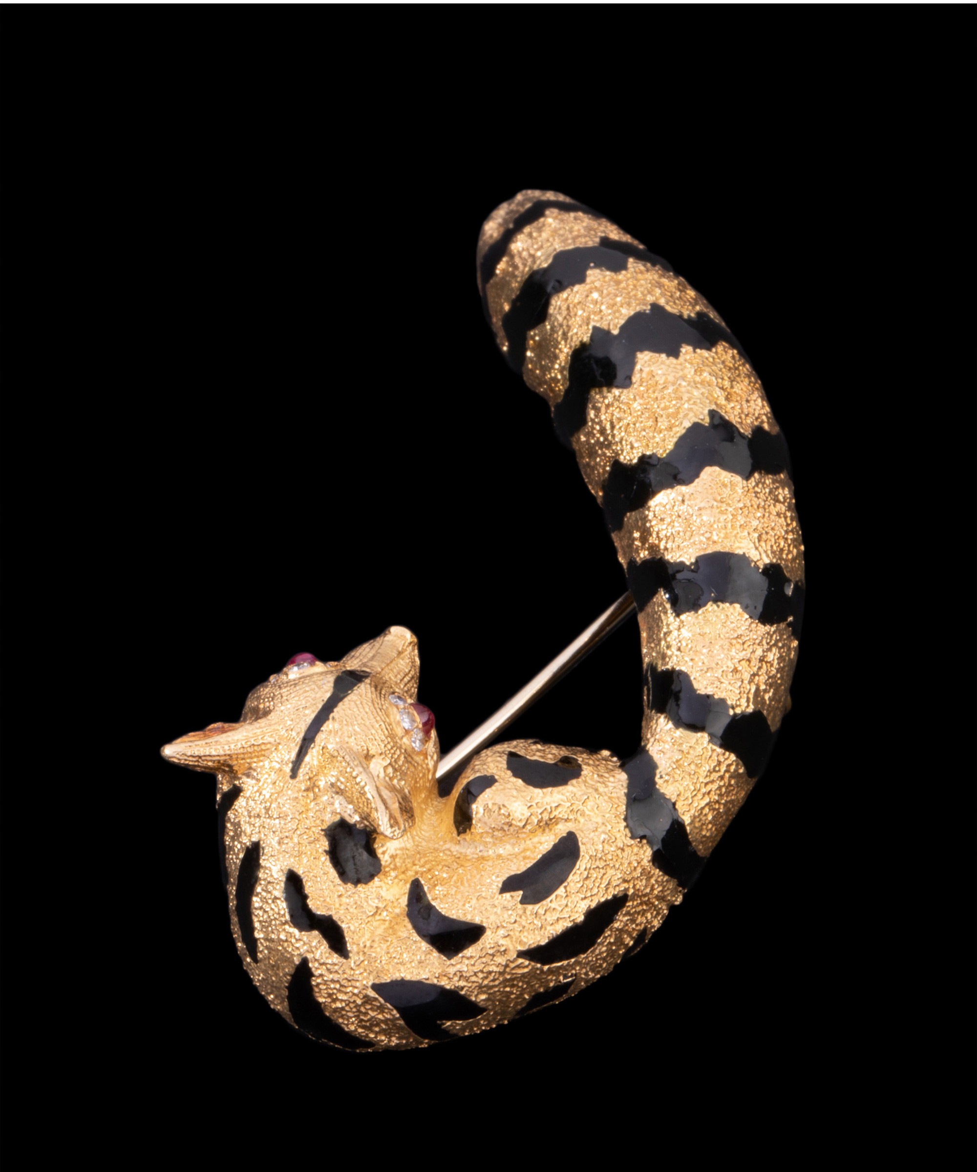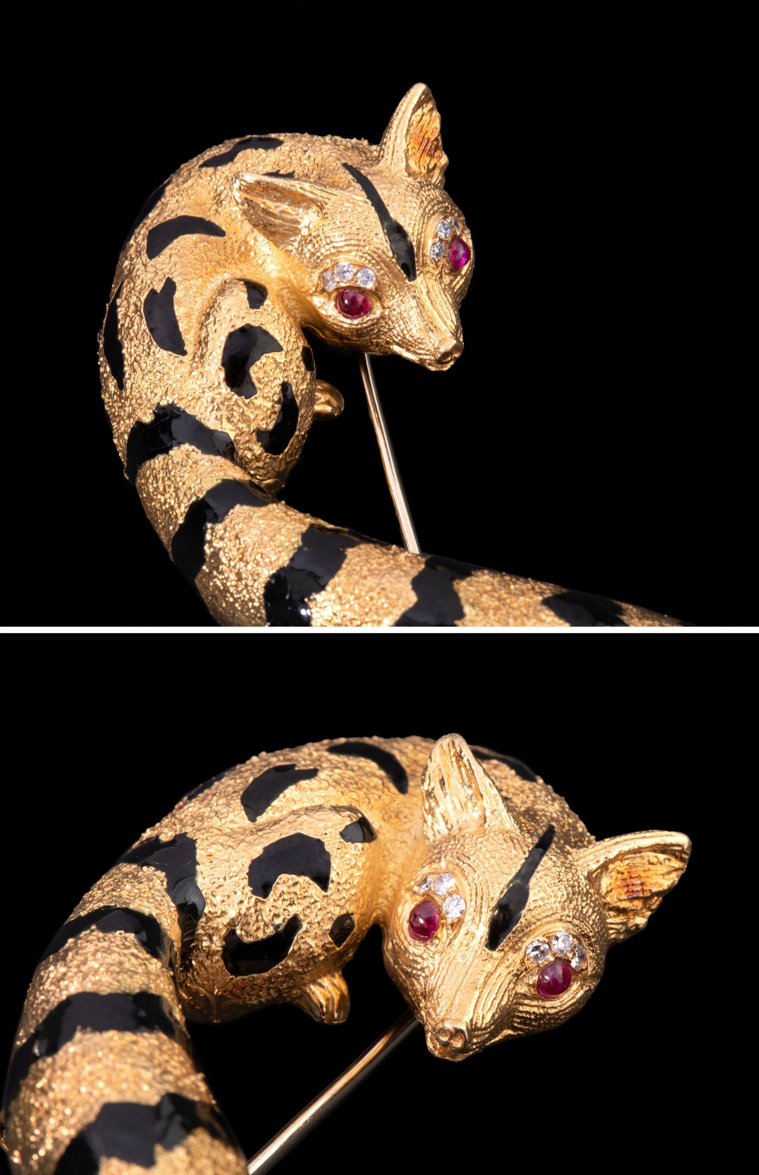 独角鹿西洋古董法国珠宝世家珐琅18K金镶红宝石钻石狐狸造型胸针