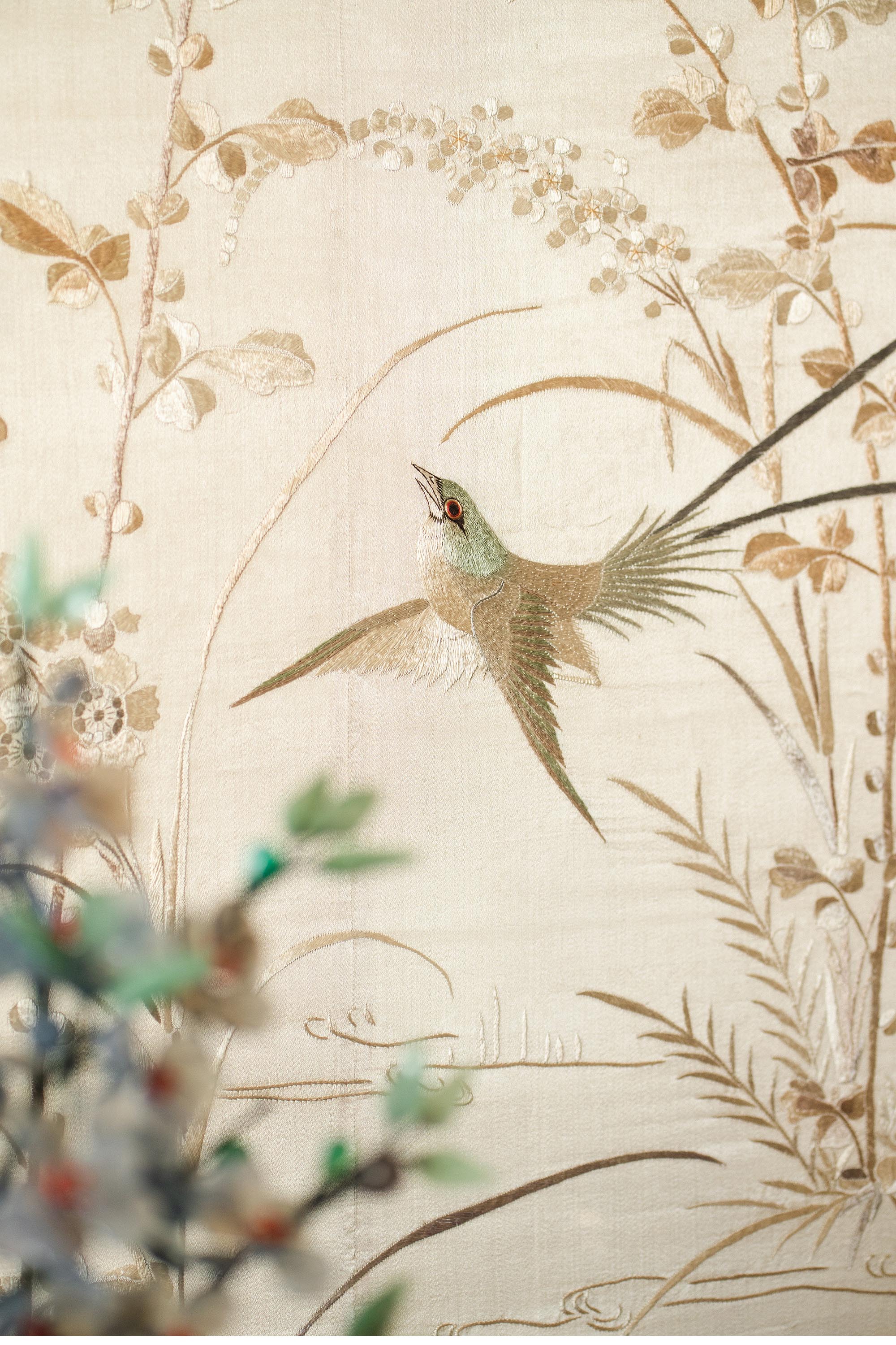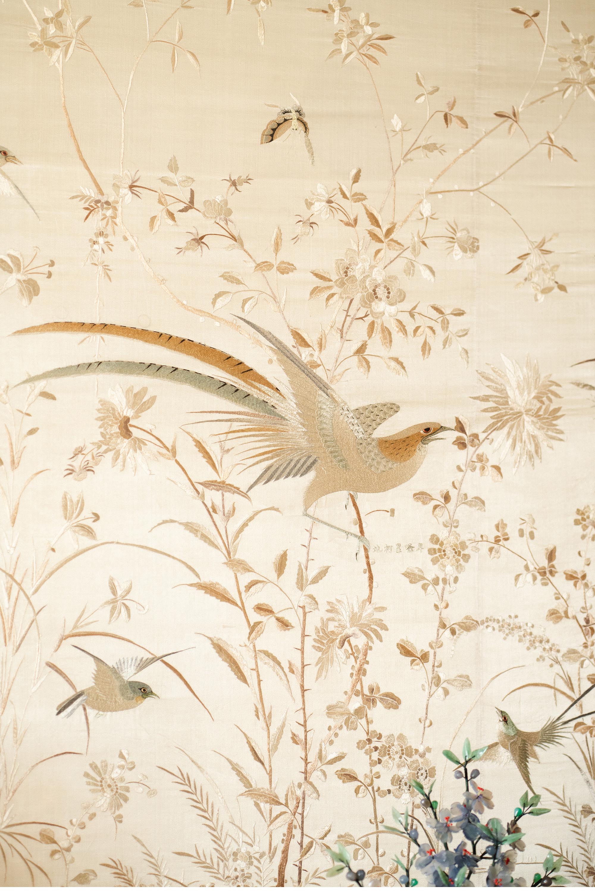 20世纪中国出品传统东方花鸟主题粤绣挂屏