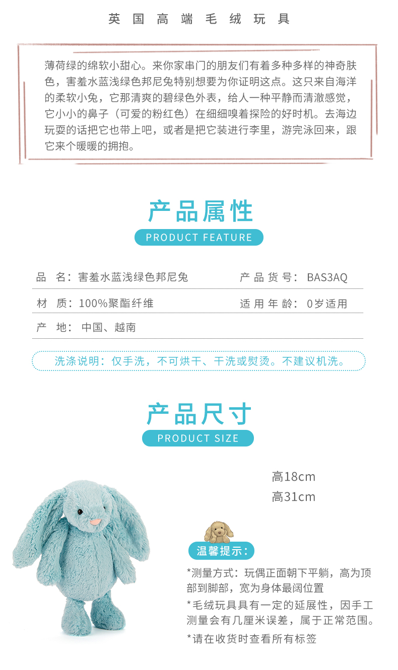 Jellycat 害羞系列 邦尼兔 浅绿色 31cm