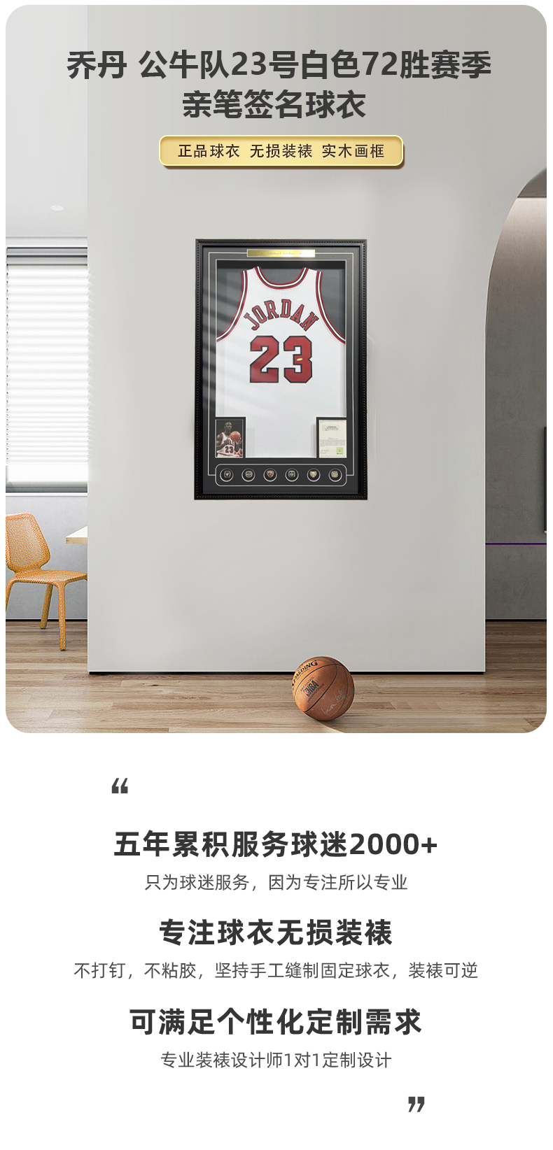 收藏系列 乔丹 公牛队23号白色72胜赛季 亲笔签名球衣