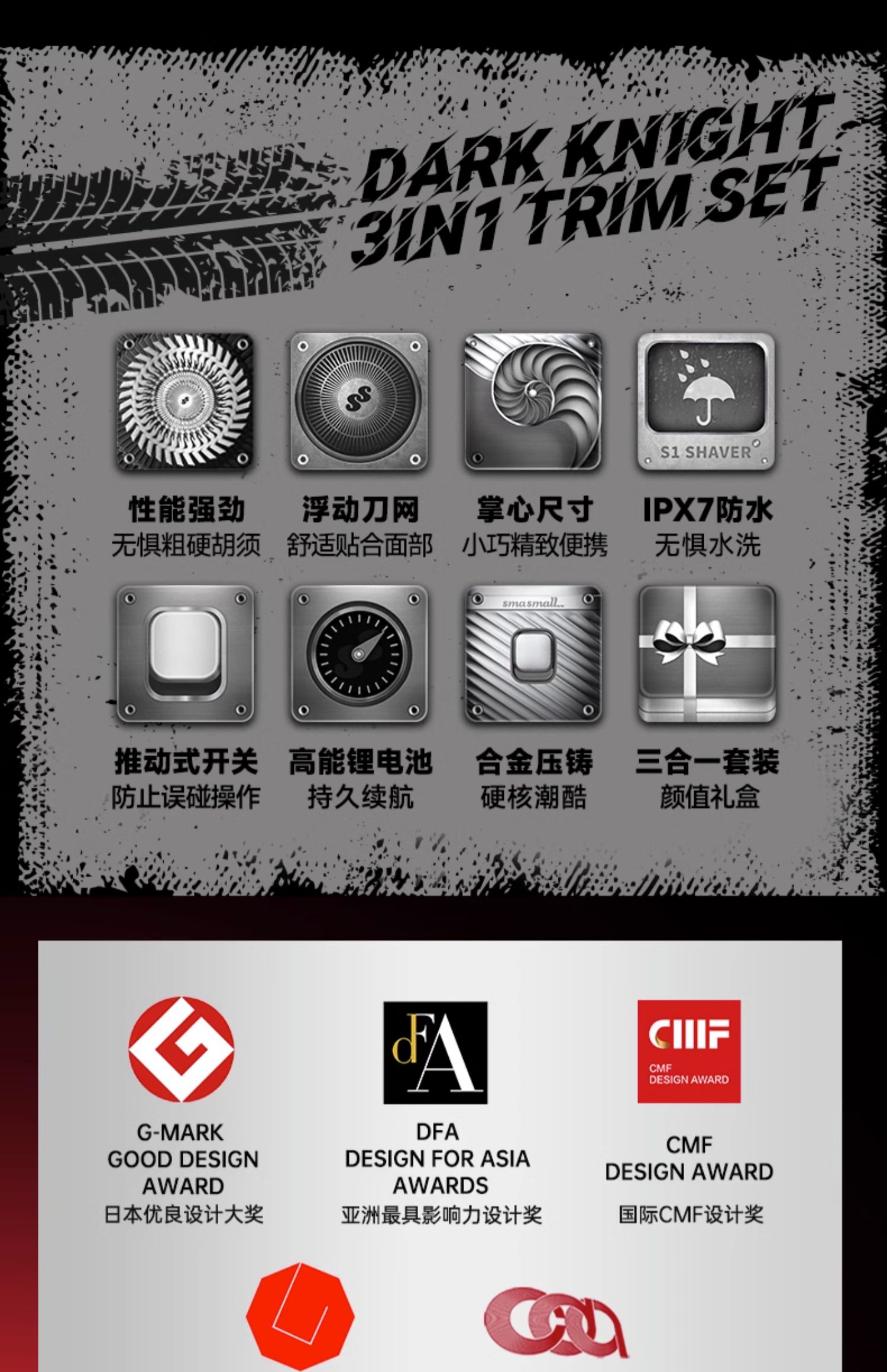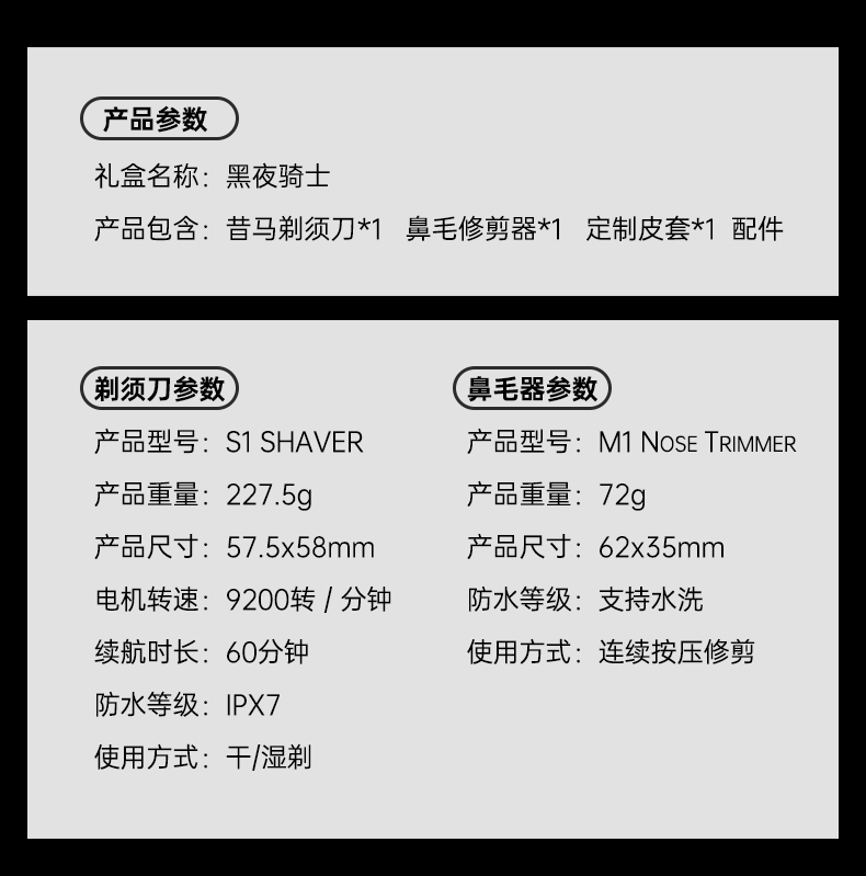 smasmall昔马 黑夜骑士套装(电动剃须刀+鼻毛修剪器)
