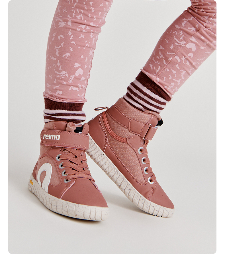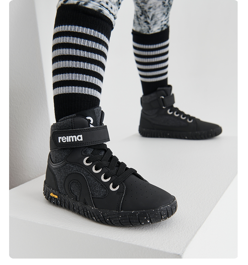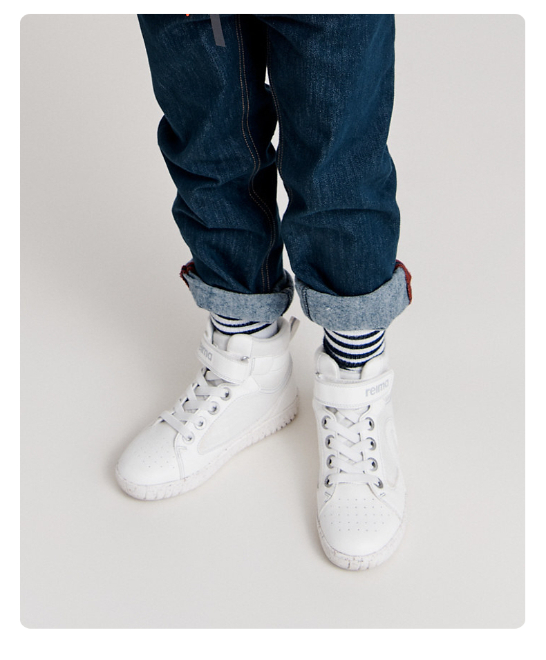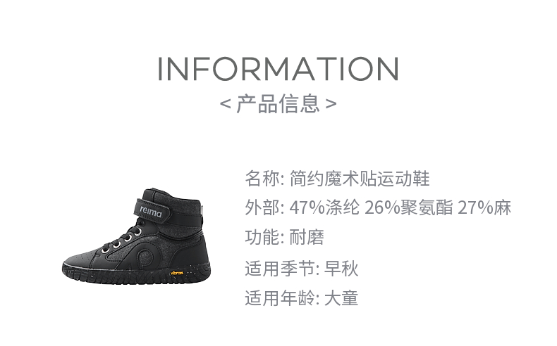 reima男女童大童休闲鞋秋季新款纯色魔术贴字母高帮运动鞋