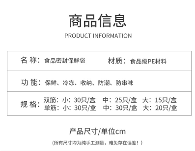 保鲜密封袋 真空食品冰箱收纳食物包装厨房储物家用自封袋压缩袋保鲜袋