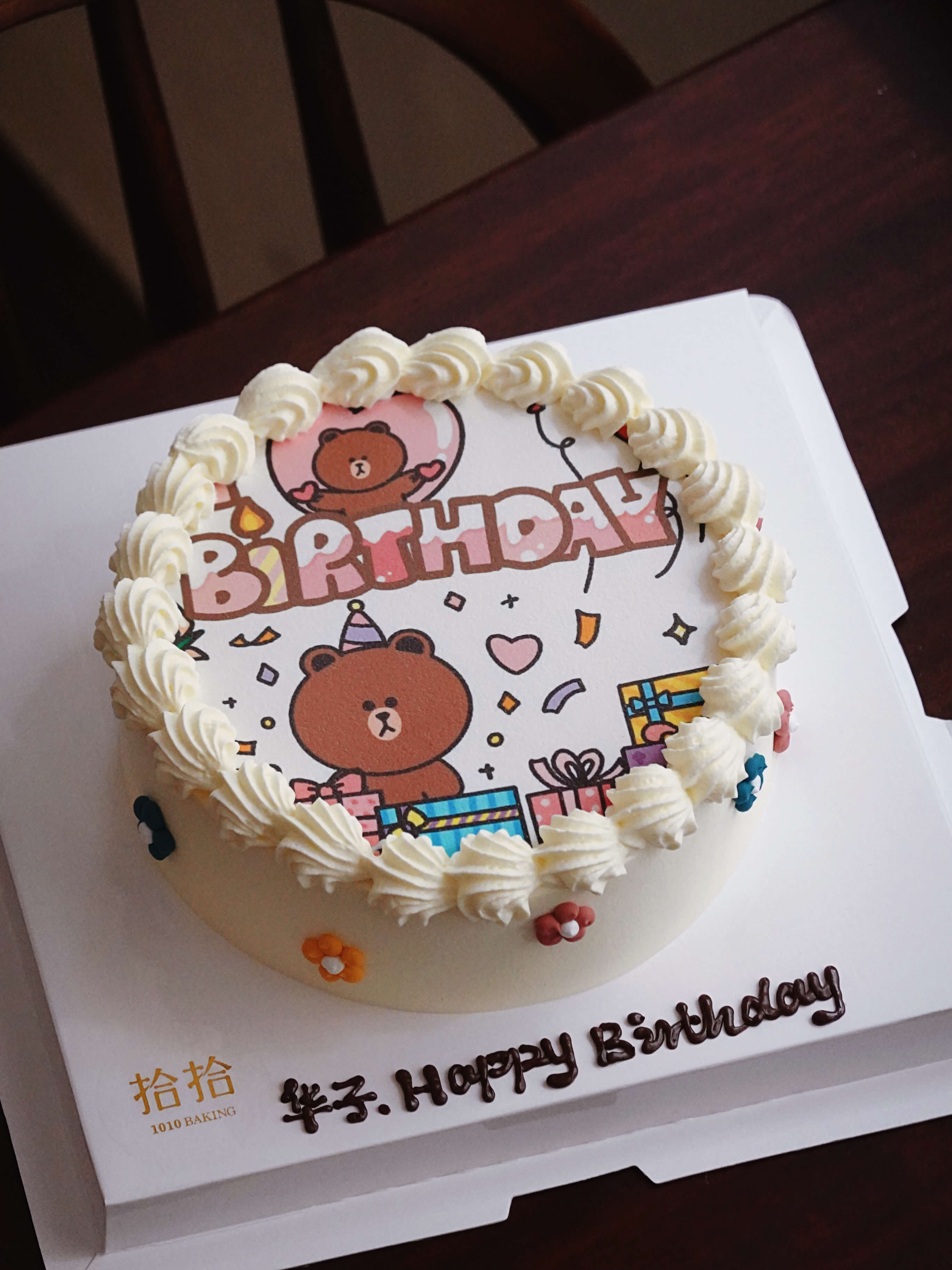 「布朗熊生日pa」巧克力糯米糖纸·订制照片·100%动物奶油(附图6寸·提前24小时预订)