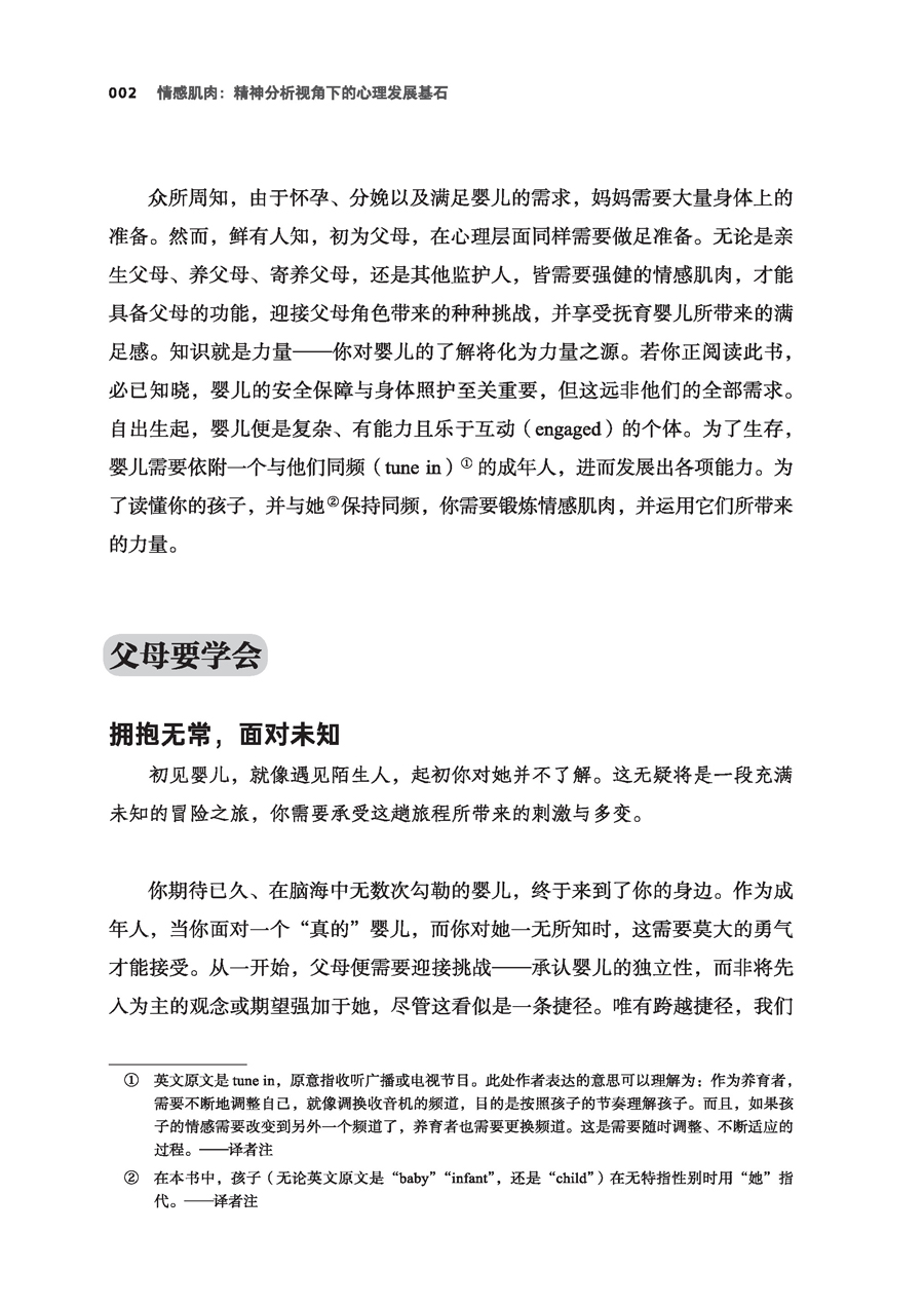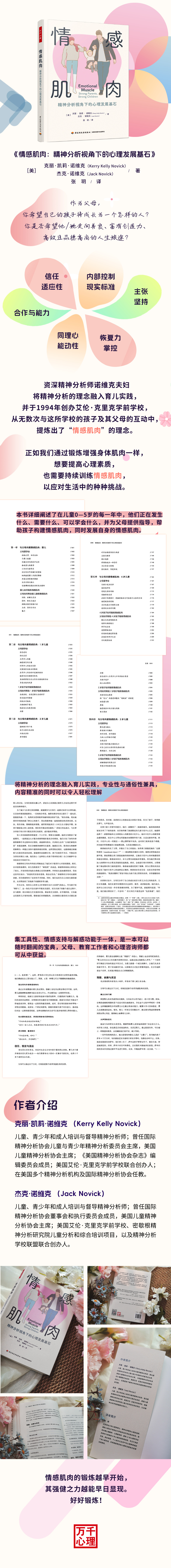 本书作者诺维克夫妇均为资深精神分析师,他们将精神分析的理念融入育儿实践,并于1994年创办艾伦·克里克学前学校,通过无数次与这所学前学校的孩子及其父母的互动中,提炼出了“情感肌肉”的理念。