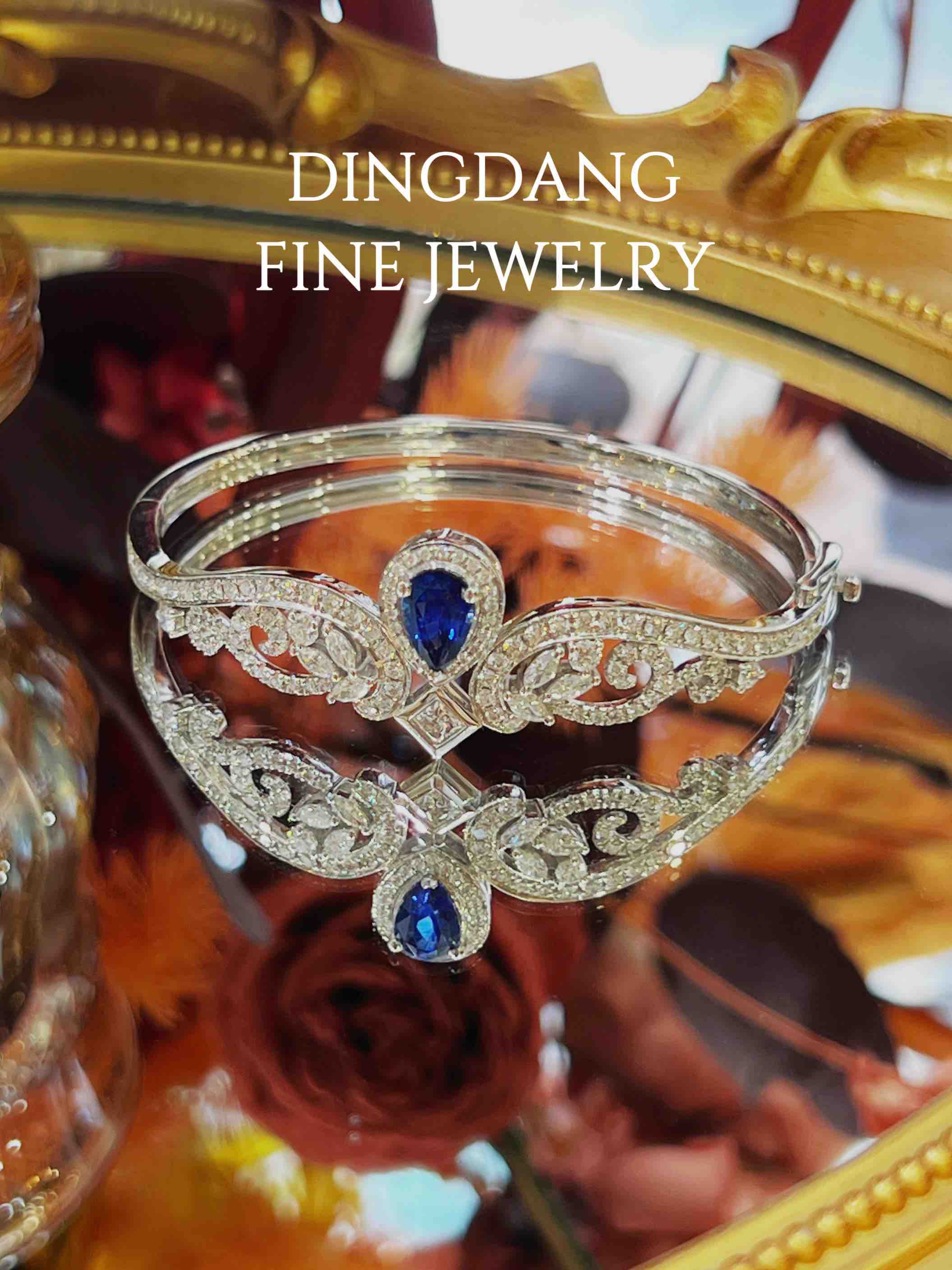 18K金皇家蓝水滴 蓝宝石 手镯,精致皇冠镂空钻石花边手镯 主石头1.52ct vivid blue 满钻皇冠设计特显贵气 ,让人移不开眼!总重14.68g,金价800元每克。值回金价!