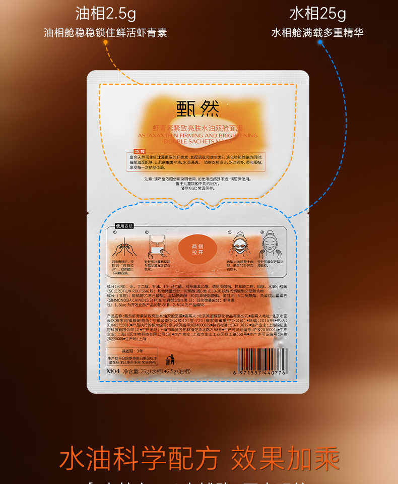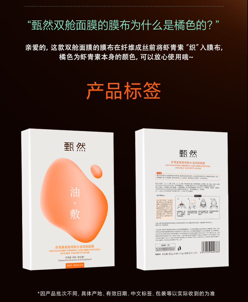 sy甄然虾青素紧致亮肤水油双舱面膜5片/盒,送2盒同款