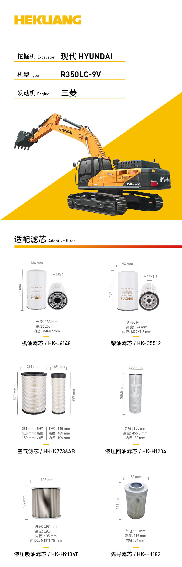 现代R350LC-9V(三菱)挖掘机滤芯 机油柴油空气滤芯 液压油先导滤芯