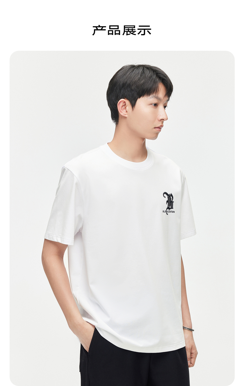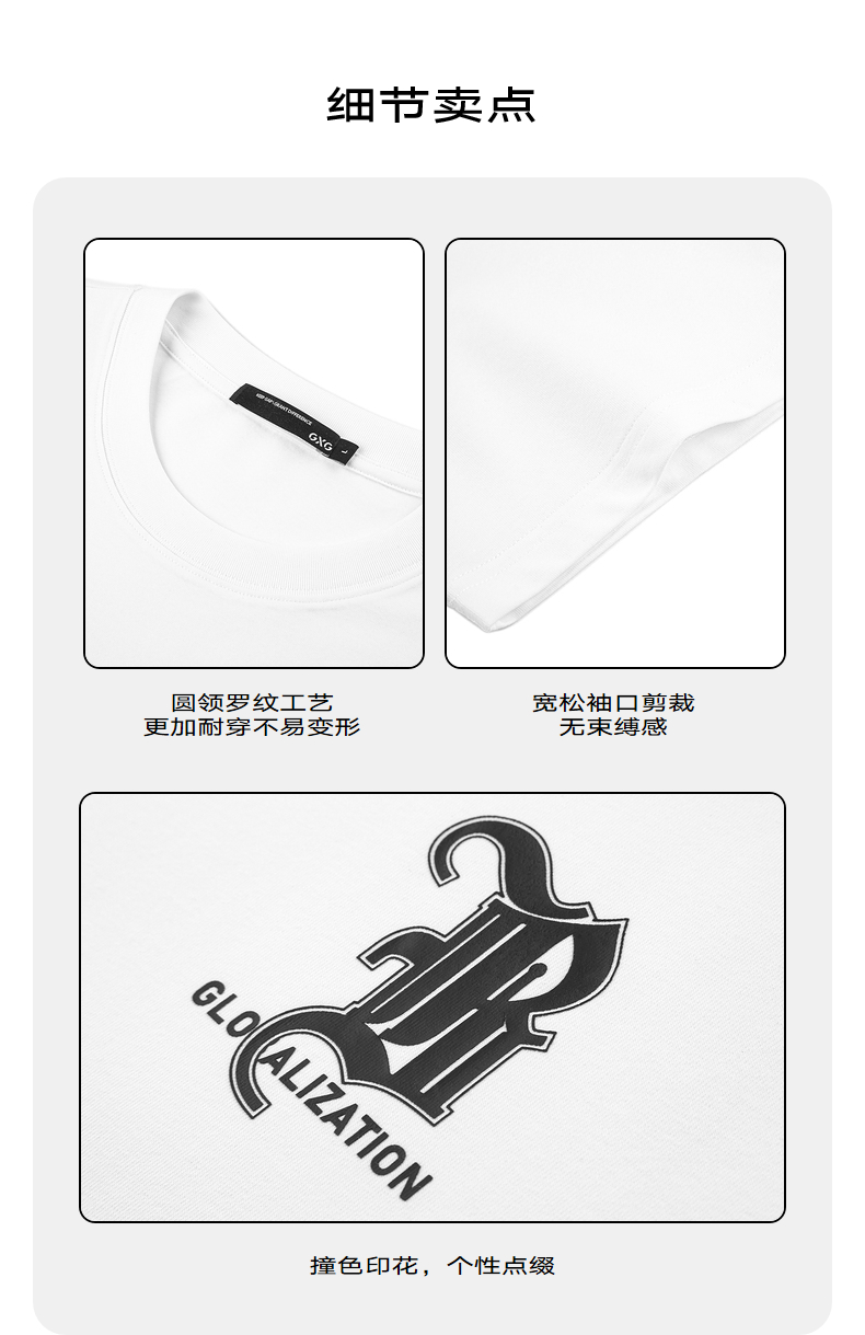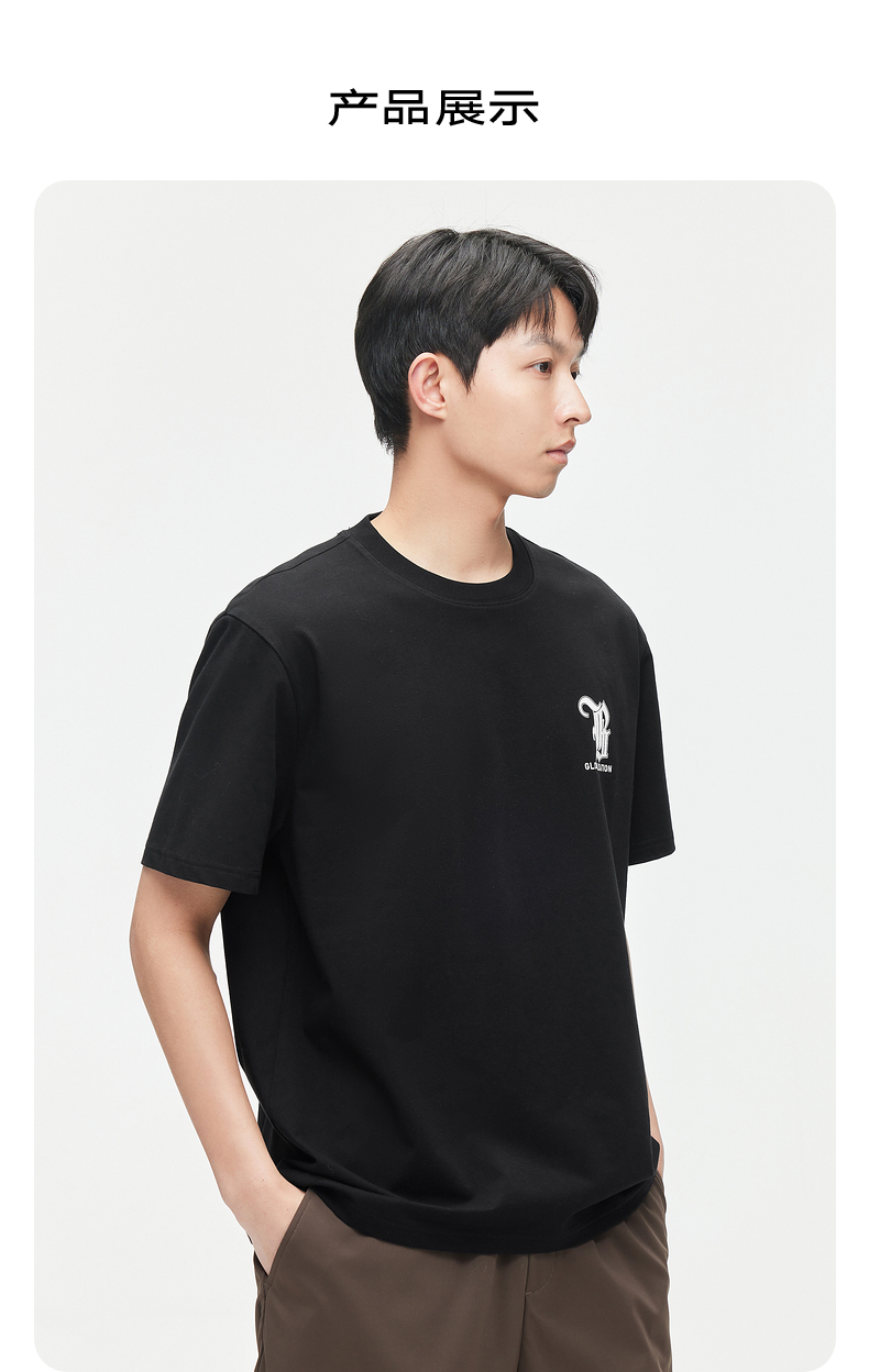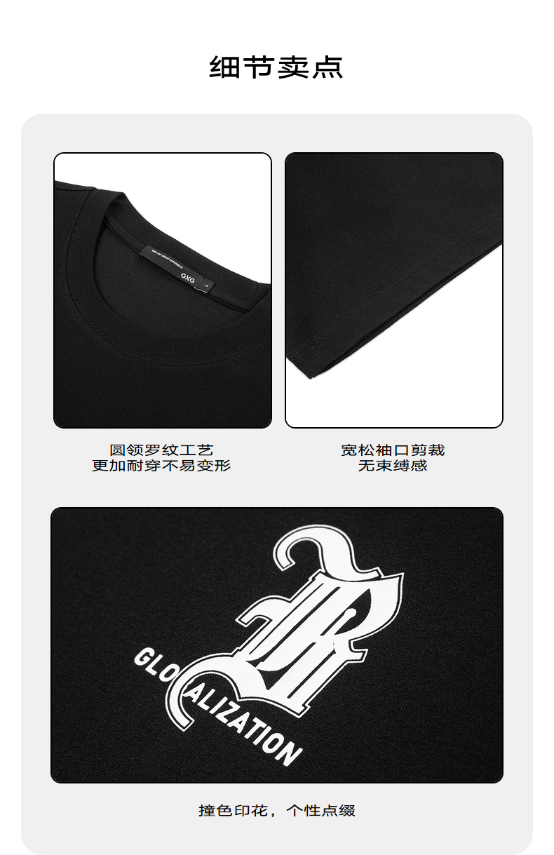 GXG男装【新品推荐】24夏季新品双色休闲简约撞色印花圆领短袖t恤男