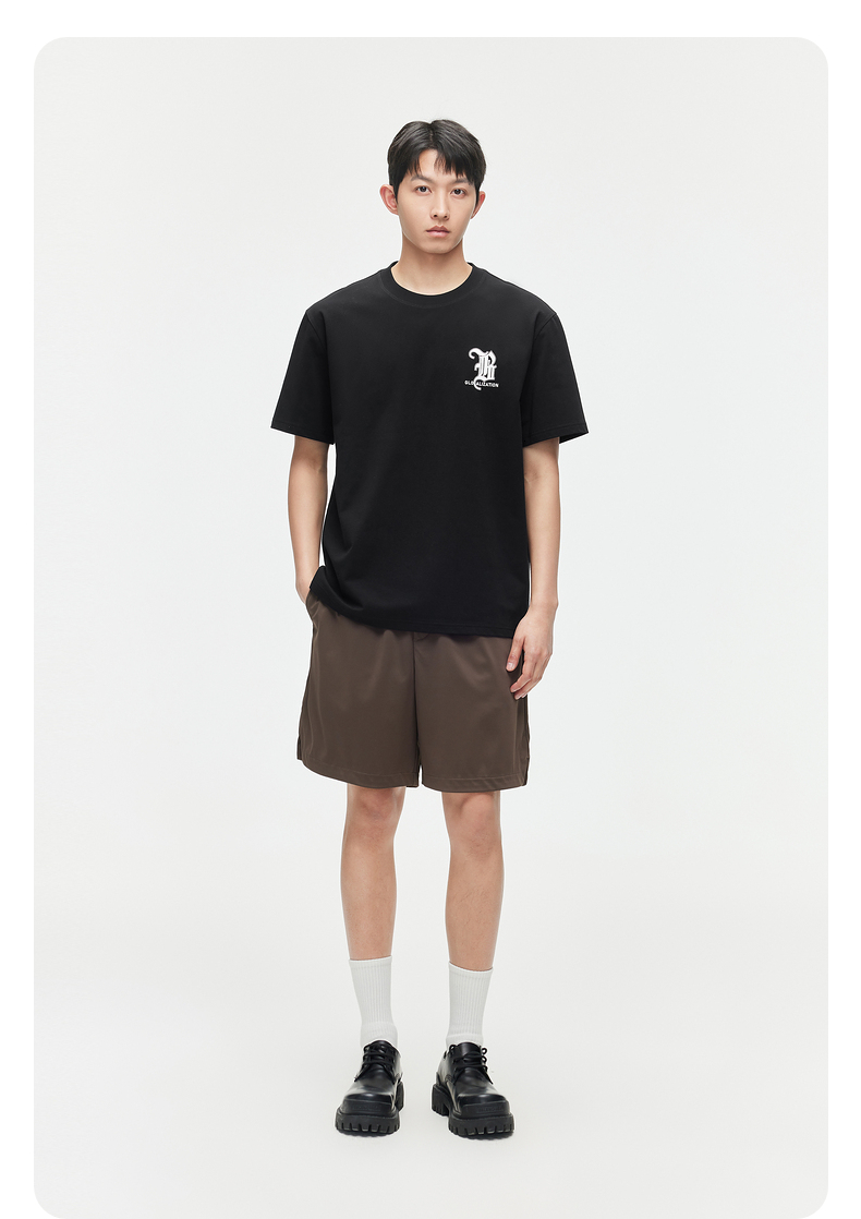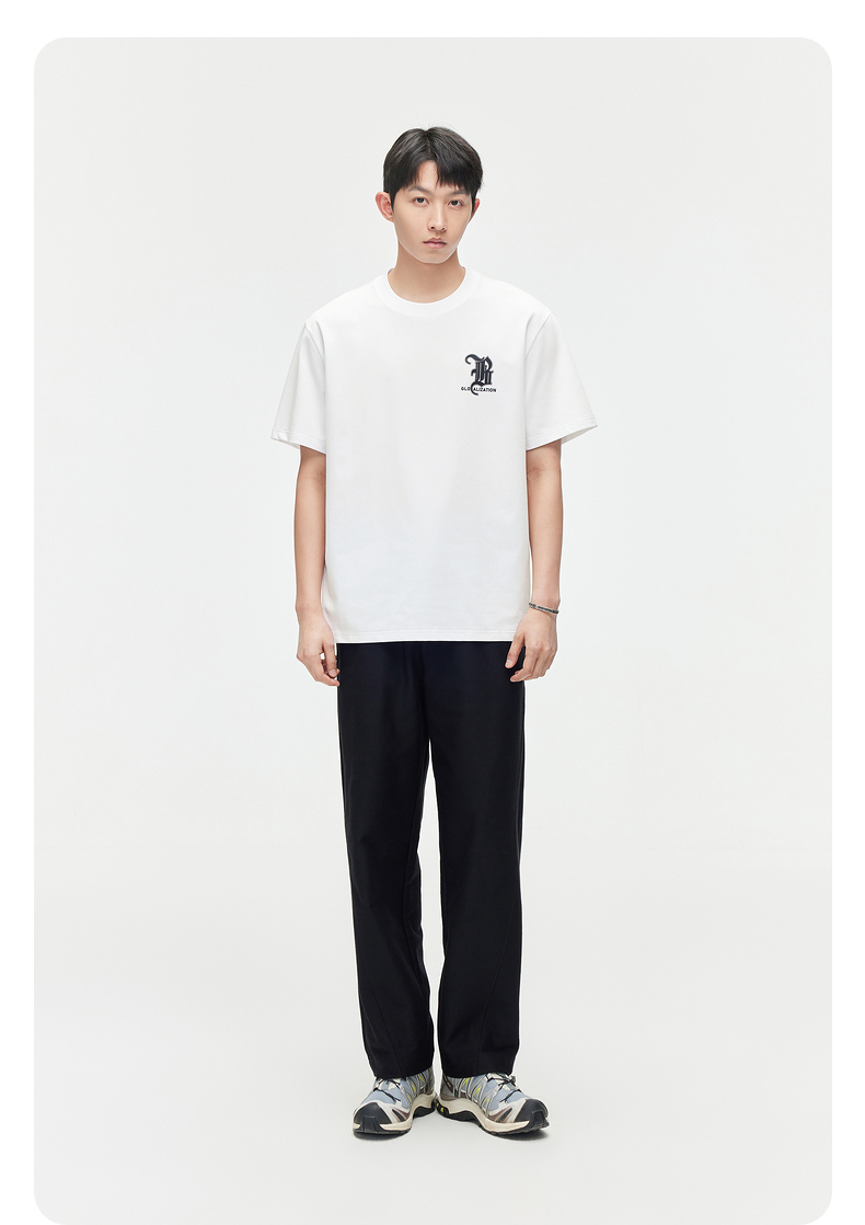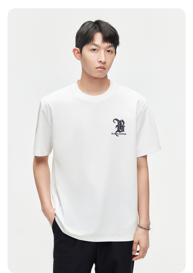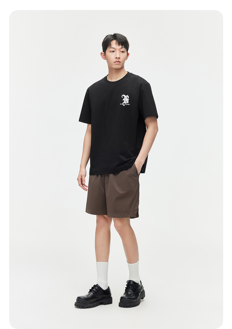 GXG男装【新品推荐】24夏季新品双色休闲简约撞色印花圆领短袖t恤男