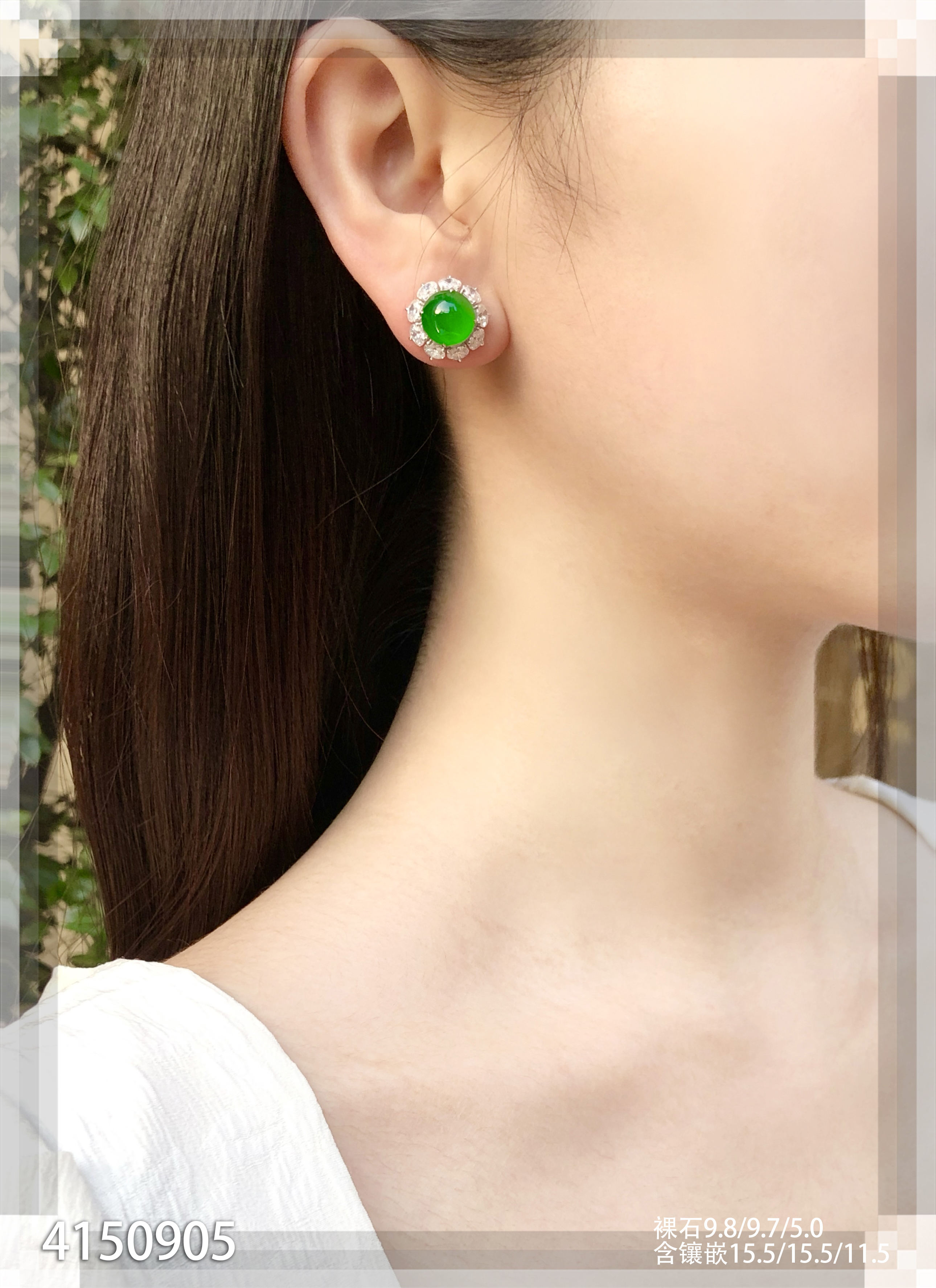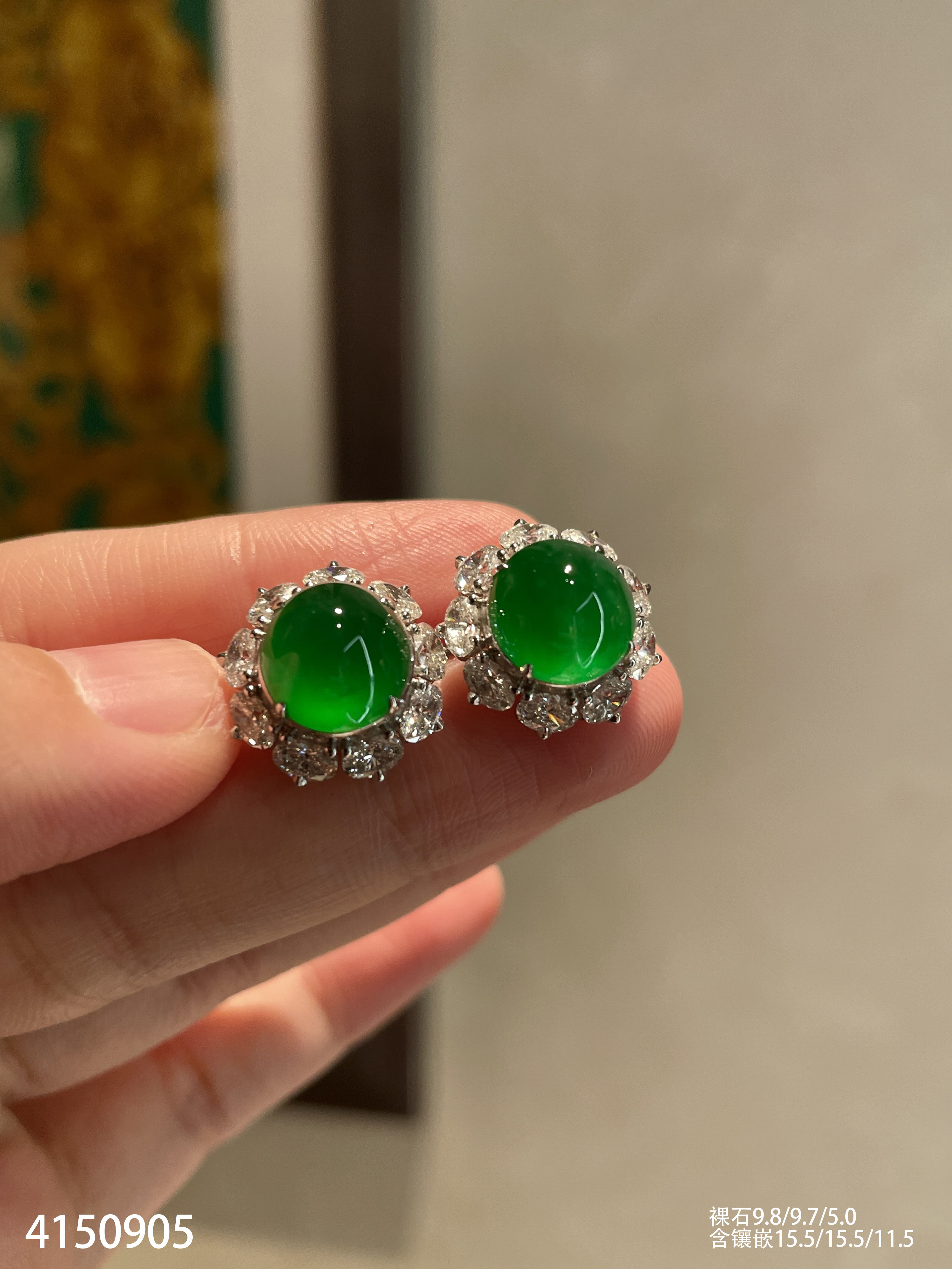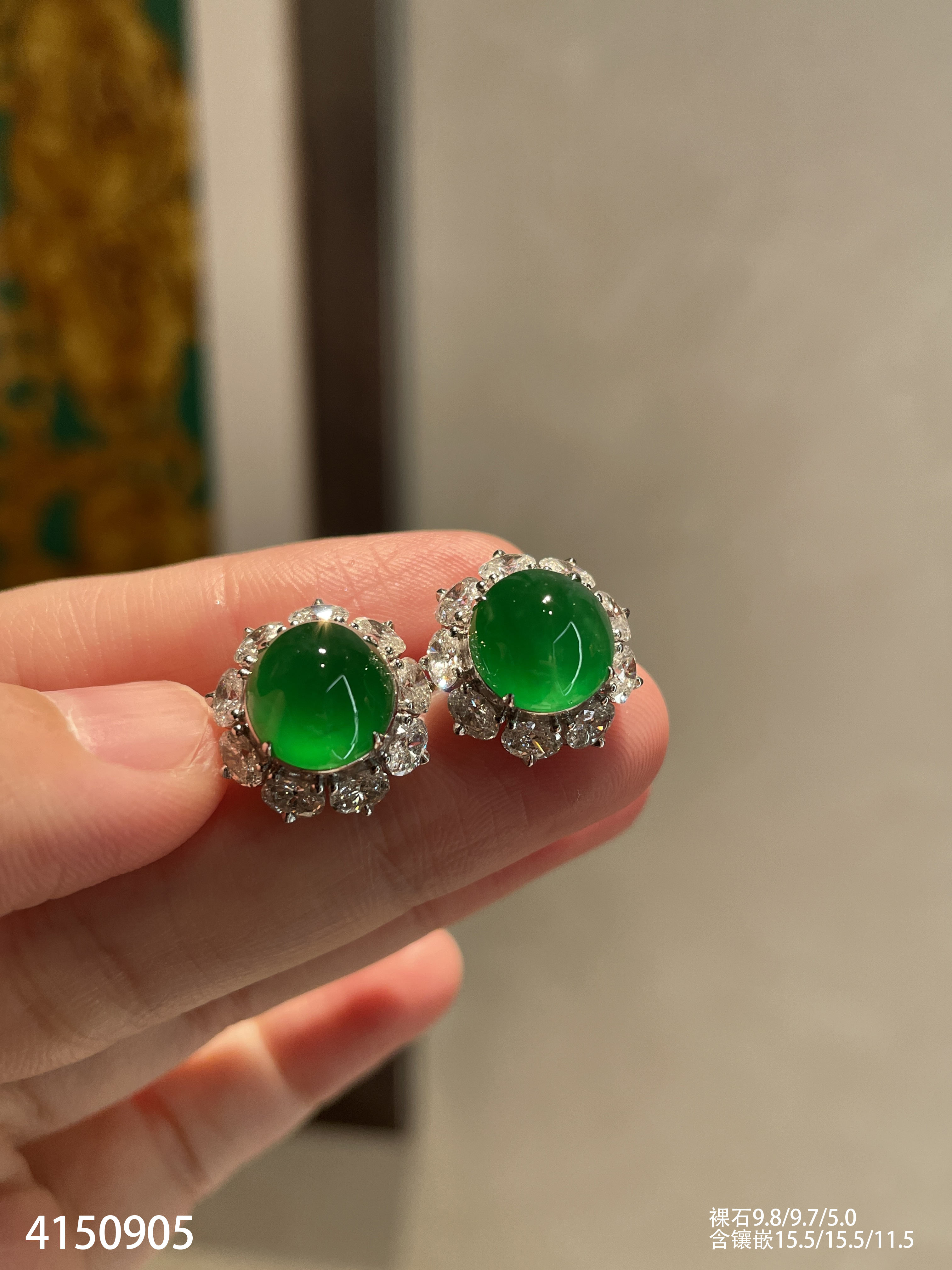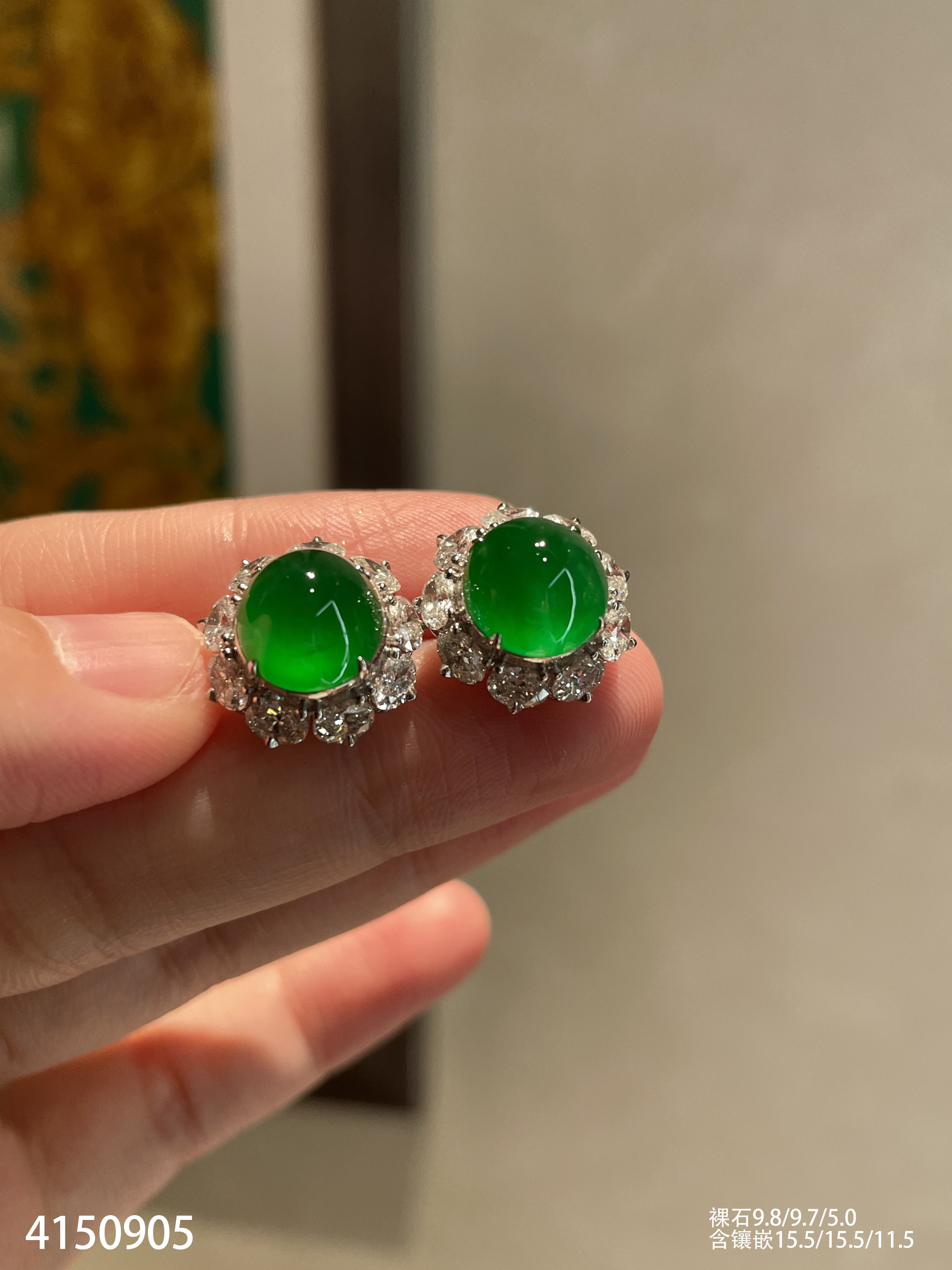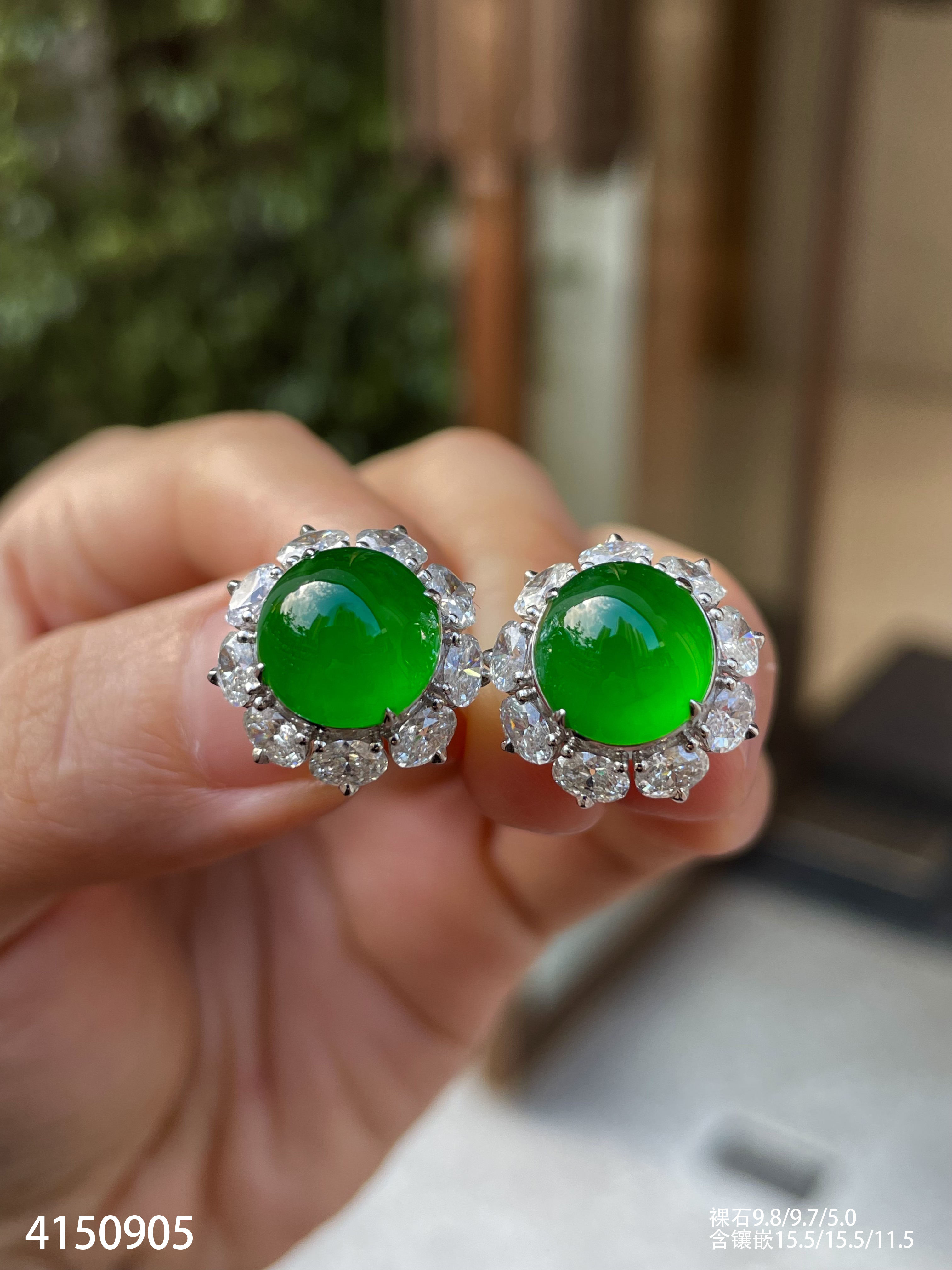 老坑玻璃种帝王绿蛋面耳钉【4150905】具体价格微信咨询