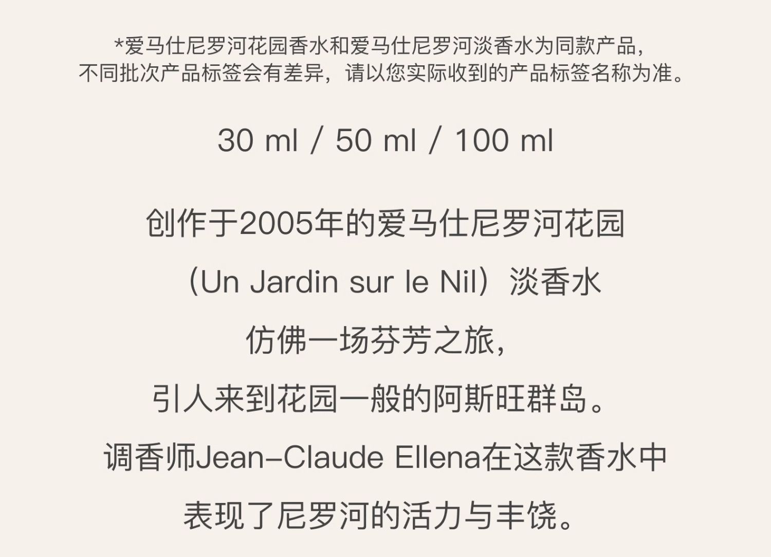 爱马仕尼罗河花园香水 50ml