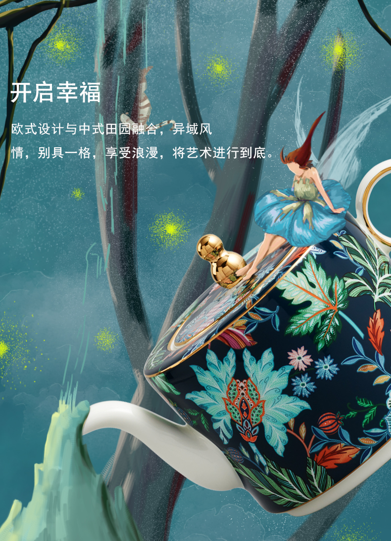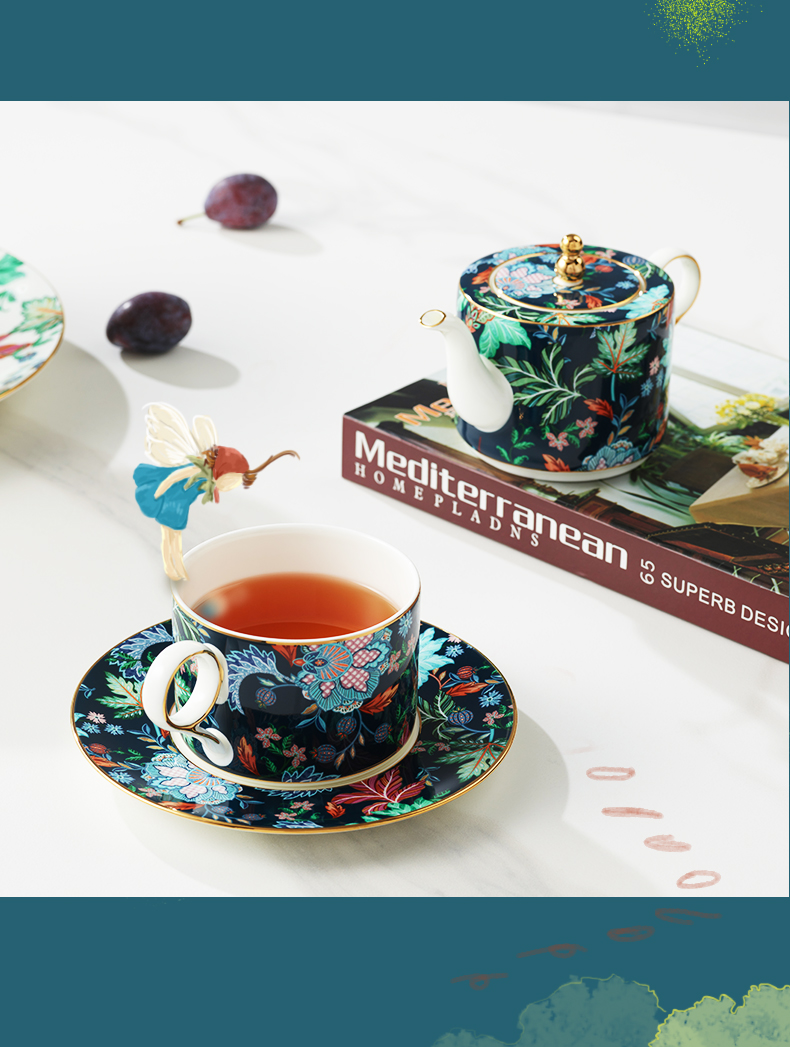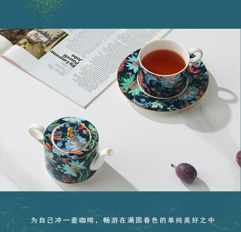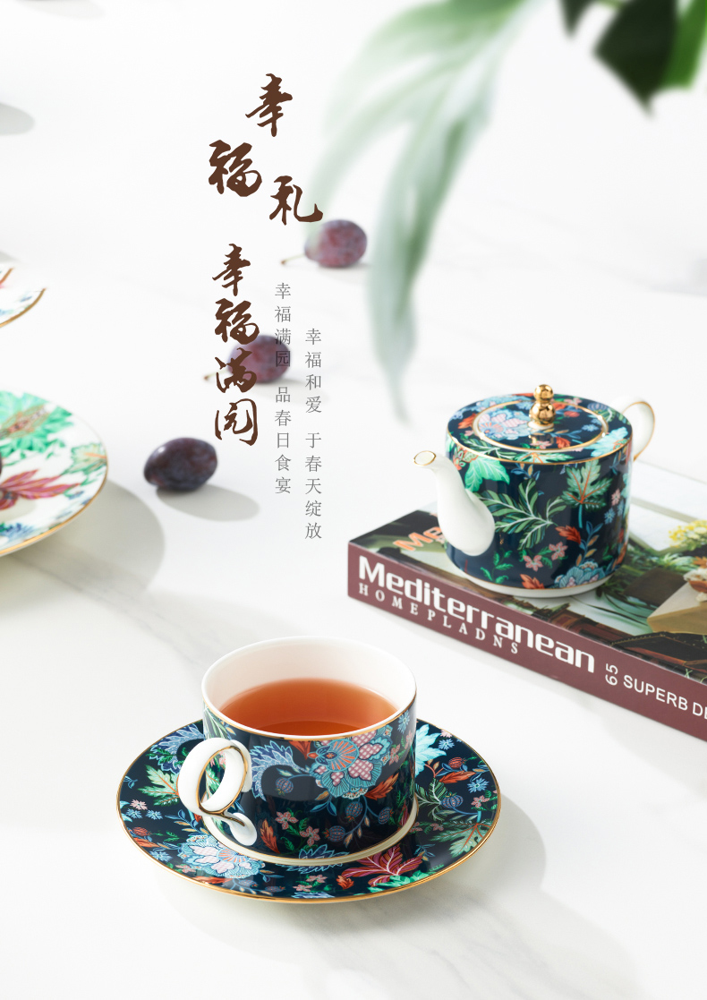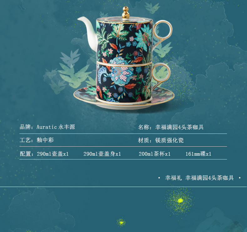 【国瓷·永丰源】幸福满园 4头茶咖具 咖啡具客厅 茶壶茶杯碟 新品