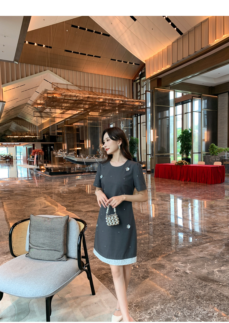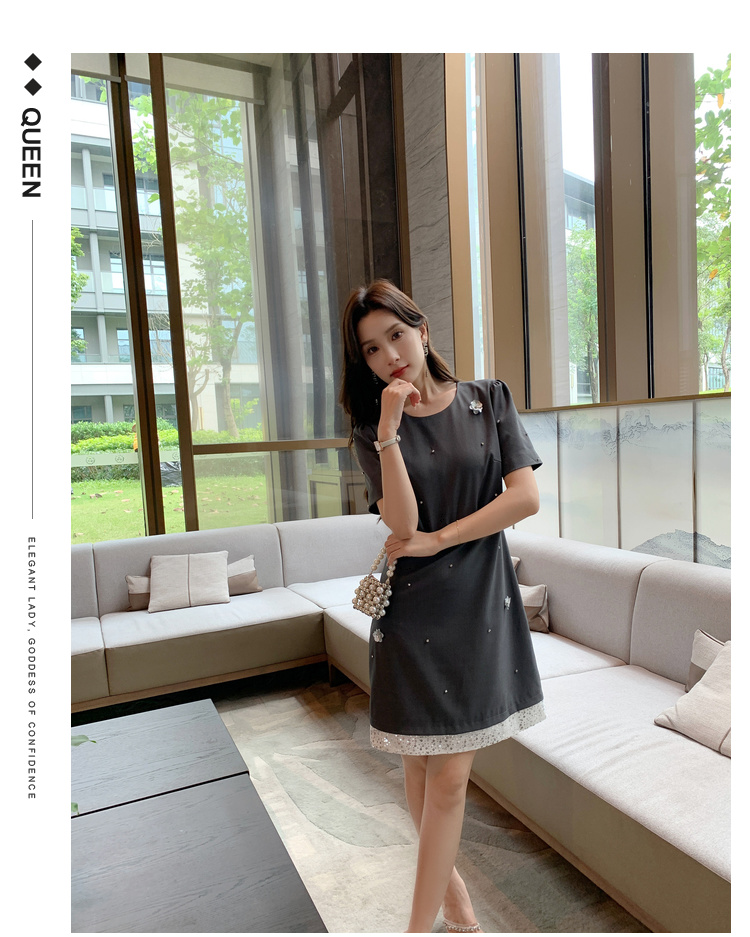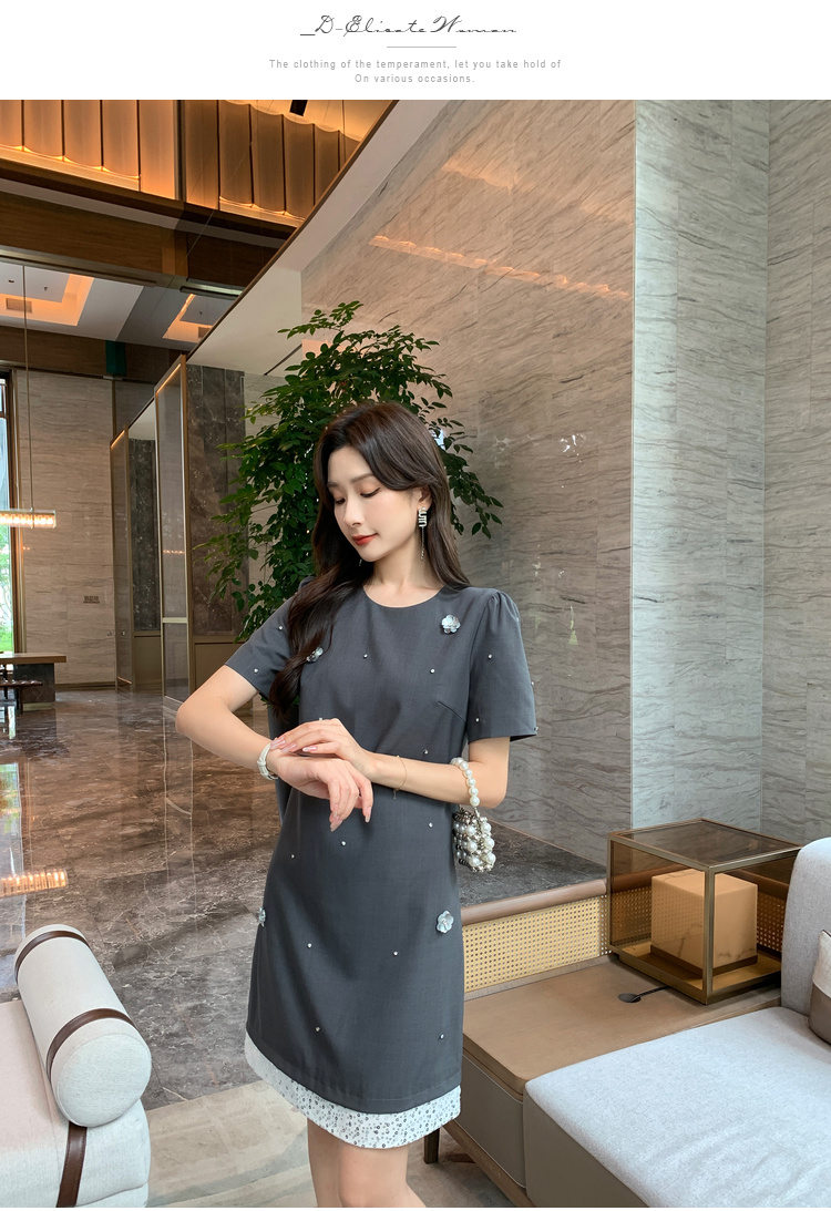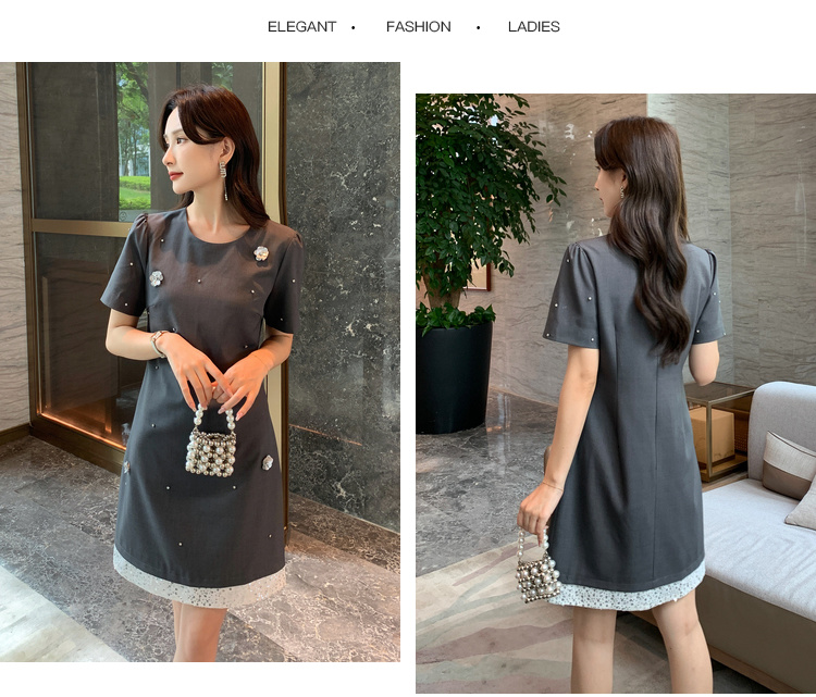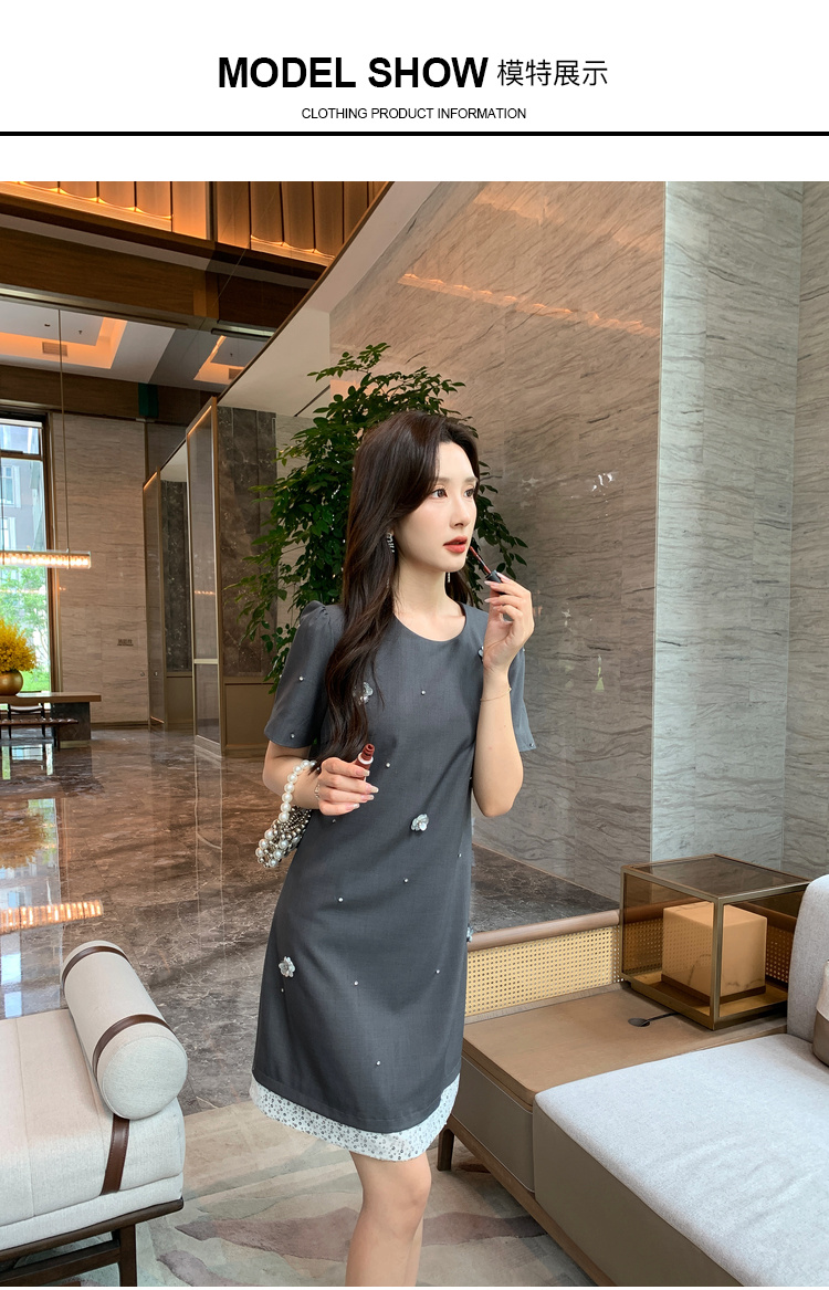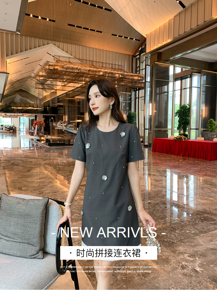 奢姿大码女装2025夏季减龄亮片拼接裙子胖妹妹立体装饰时尚连衣裙9942825748