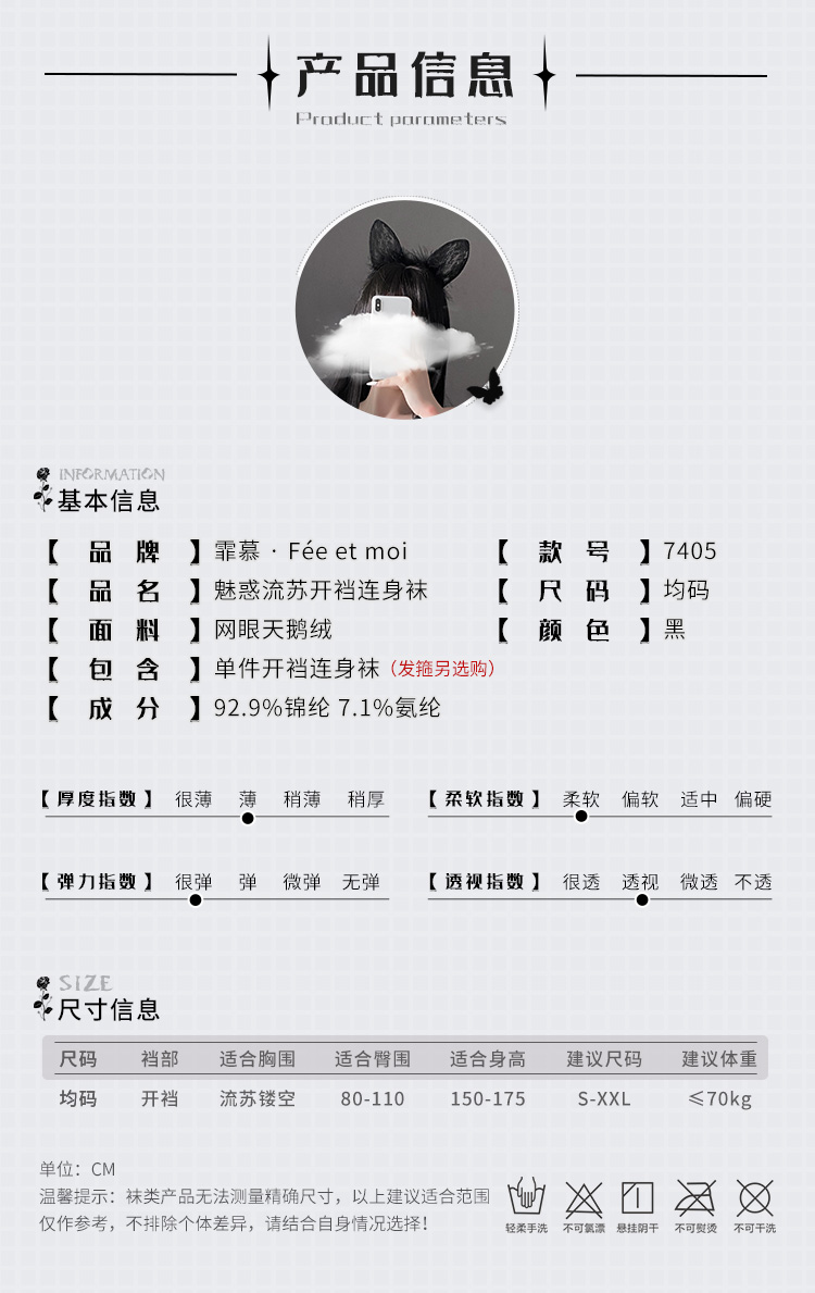 【勾心记】情趣内衣 丝袜 蕾丝 连体衣 开档 连身袜 内衣 型号:7405