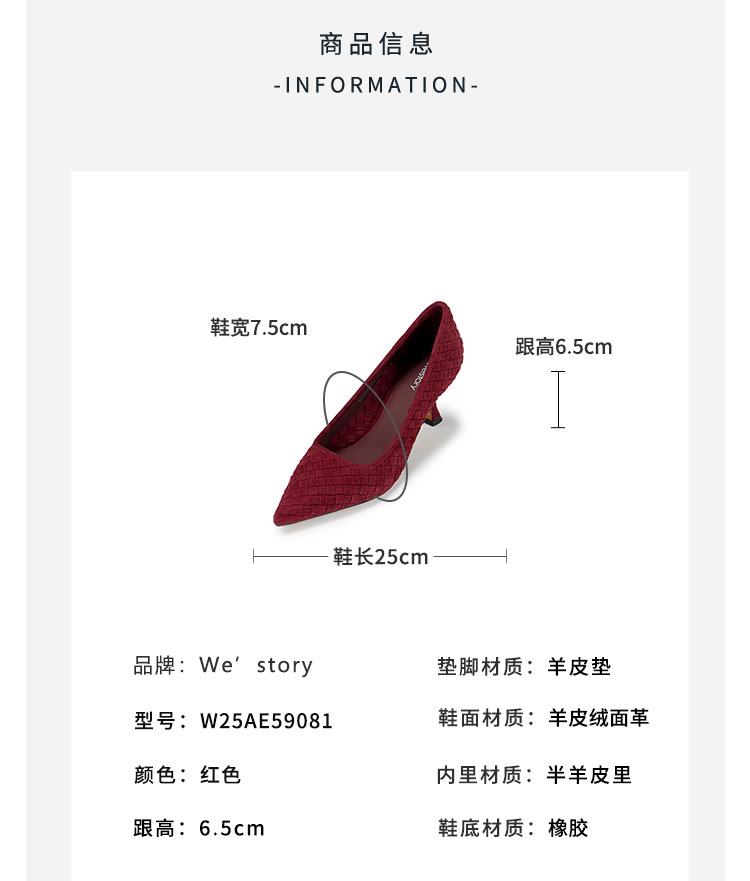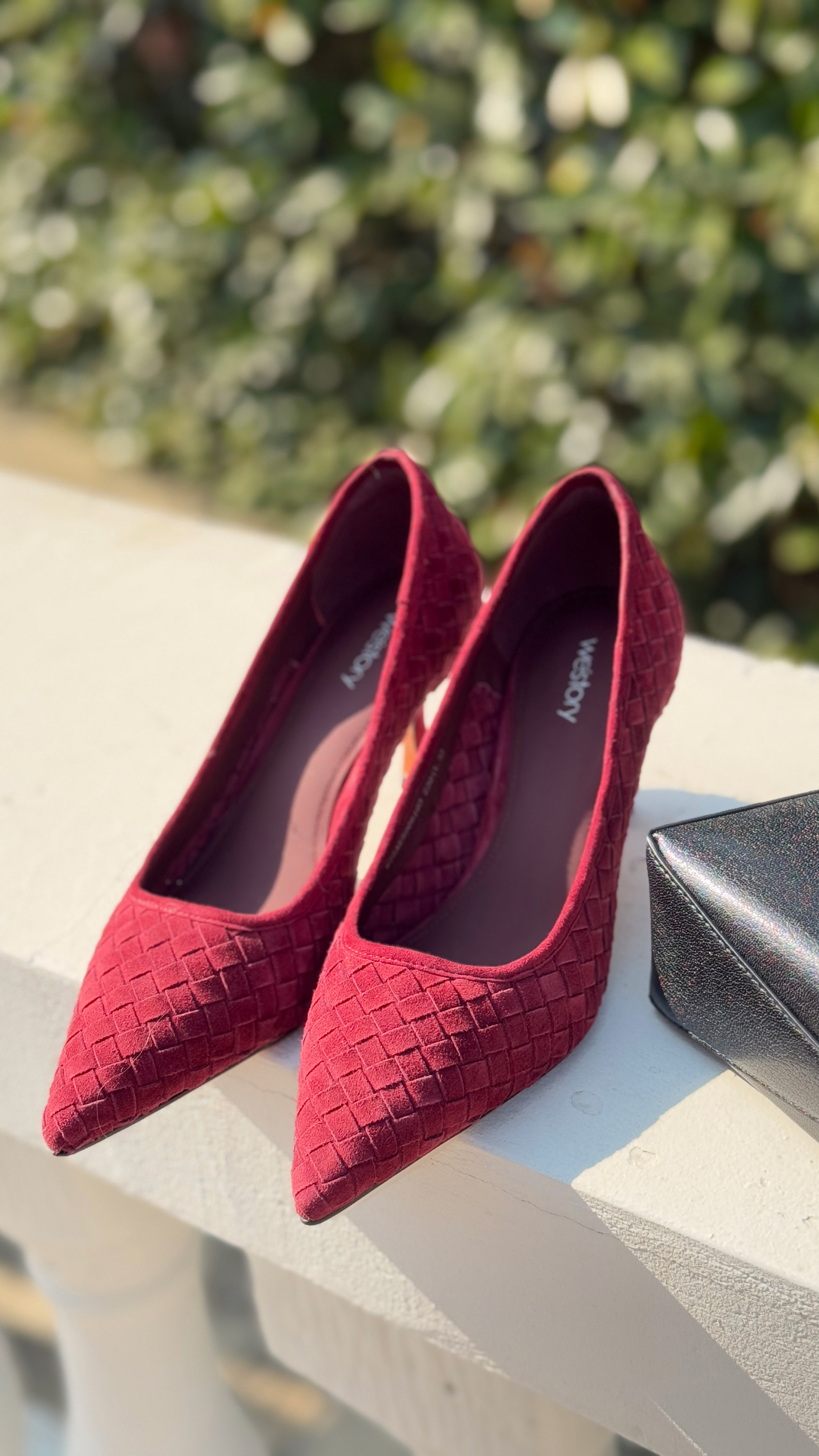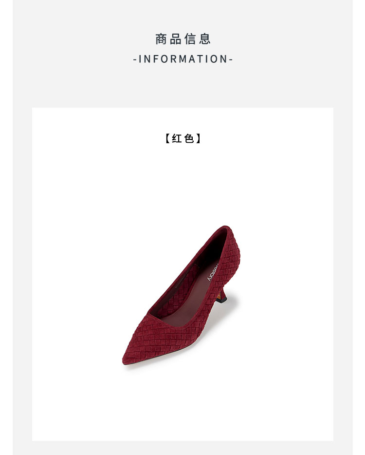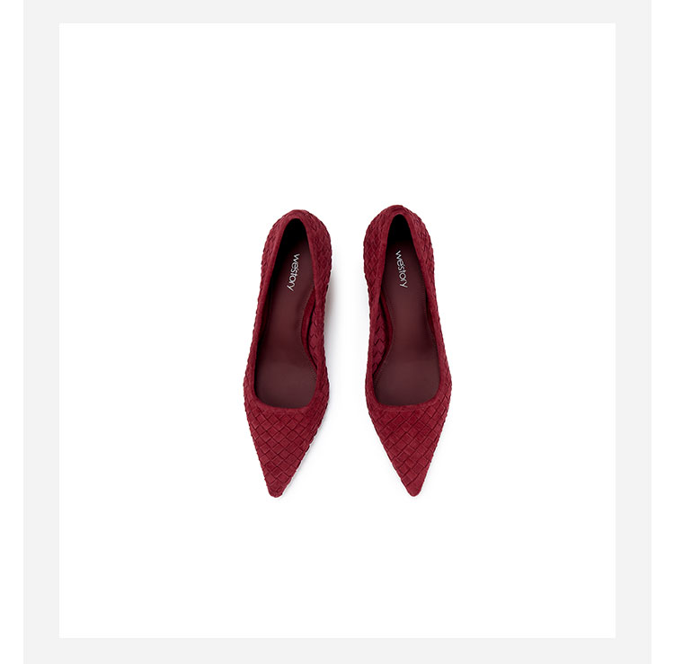 Westory2025年春季羊皮编制红色中跟尖头宴会时装浅口单鞋W25AE59081