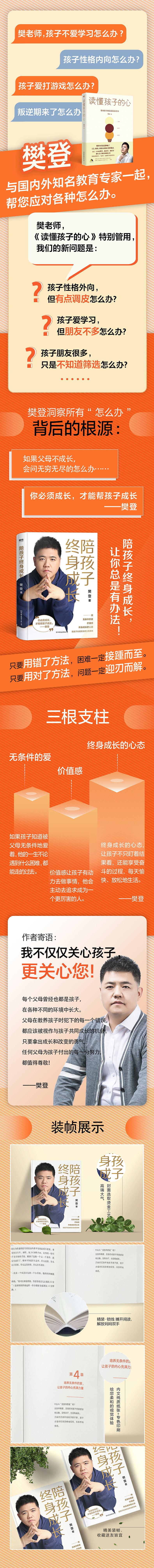 在新作《陪孩子终身成长》中,樊登建立起亲子教育的三根支柱:无条件的爱、价值感、终身成长的心态。无条件的爱,为孩子提供幸福和勇气;价值感,让孩子有内驱力去创造成就;终身成长的心态,是美德背后的美德。当家长驻建起三根支柱,就能陪孩子长成有生命力的森林!