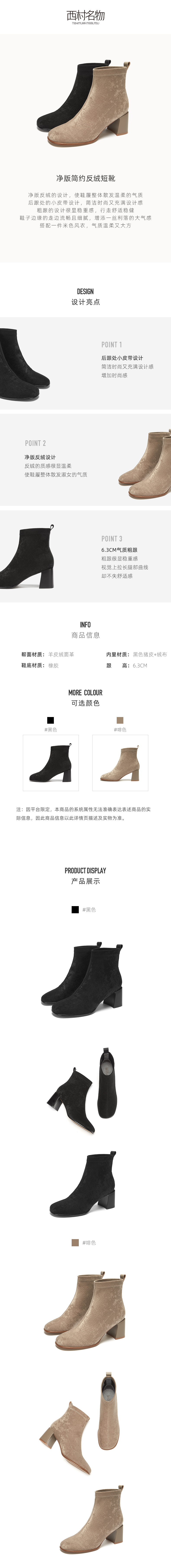 西村名物2020冬季新款短靴高跟格纹纯色出勤舒适女靴T20DS40461