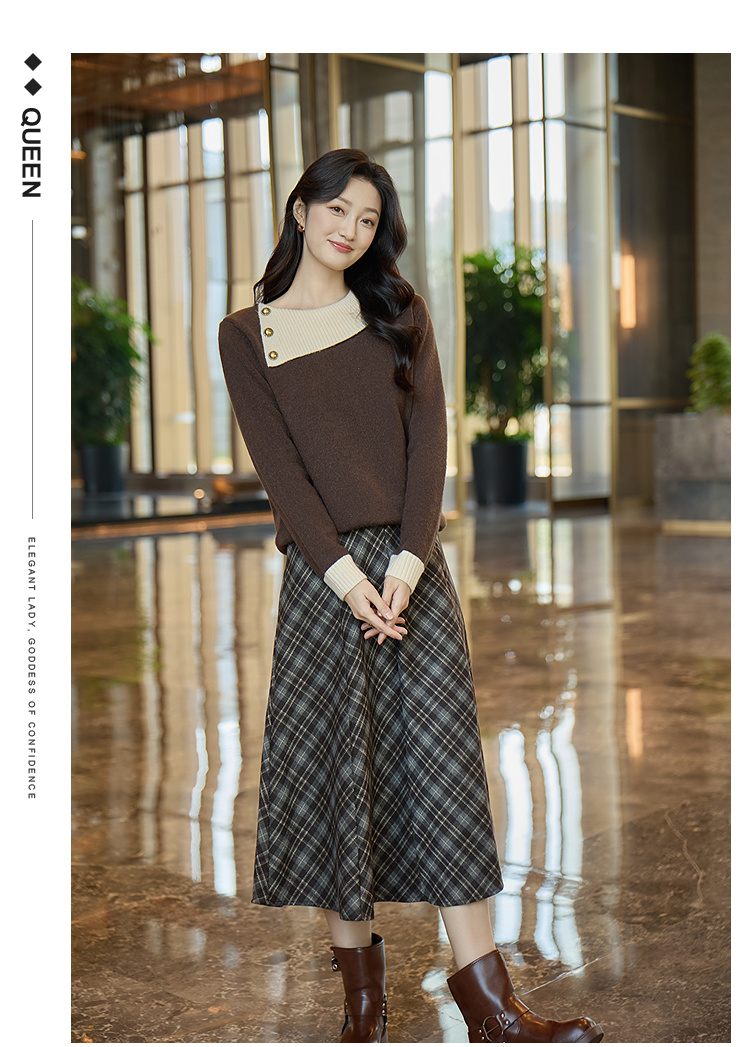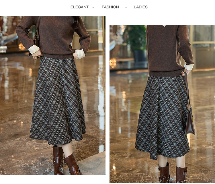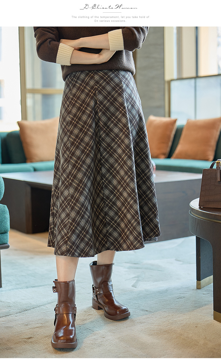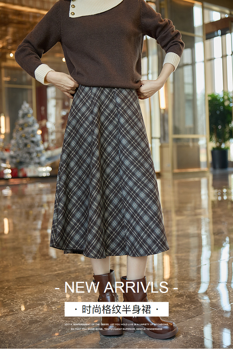 奢姿大码女装2025冬季时尚格纹设计半身裙胖妹妹气质复古显瘦裙子9954435237