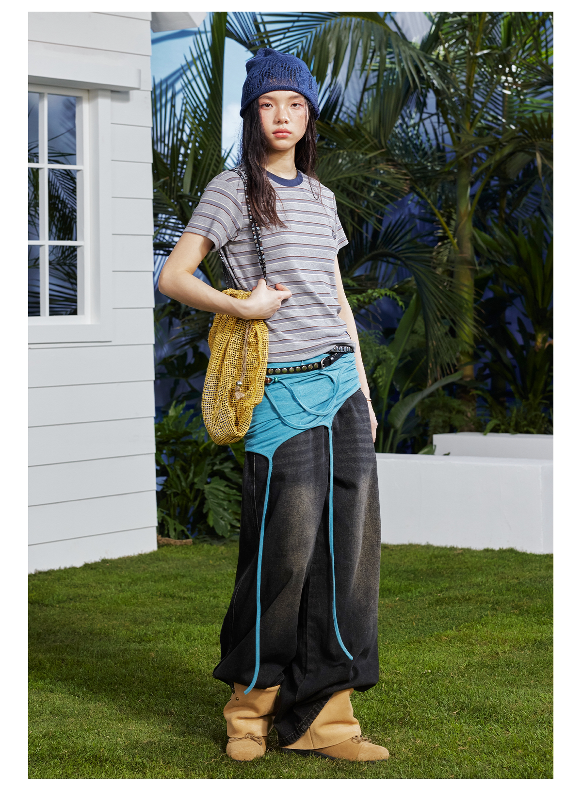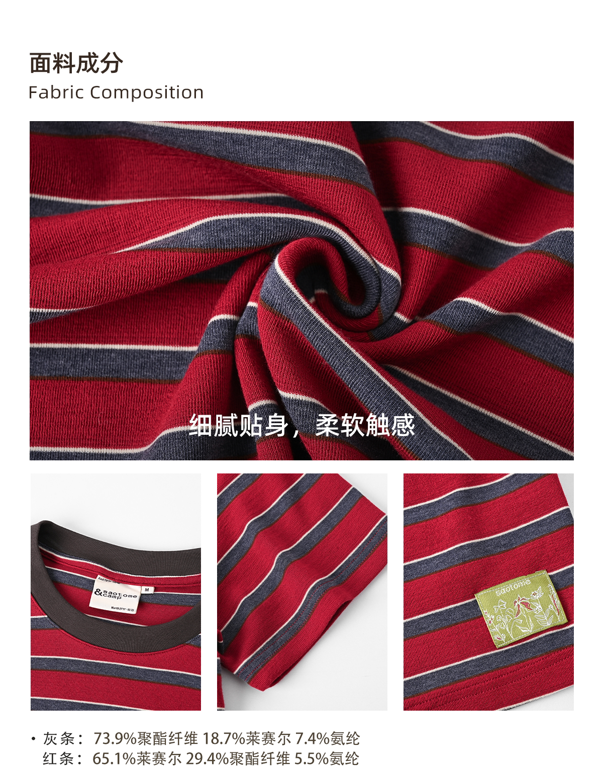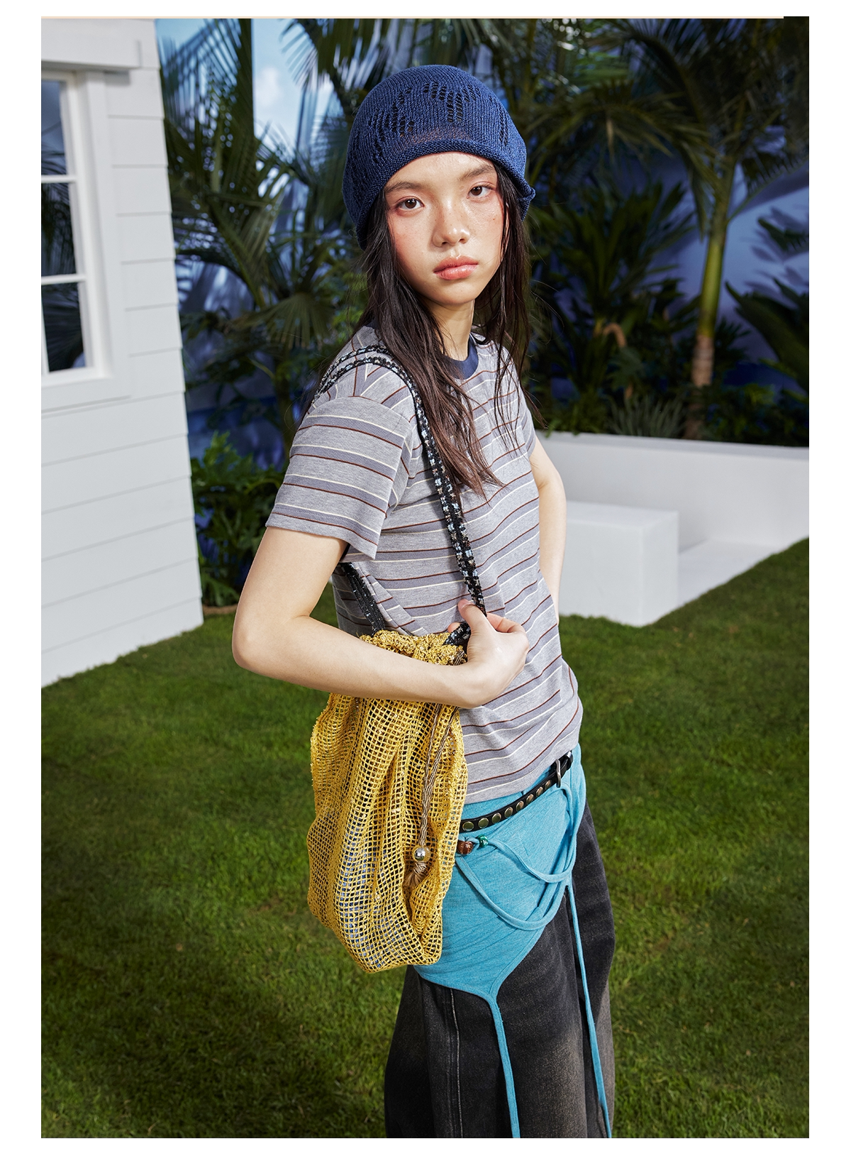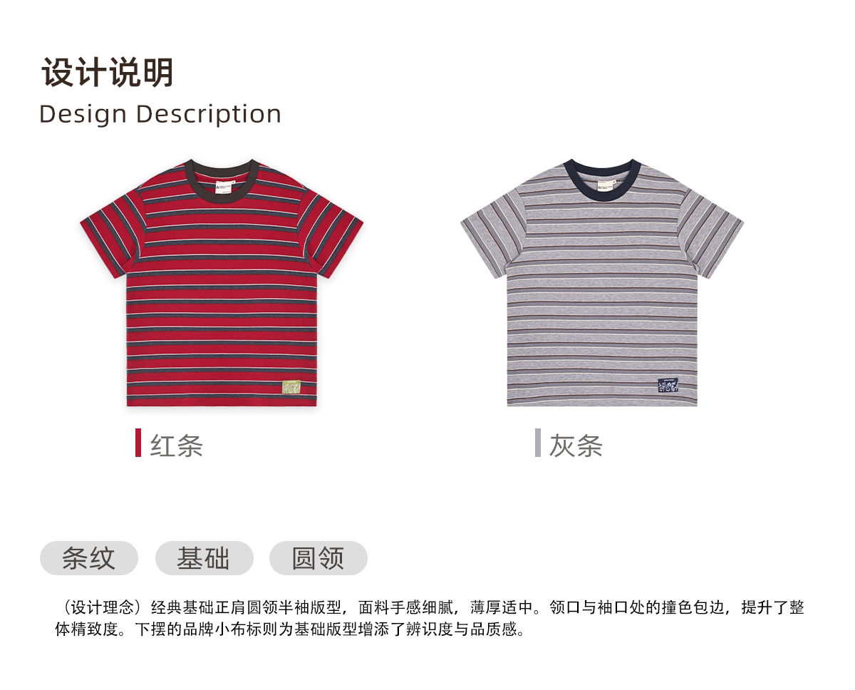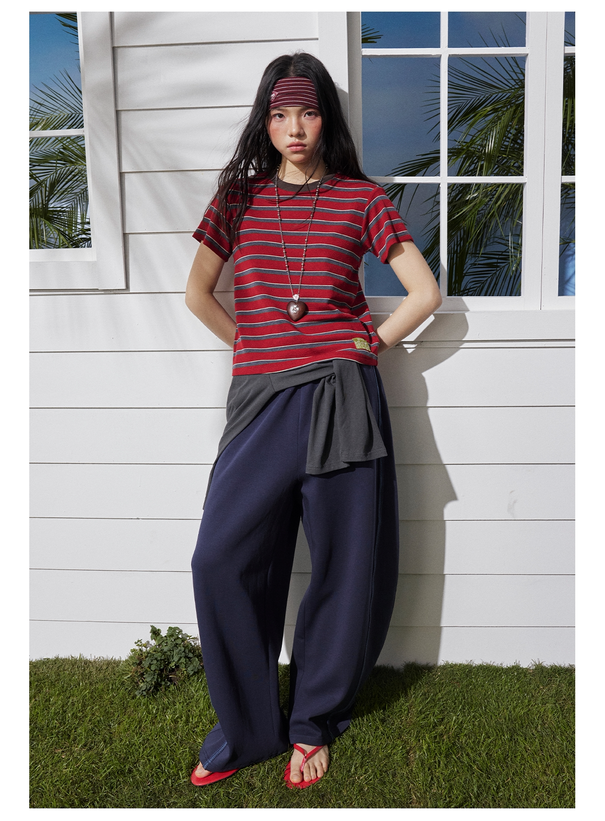 早乙女惠子saotome/STMTX222202/撞色条纹正肩短袖T恤