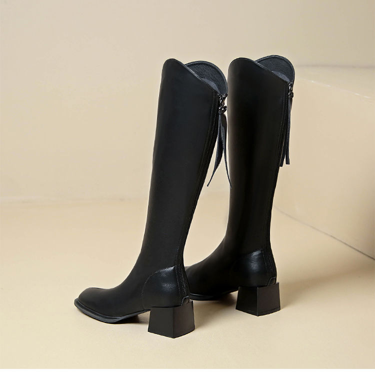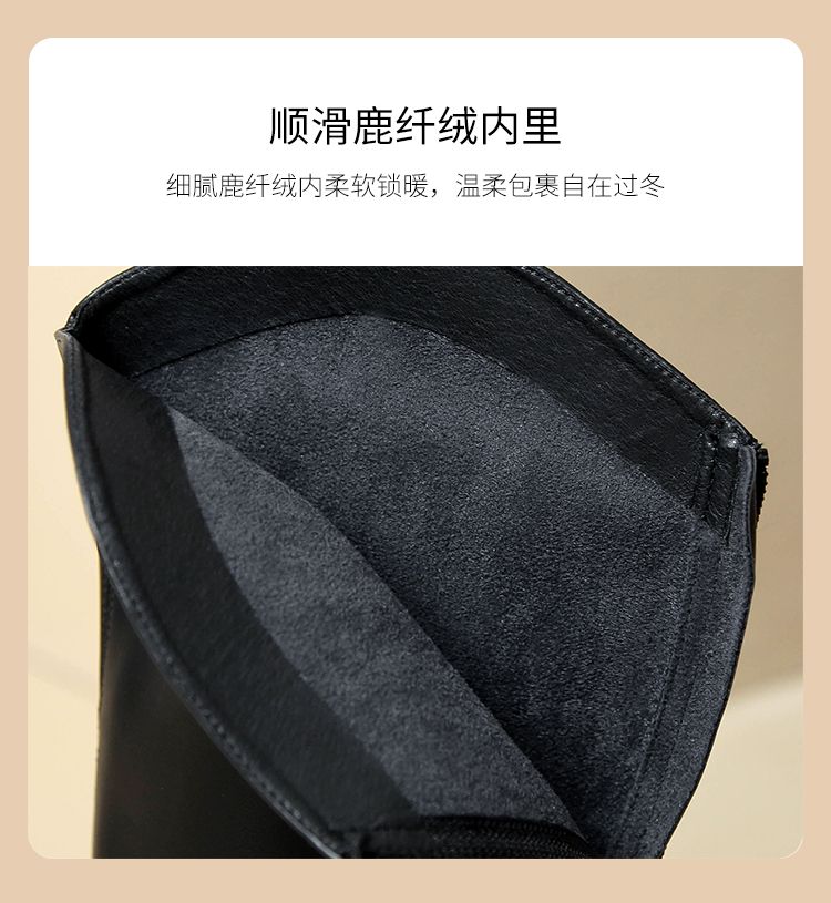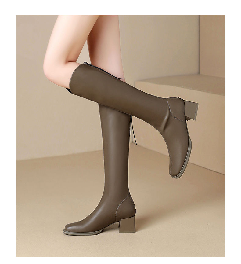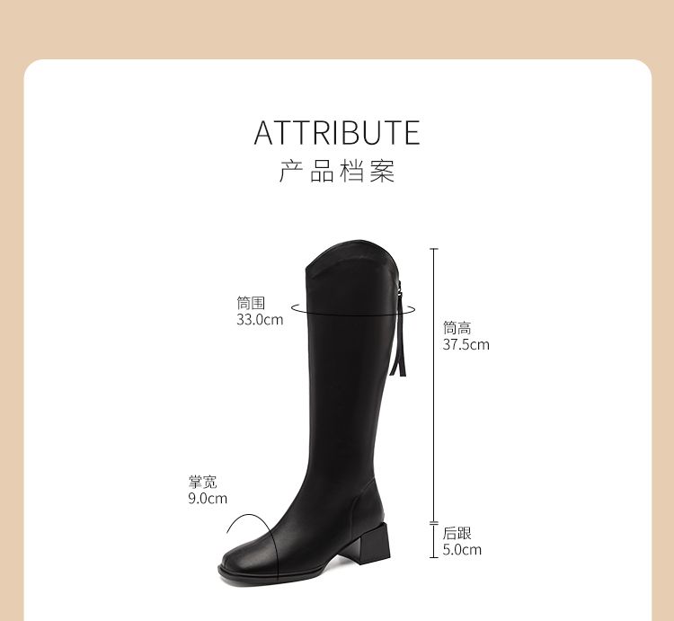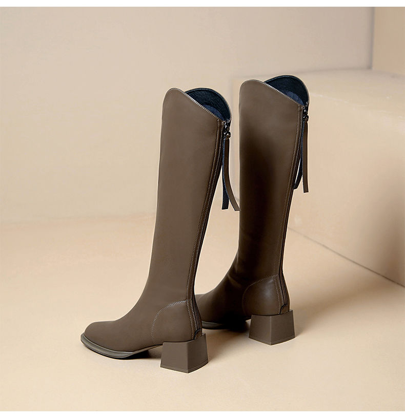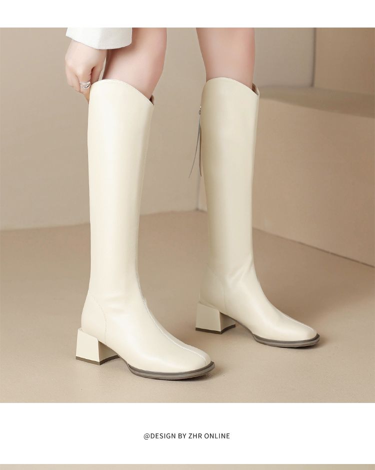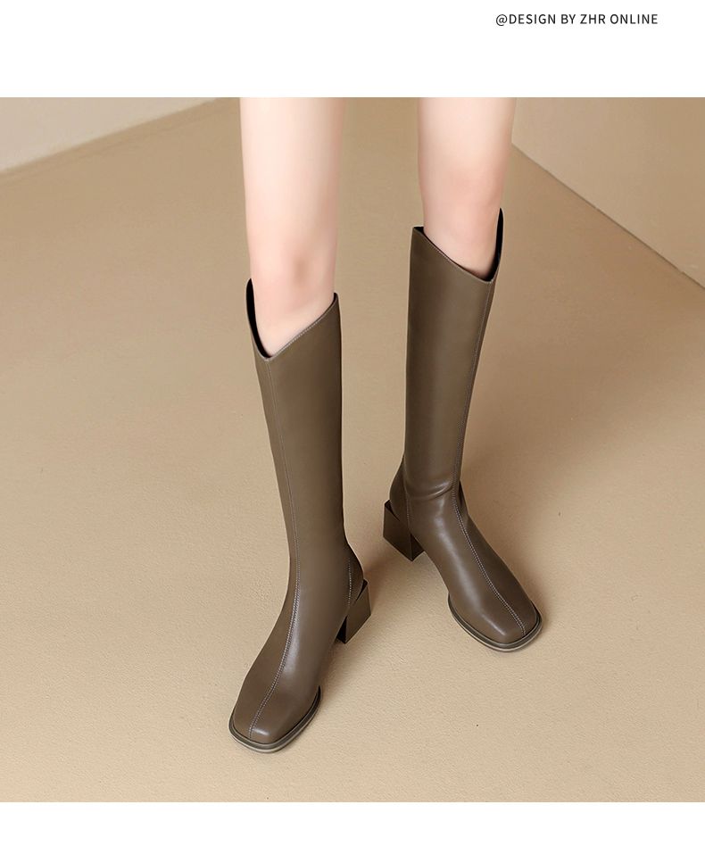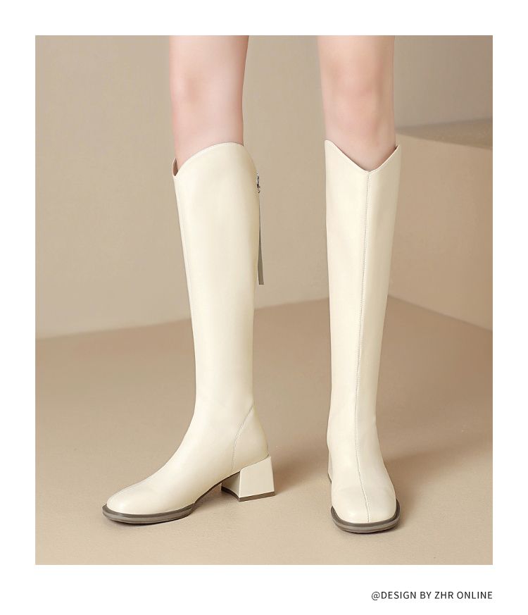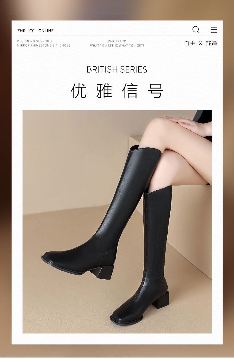 ZHR长筒靴V型简约风女靴2023新款后拉链长靴加绒骑士靴粗跟瘦瘦靴