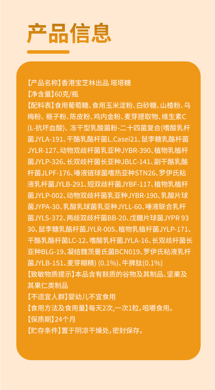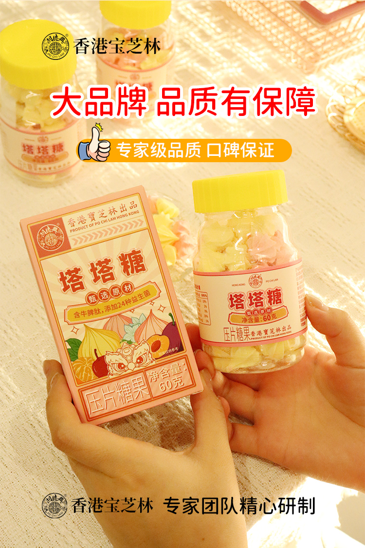 香港宝芝林塔塔糖*2瓶(60g/瓶 压片糖果)生产日期: 1月