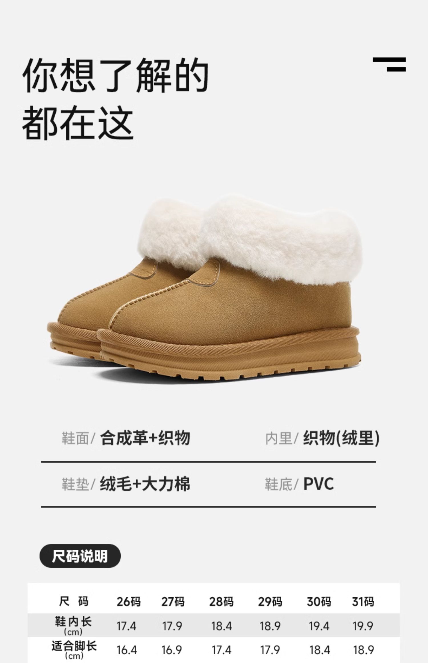 回力女童雪地靴宝宝冬季新款加绒小孩棉鞋软底冬鞋女孩保暖儿童鞋