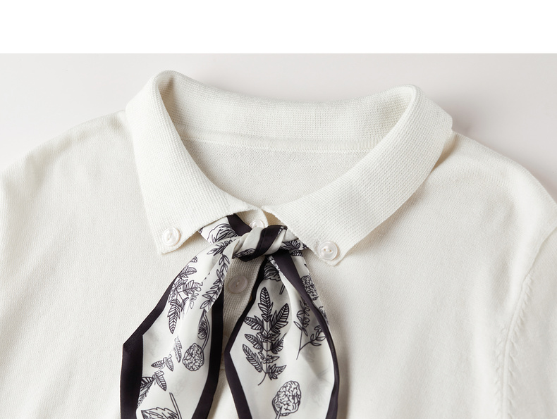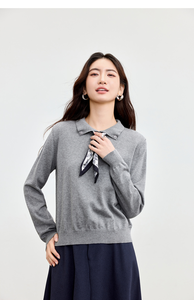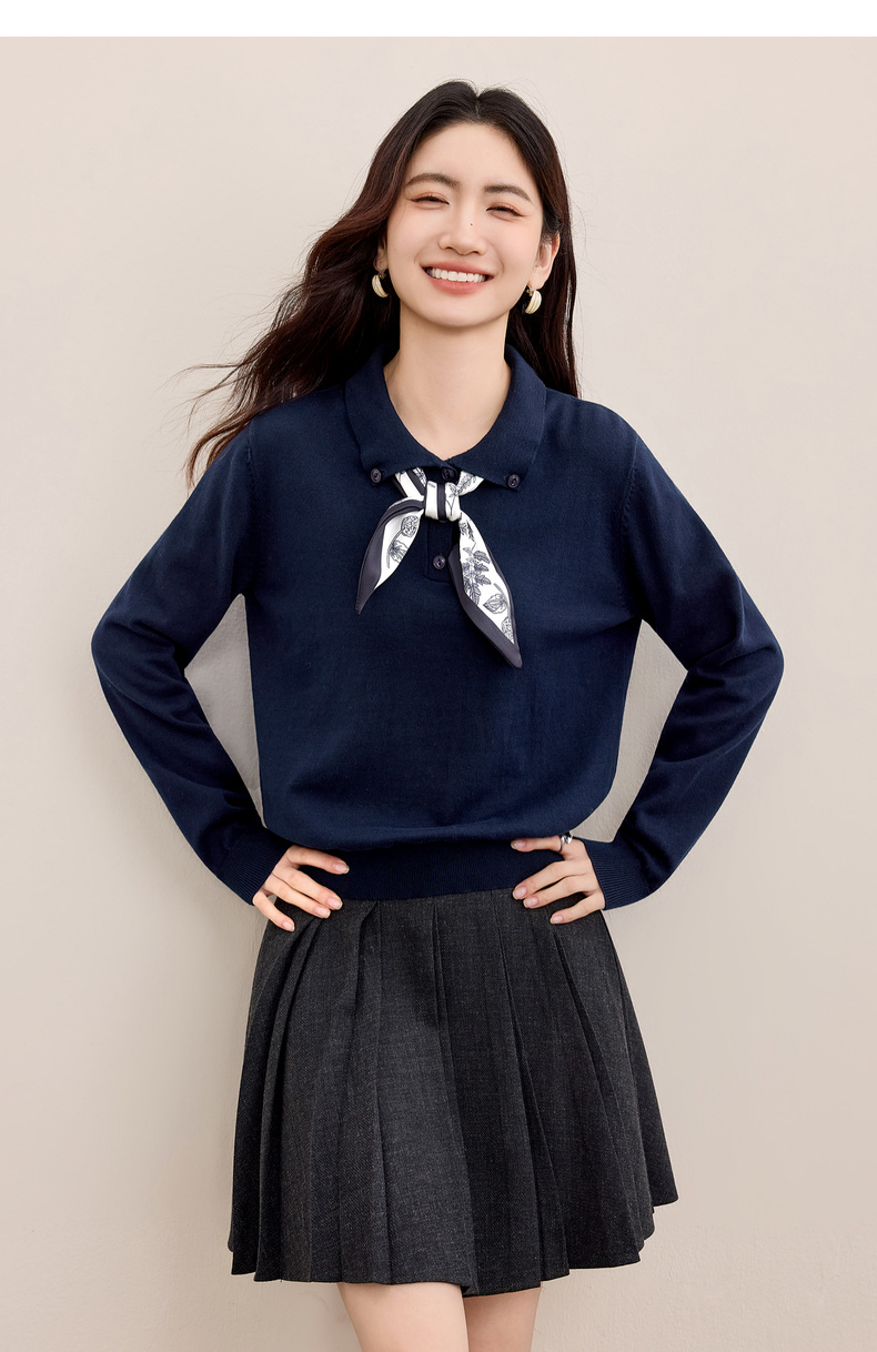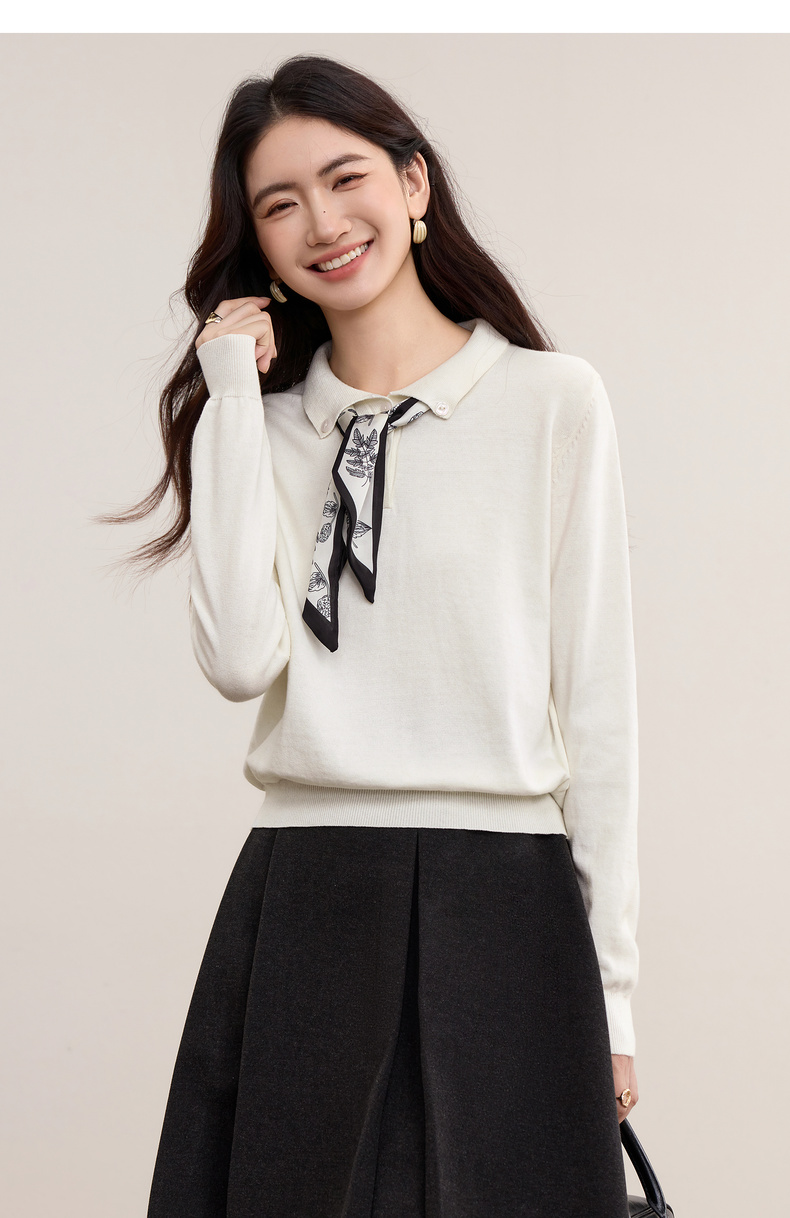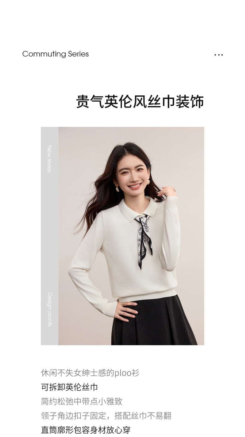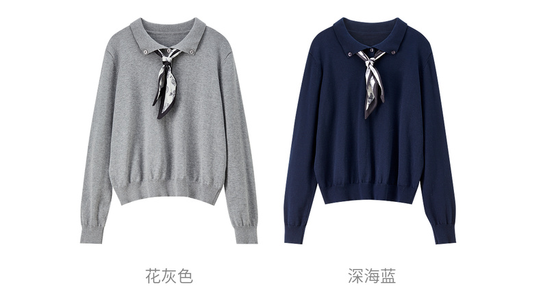 【内购】【丝巾装饰】优雅丝巾装饰可拆卸polo领针织衫-W53HL3474