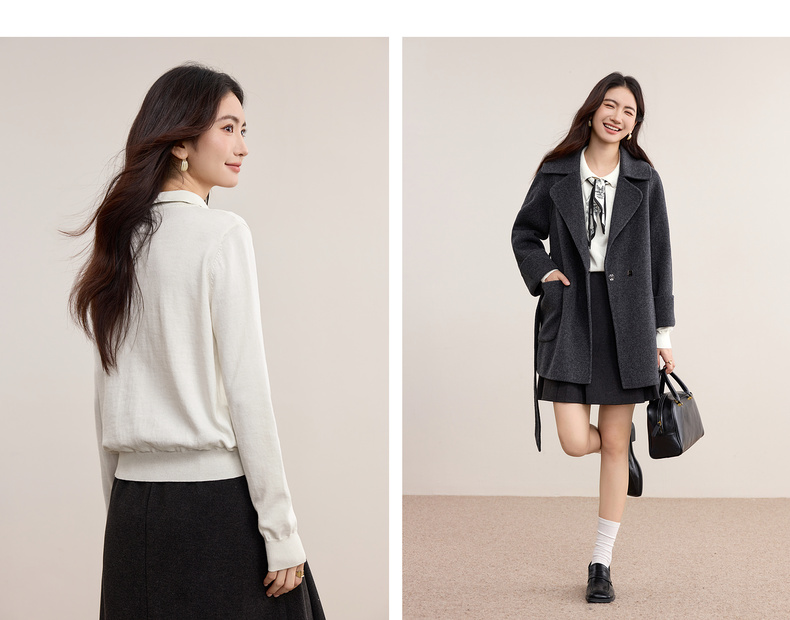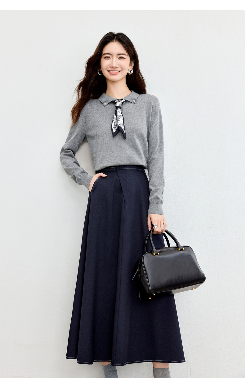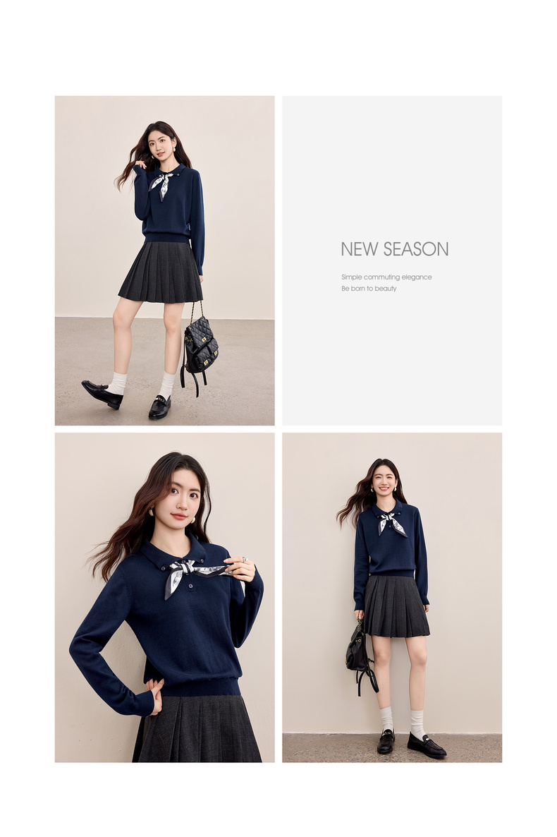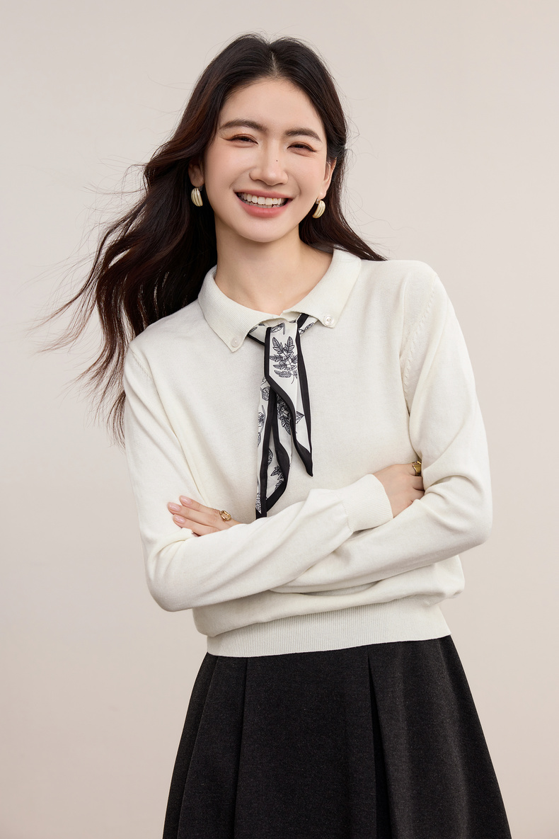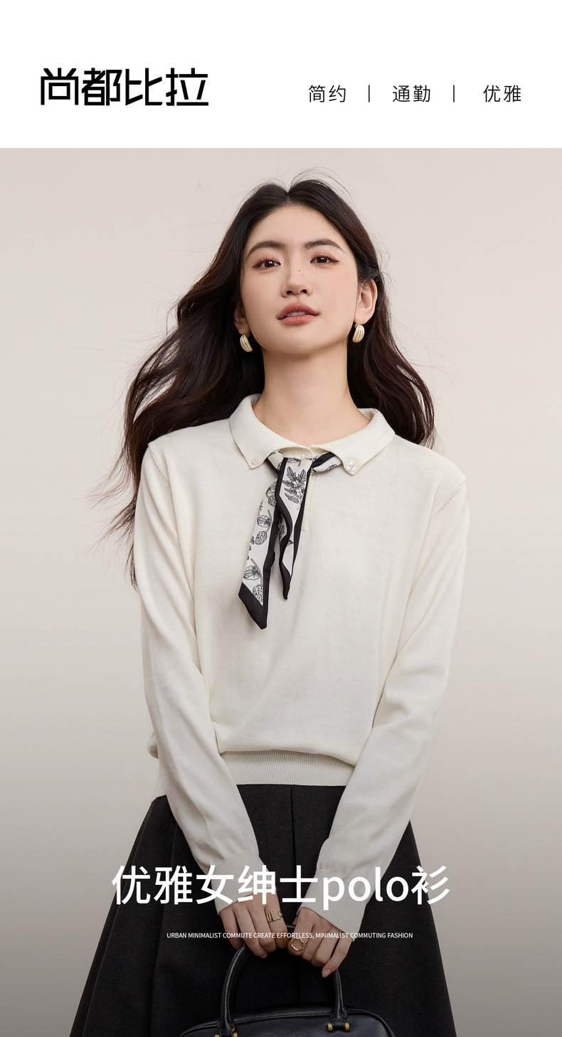 【内购】【丝巾装饰】优雅丝巾装饰可拆卸polo领针织衫-W53HL3474