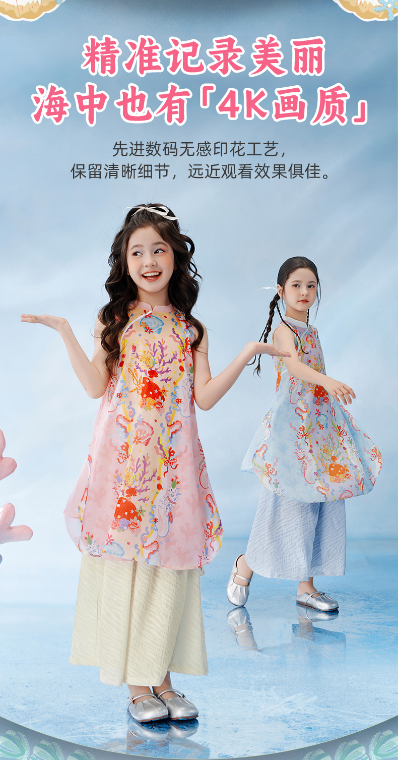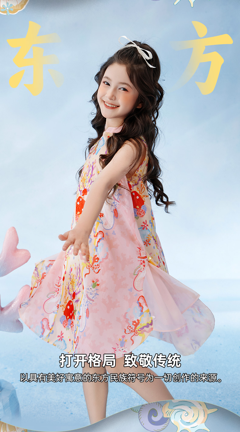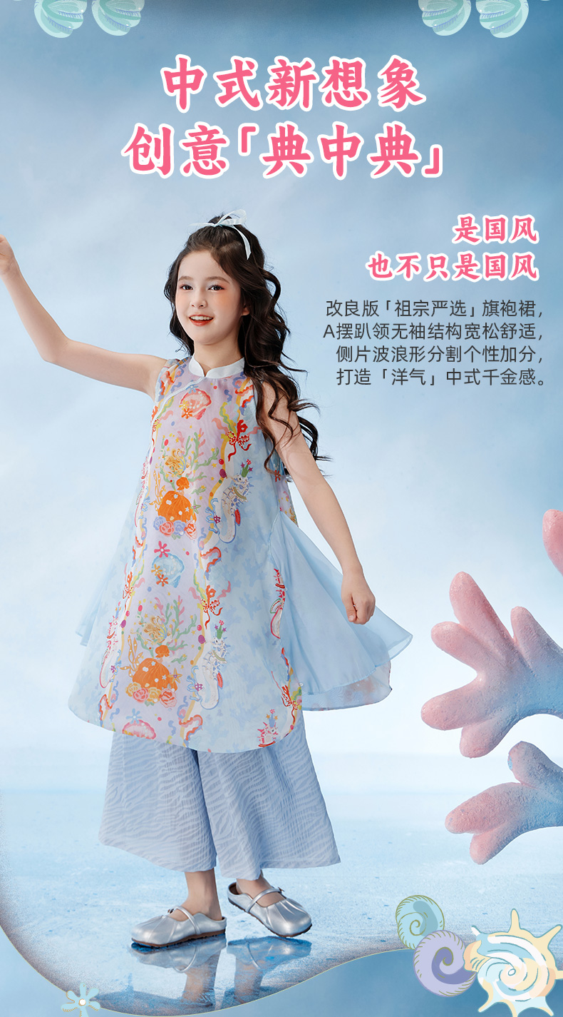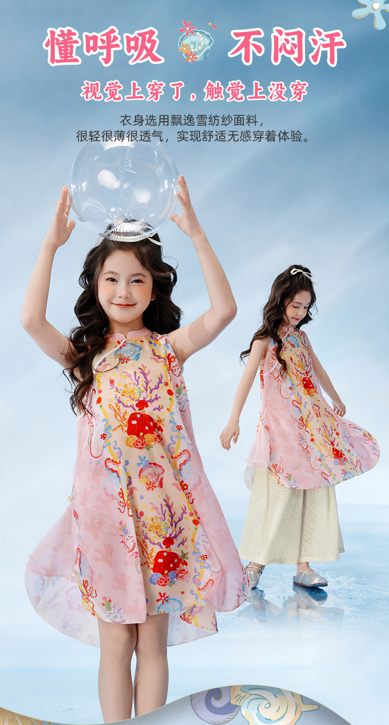【云优选】年衣童装女童2025新款夏季薄款儿童中国风海洋奇遇旗袍裙